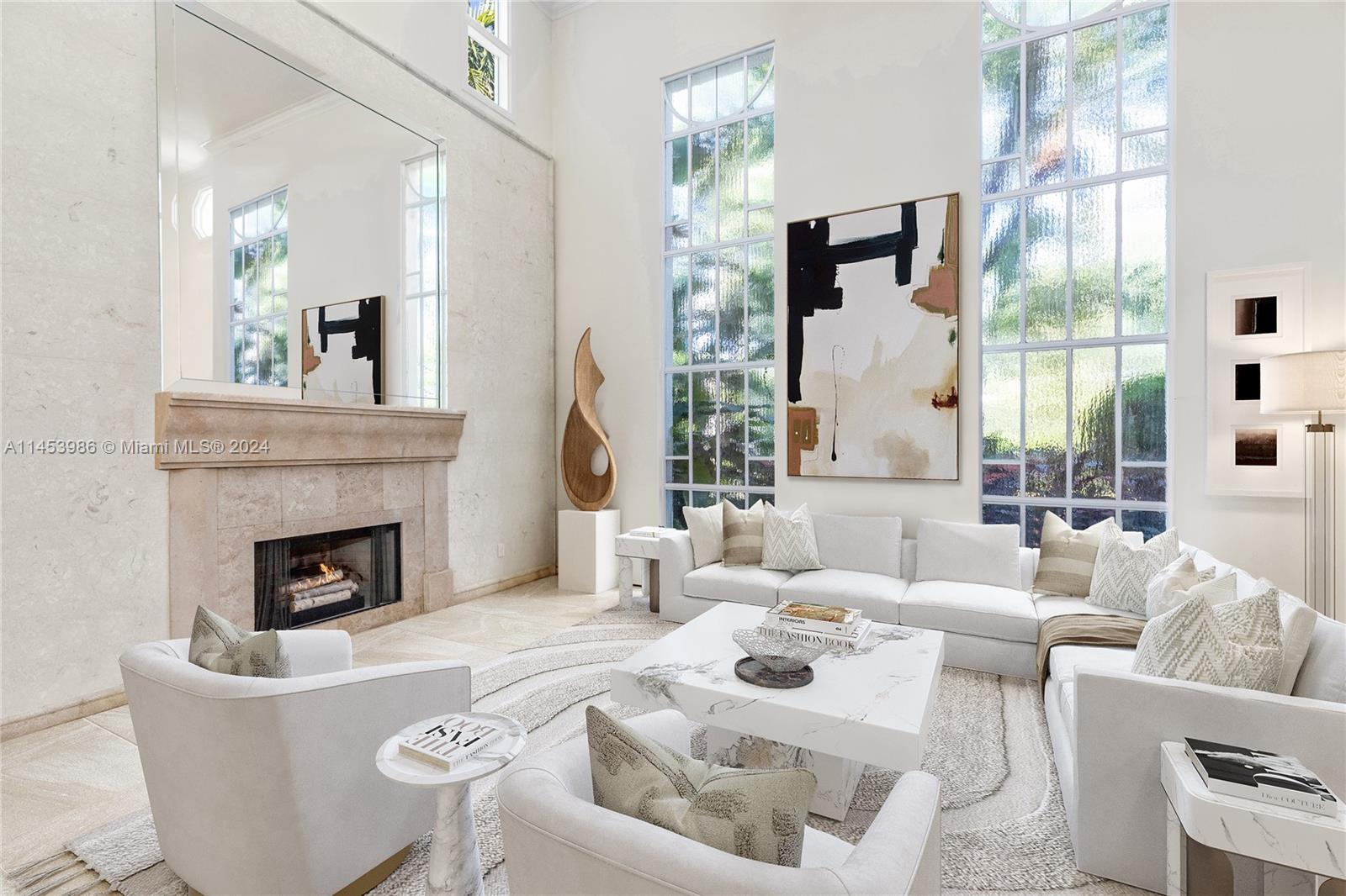Palm Beach Meets Miami Beach! This beautiful Contemporary waterfront home sits on a lushly manicured, 16,200 SF west facing lot on guard-gated Allison Island! Inside the newly renovated modern & bright interiors you'll find large living spaces w/ dramatic double height ceilings, gourmet kitchen, family room, a 1,000 SF primary suite w/ attached office, massive 1st floor VIP suite & 3 large guest bedrooms w/ newly renovated en-suite baths. The outdoors is a tropical oasis w/ a large covered loggia & outdoor dining w/ retractable screens , resort style pool, & dock w/ boat lift. With 75 feet of WF & easy access to the bay this property is ideal for boaters. The home’s Western exposure will capture colorful sunsets over the water. Property is equipped w/ a 3-car garage & gated motor court.