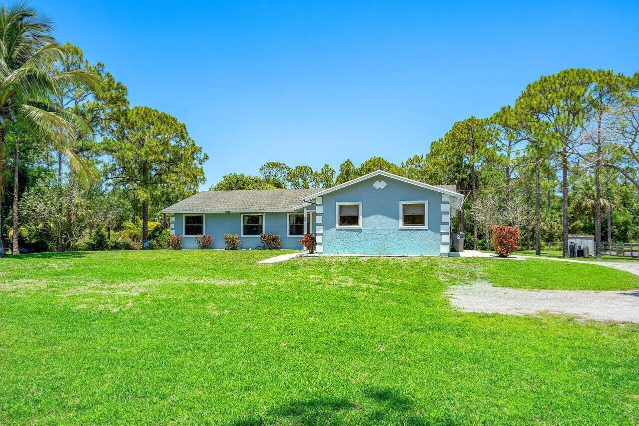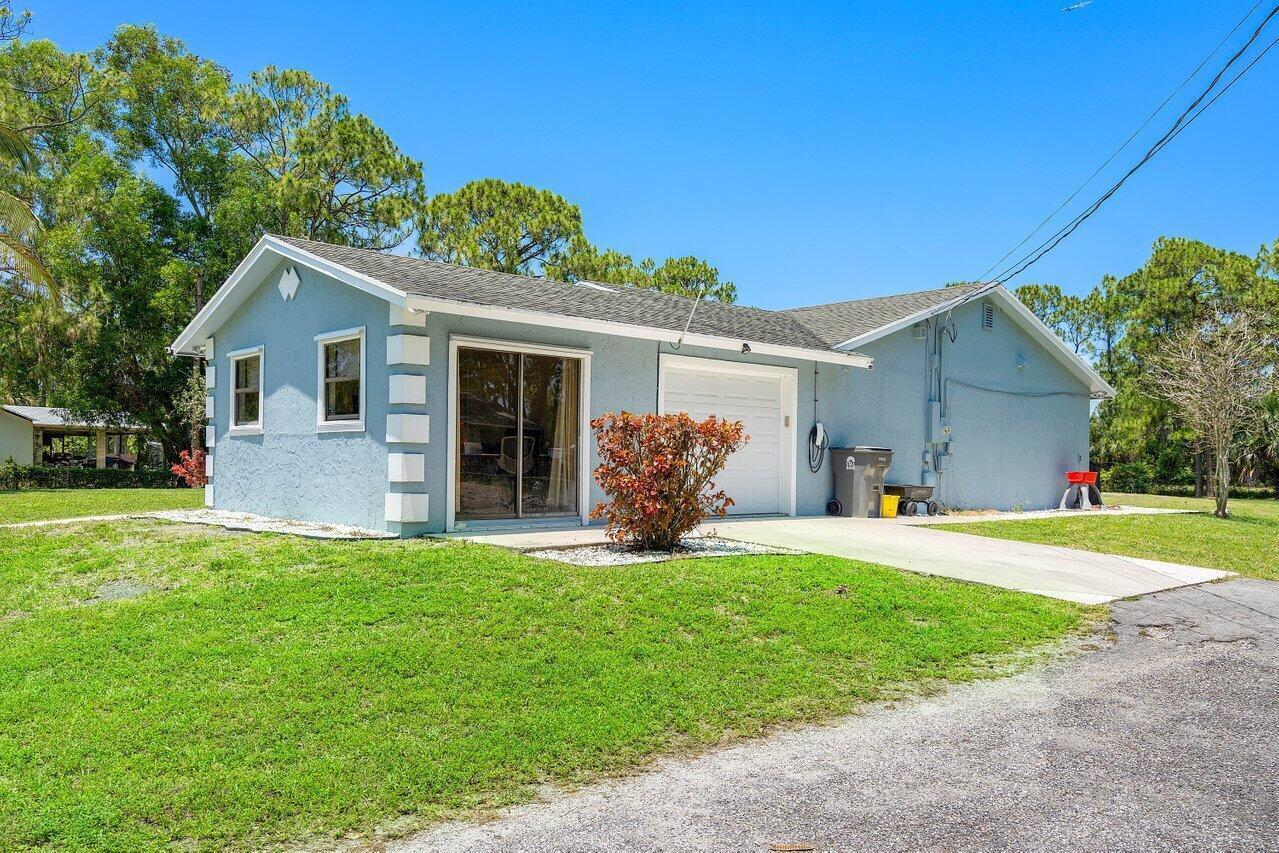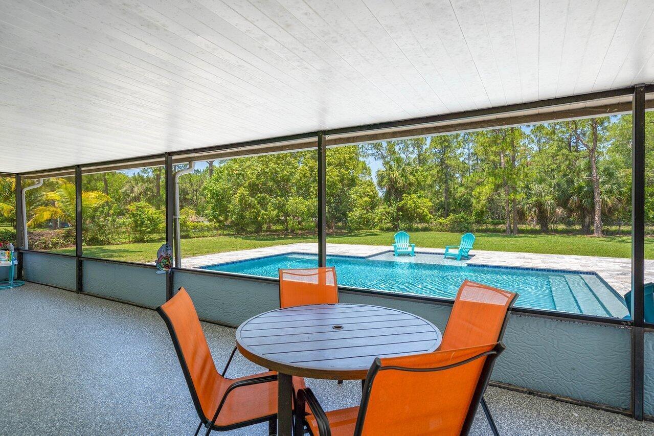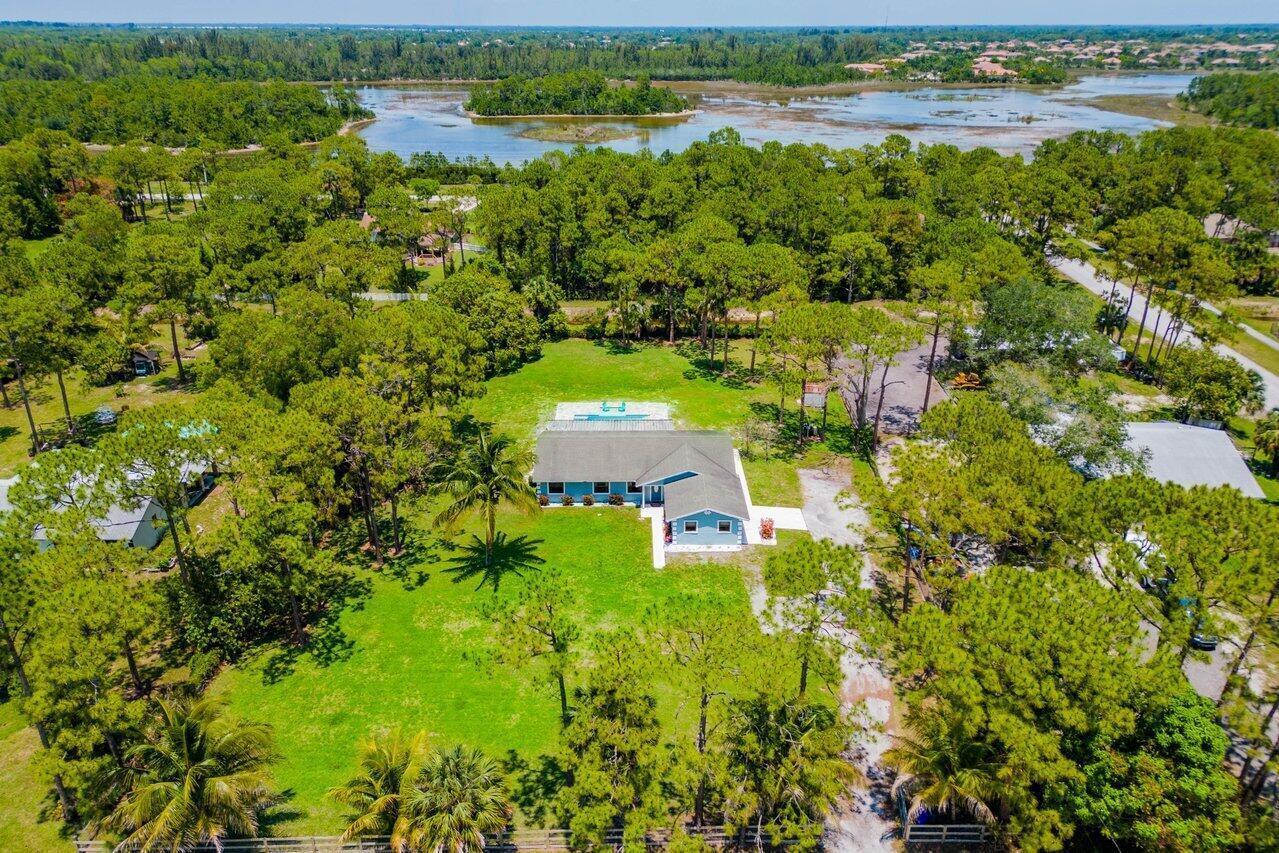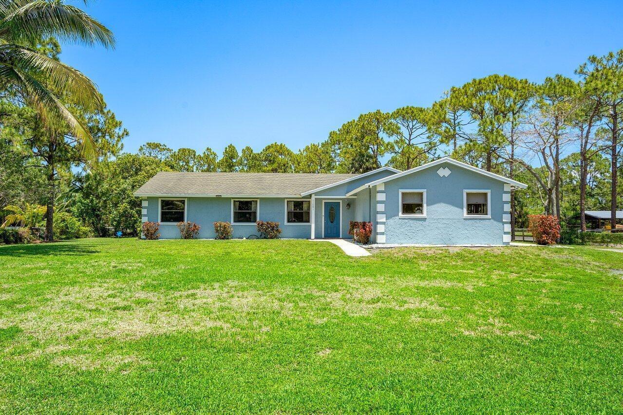 This stunning property in Loxahatchee is newly renovated and sits on 1.25 acres, close to major roads. It offers 3 bedrooms plus an additional A/C'd garage conversion that can be used for an additional bedroom, 2 bathrooms, and a 1-car garage, all recently upgraded to HGTV magazine-worthy standards. The backyard is perfect for outdoor entertaining, showcasing a recently built 14'x28' pool, 9.5'x7' Sun Shelf, Wall to Wall stairs, LED lights, pool heater, and a salt chlorination system. Step inside to find an open layout fully designed and upgraded by a professional designer with a designer kitchen and multi-colored wood-look tile flooring throughout the entire home. The current roof was installed in 2005 but the Roof is in the process of being replaced once city permits is received.