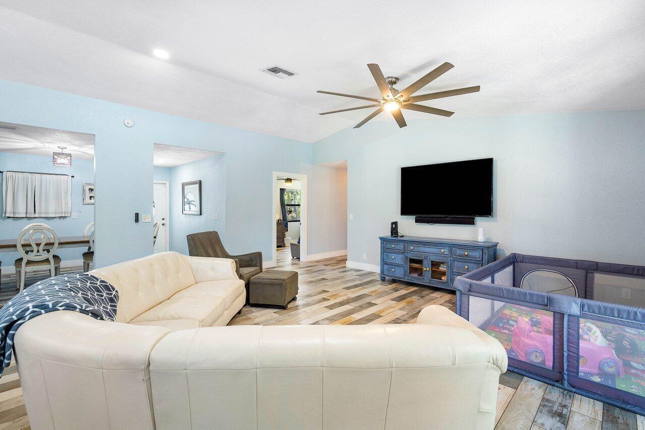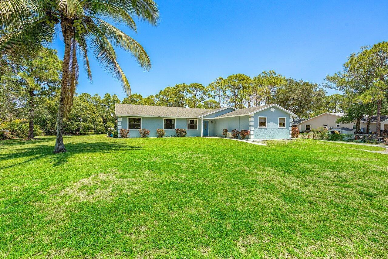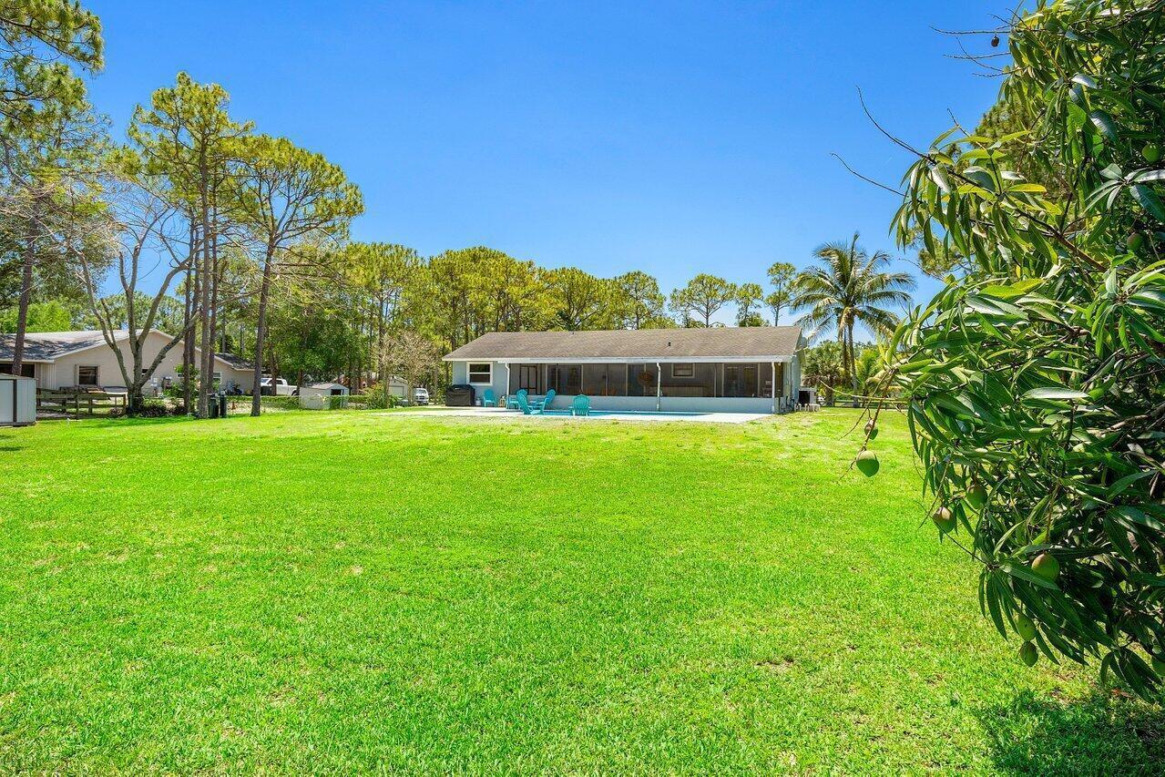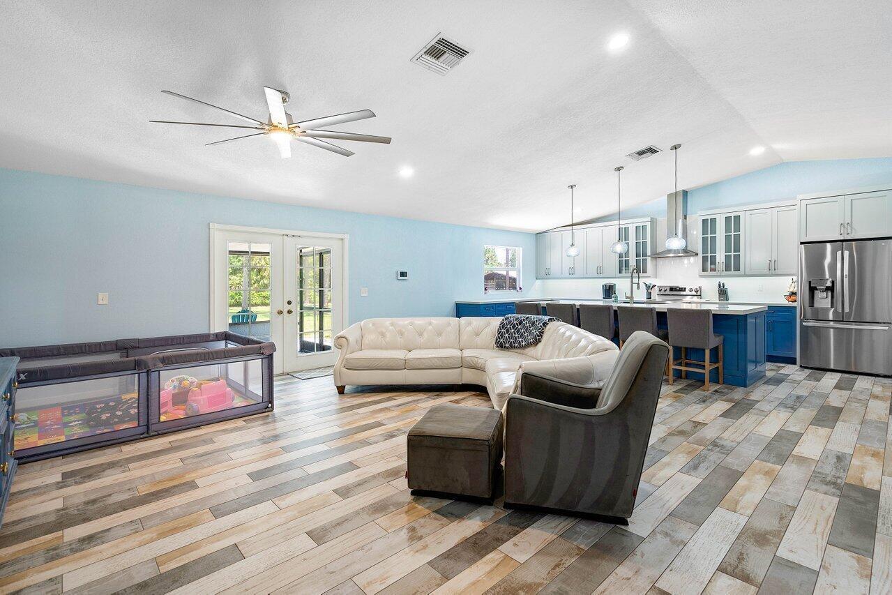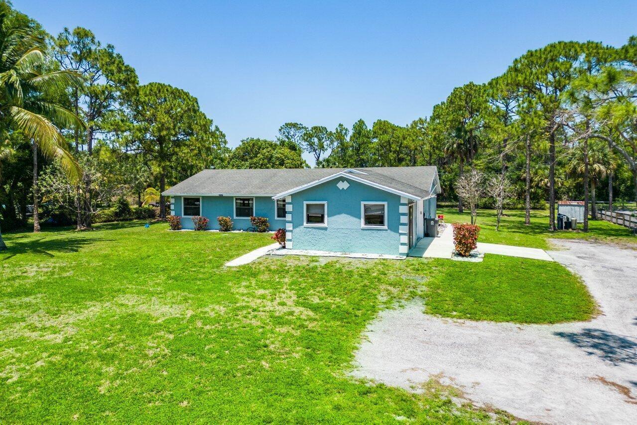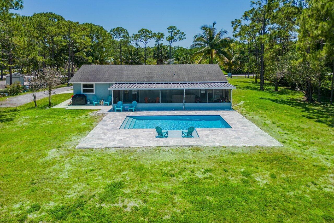 This stunning property in Loxahatchee is newly renovated and sits on 1.25 acres, close to major roads. It offers 3 bedrooms plus an additional A/C'd garage conversion that can be used for an additional bedroom, 2 bathrooms, and a 1-car garage, all recently upgraded to HGTV magazine-worthy standards. The backyard is perfect for outdoor entertaining, showcasing a recently built 14'x28' pool, 9.5'x7' Sun Shelf, Wall to Wall stairs, LED lights, pool heater, and a salt chlorination system. Step inside to find an open layout fully designed and upgraded by a professional designer with a designer kitchen and multi-colored wood-look tile flooring throughout the entire home. The current roof was installed in 2005 but the Roof is in the process of being replaced once city permits is received.