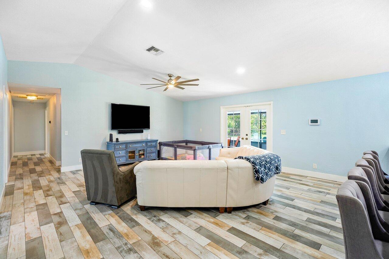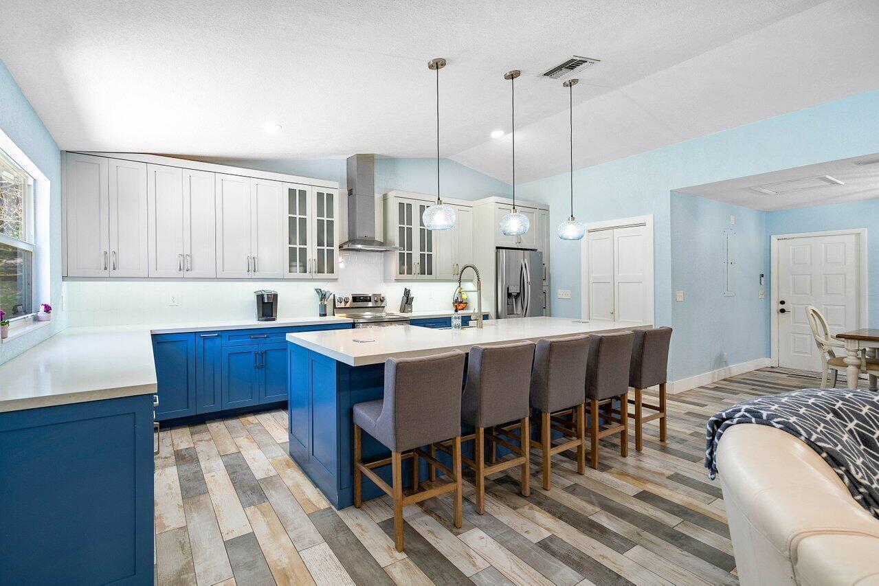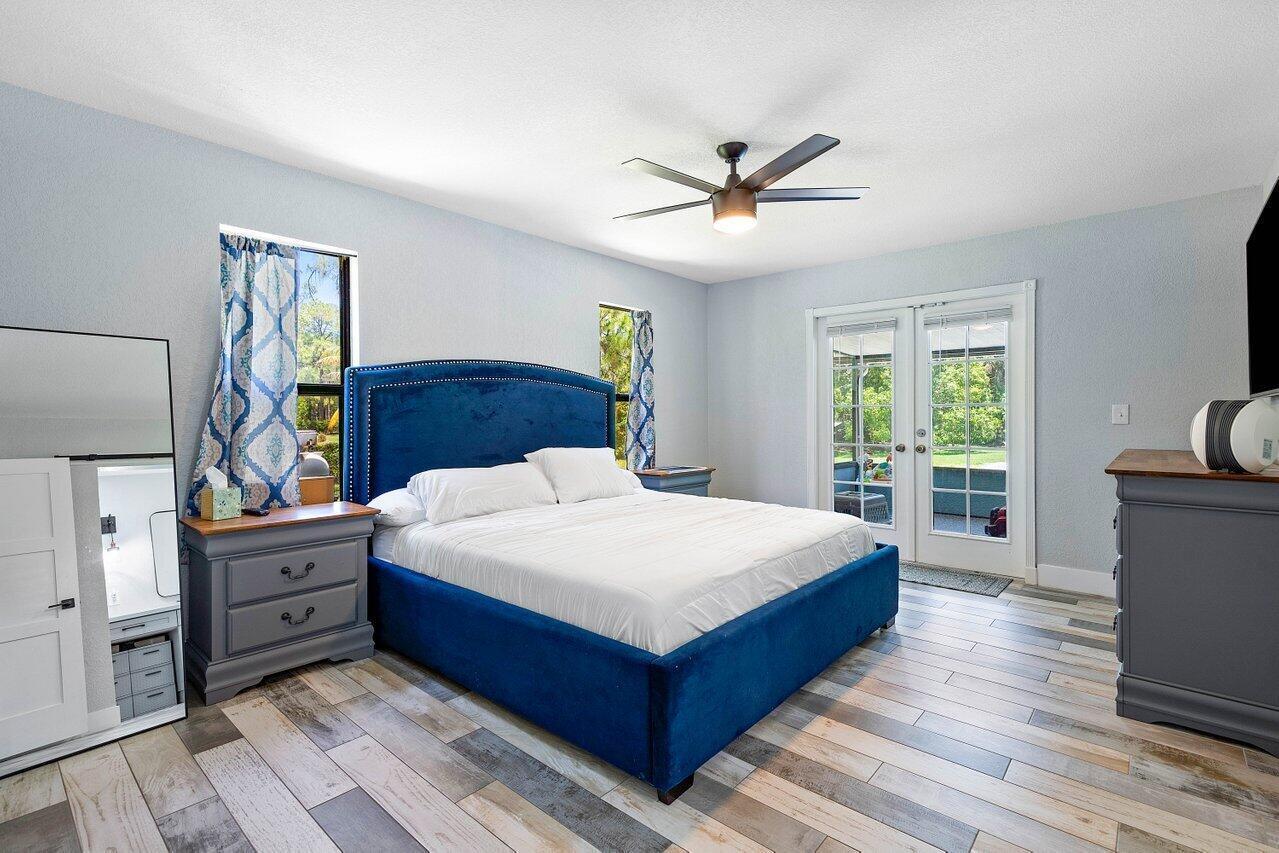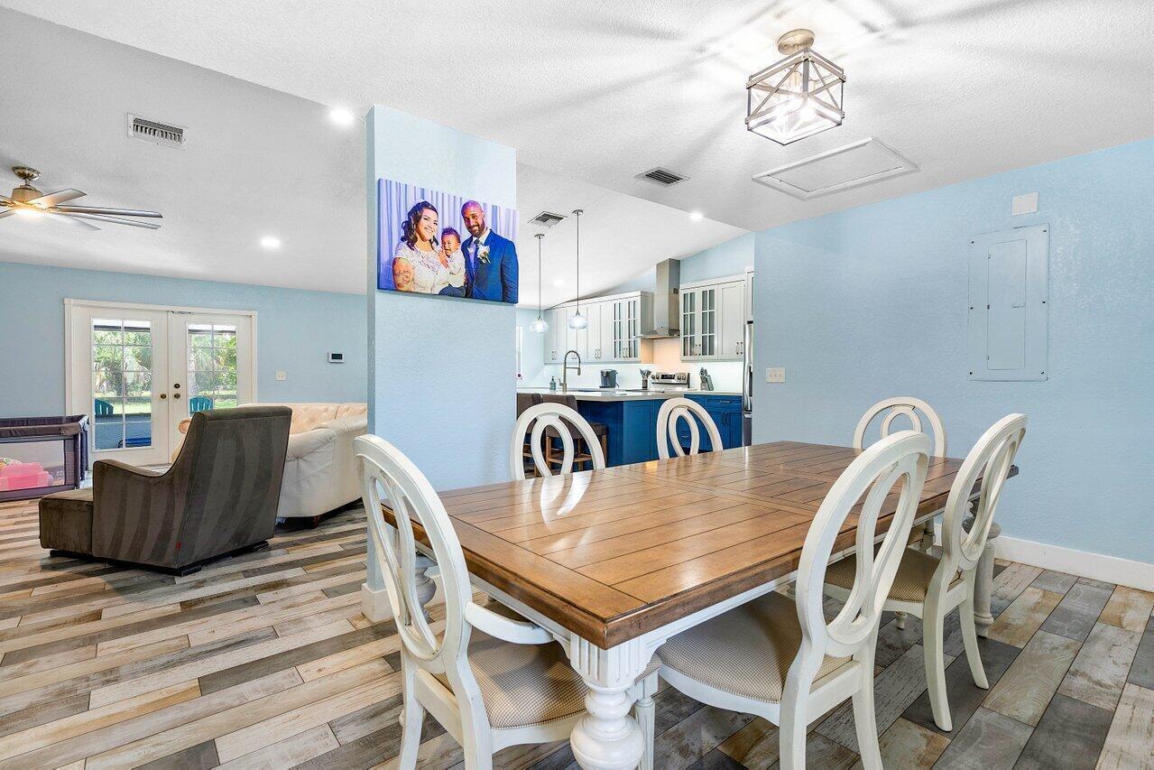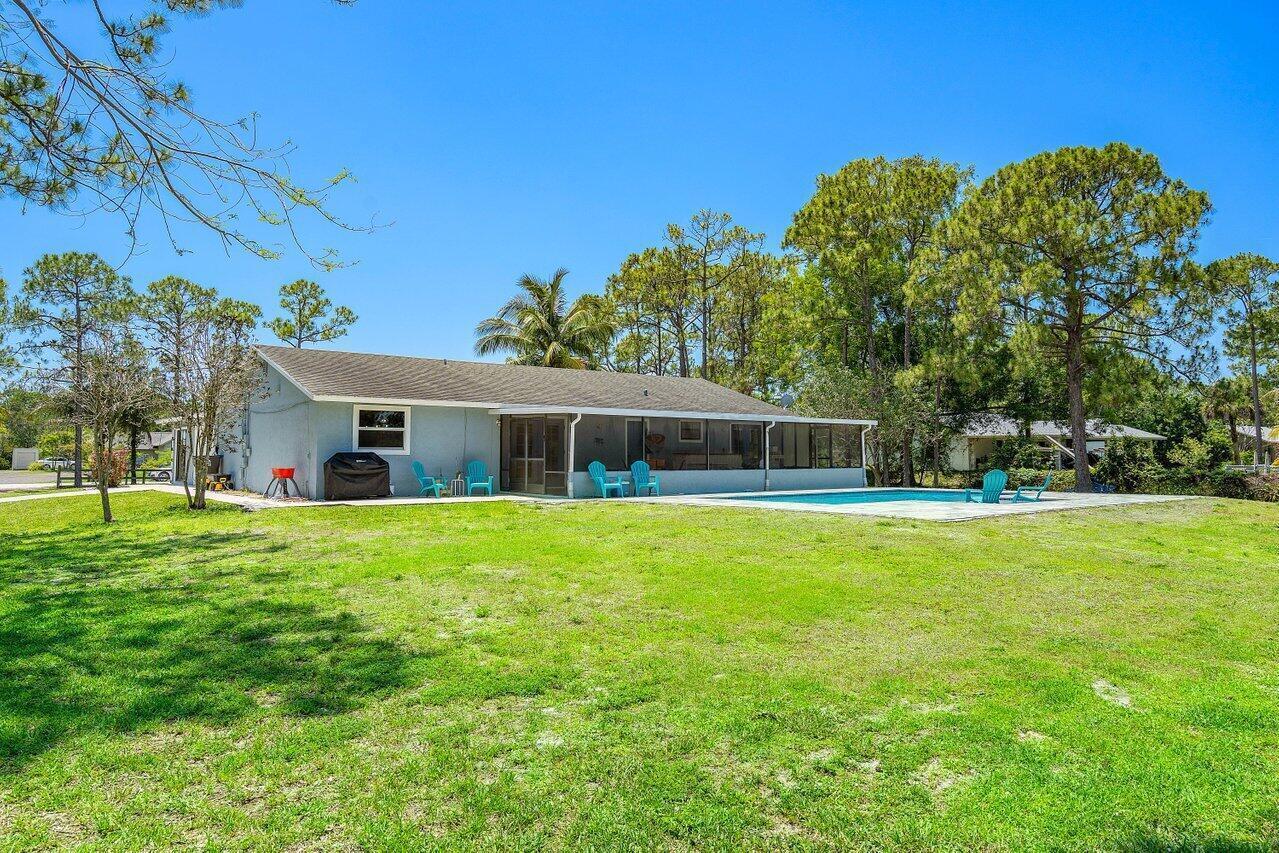 This stunning property in Loxahatchee is newly renovated and sits on 1.25 acres, close to major roads. It offers 3 bedrooms plus an additional A/C'd garage conversion that can be used for an additional bedroom, 2 bathrooms, and a 1-car garage, all recently upgraded to HGTV magazine-worthy standards. The backyard is perfect for outdoor entertaining, showcasing a recently built 14'x28' pool, 9.5'x7' Sun Shelf, Wall to Wall stairs, LED lights, pool heater, and a salt chlorination system. Step inside to find an open layout fully designed and upgraded by a professional designer with a designer kitchen and multi-colored wood-look tile flooring throughout the entire home. The current roof was installed in 2005 but the Roof is in the process of being replaced once city permits is received.