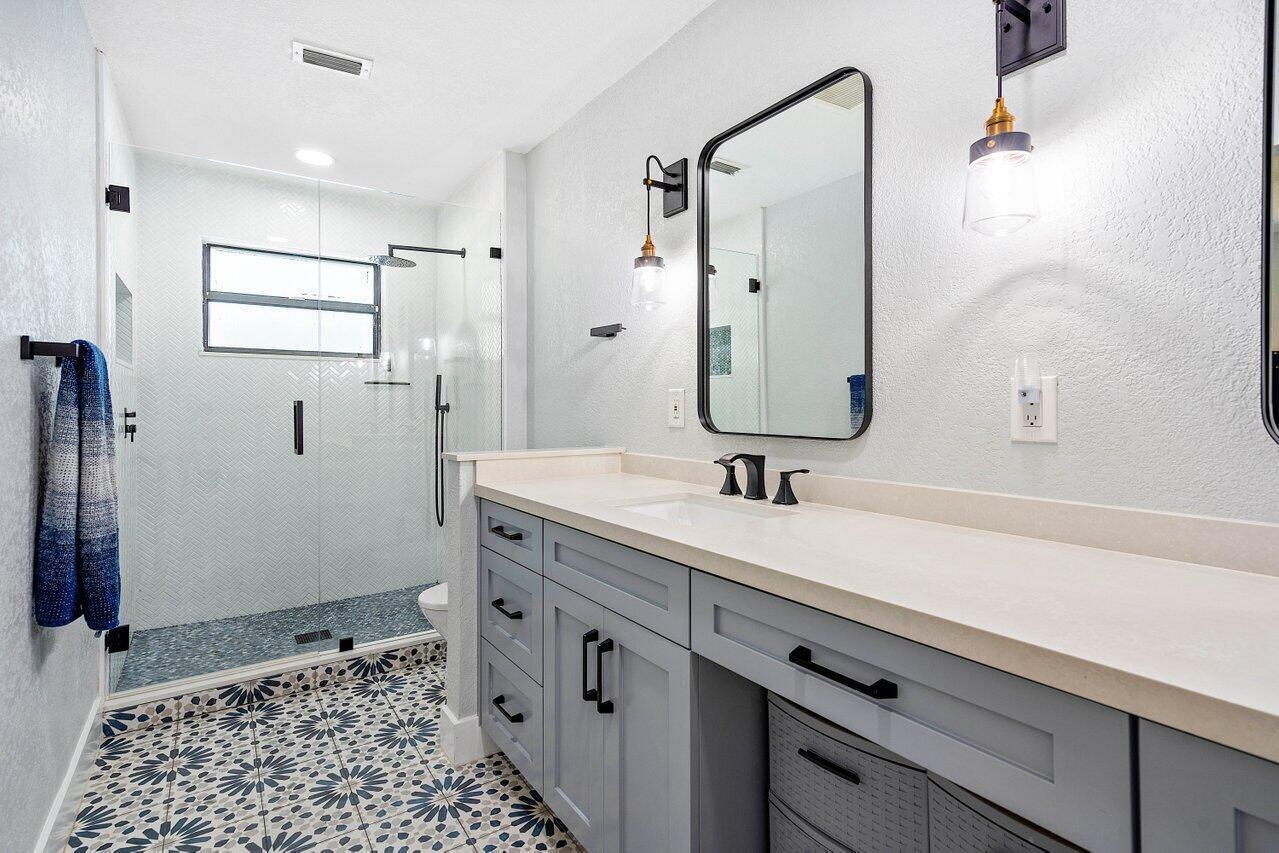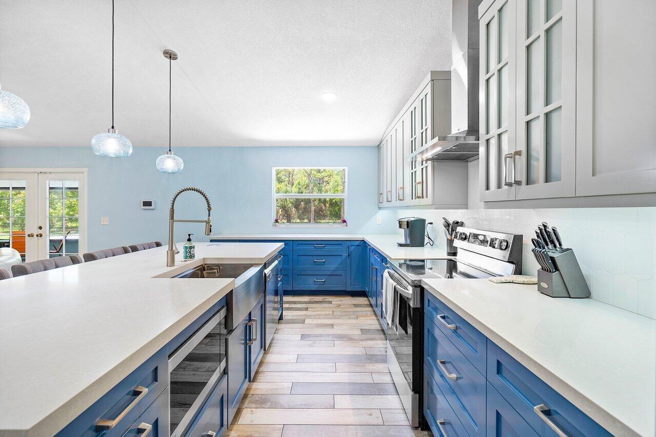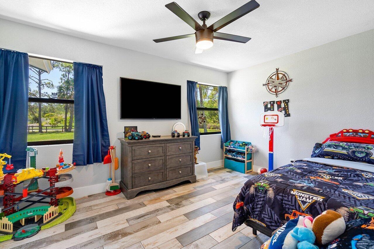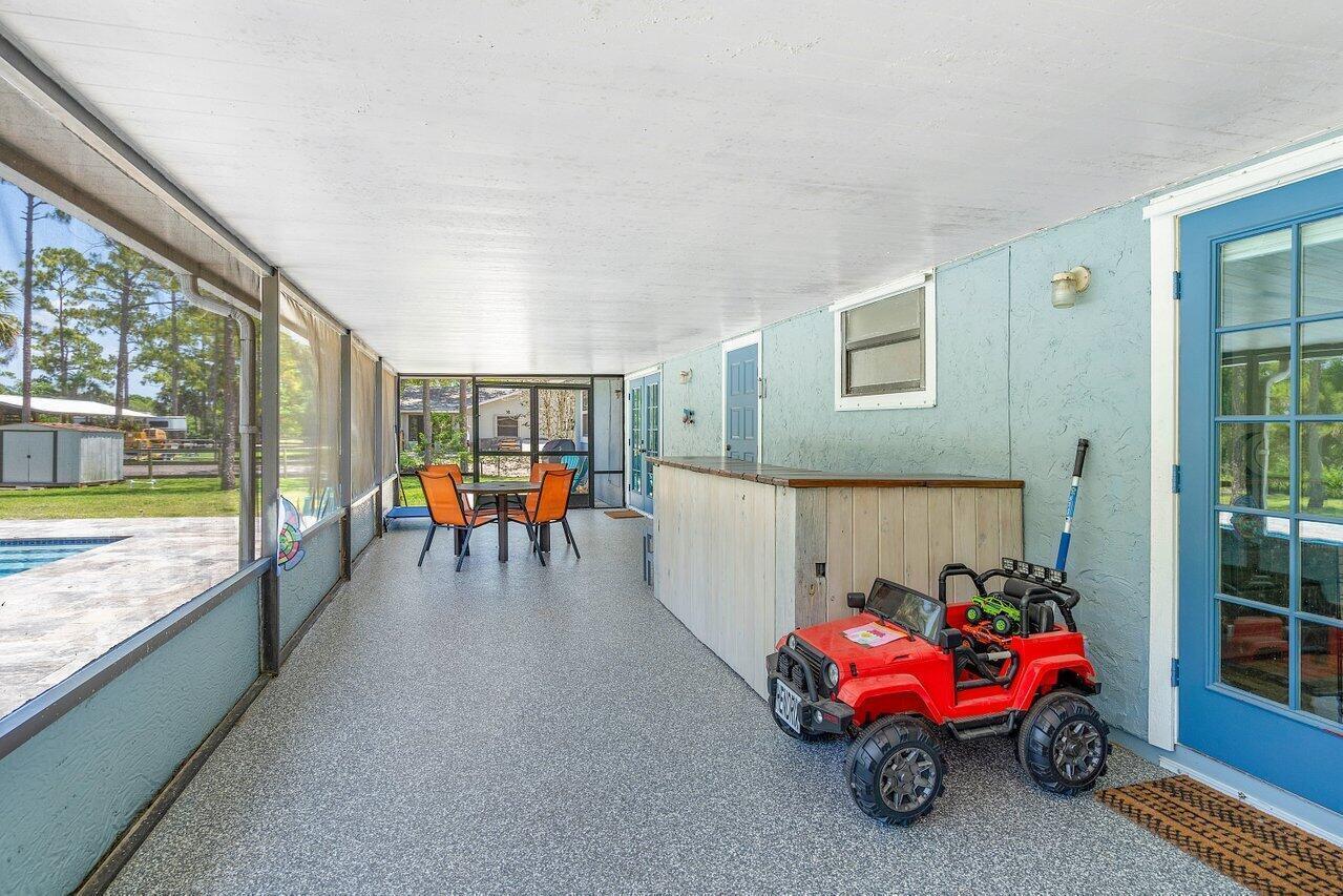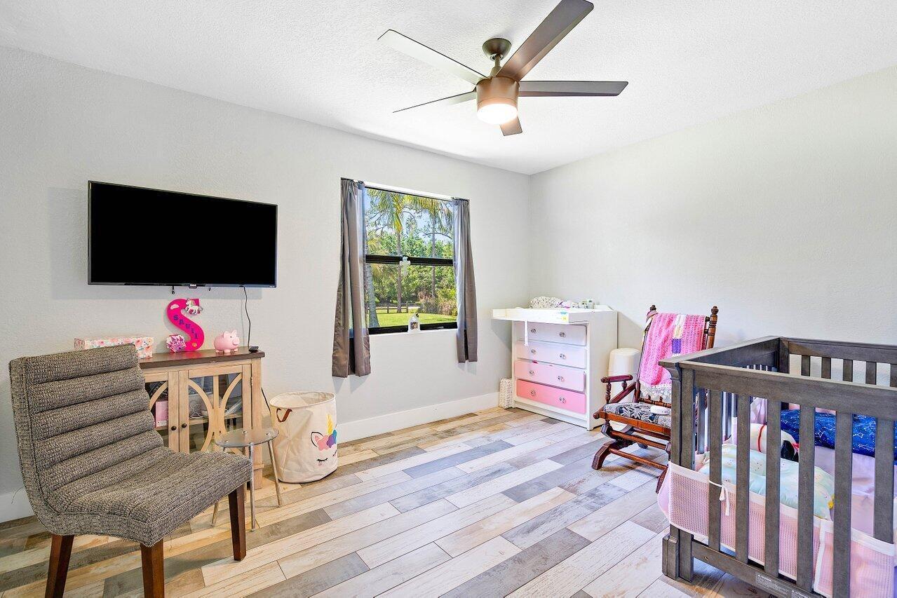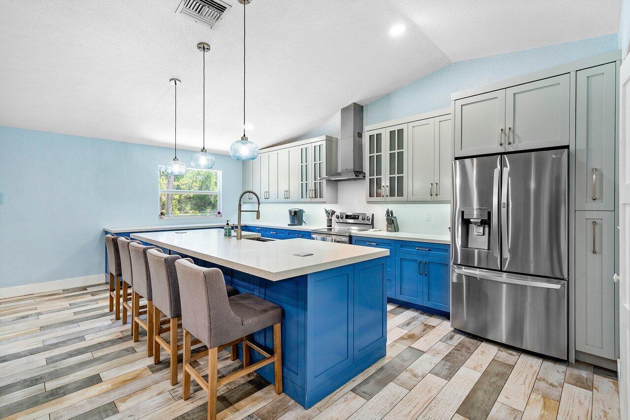 This stunning property in Loxahatchee is newly renovated and sits on 1.25 acres, close to major roads. It offers 3 bedrooms plus an additional A/C'd garage conversion that can be used for an additional bedroom, 2 bathrooms, and a 1-car garage, all recently upgraded to HGTV magazine-worthy standards. The backyard is perfect for outdoor entertaining, showcasing a recently built 14'x28' pool, 9.5'x7' Sun Shelf, Wall to Wall stairs, LED lights, pool heater, and a salt chlorination system. Step inside to find an open layout fully designed and upgraded by a professional designer with a designer kitchen and multi-colored wood-look tile flooring throughout the entire home. The current roof was installed in 2005 but the Roof is in the process of being replaced once city permits is received.
