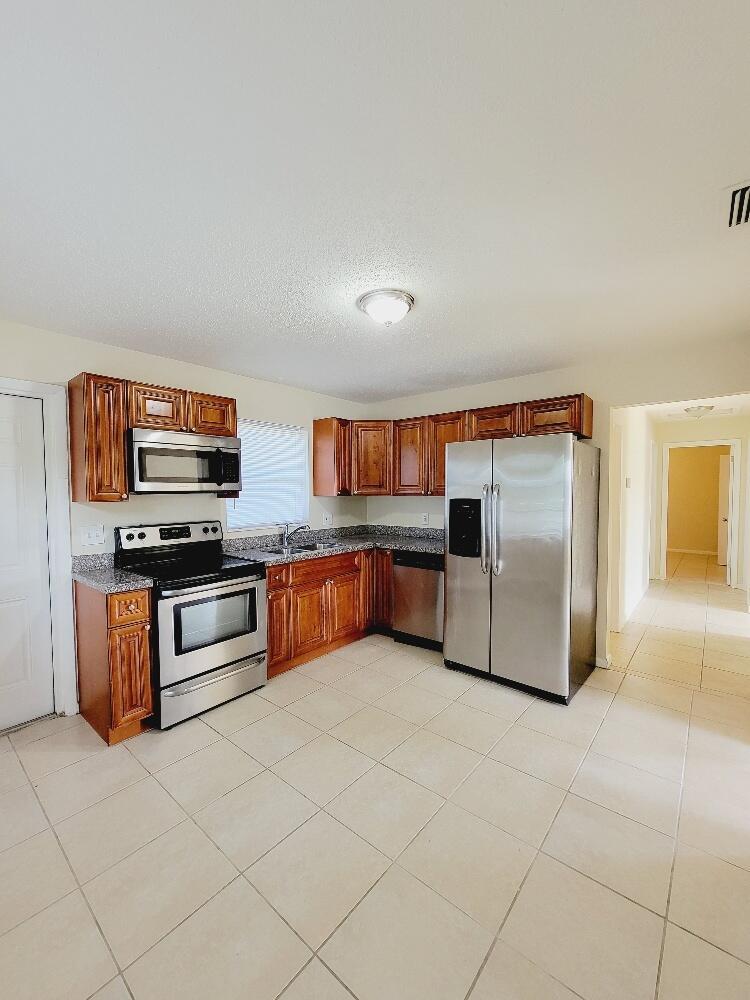 You will love making this gorgeous house your new home! The front exterior boasts a beautiful lawn, an extended drive, and charming curb appeal, while the backyard offers lots of outdoor space for weekend entertaining and a patio area for cooking out. The interior features plush carpeting and stylish tile flooring throughout, lots of natural lighting for an inviting household, cozy bedrooms, clean, updated bathrooms, lots of room for making long-lasting memories, and a kitchen equipped with updated stainless steel appliances, granite countertops, and beautiful wooden cabinetry.