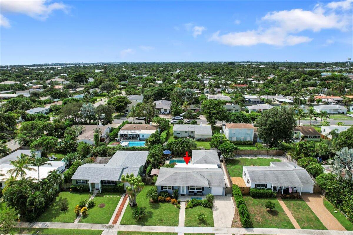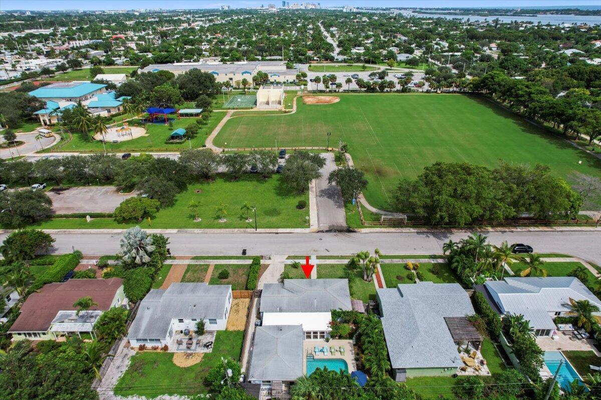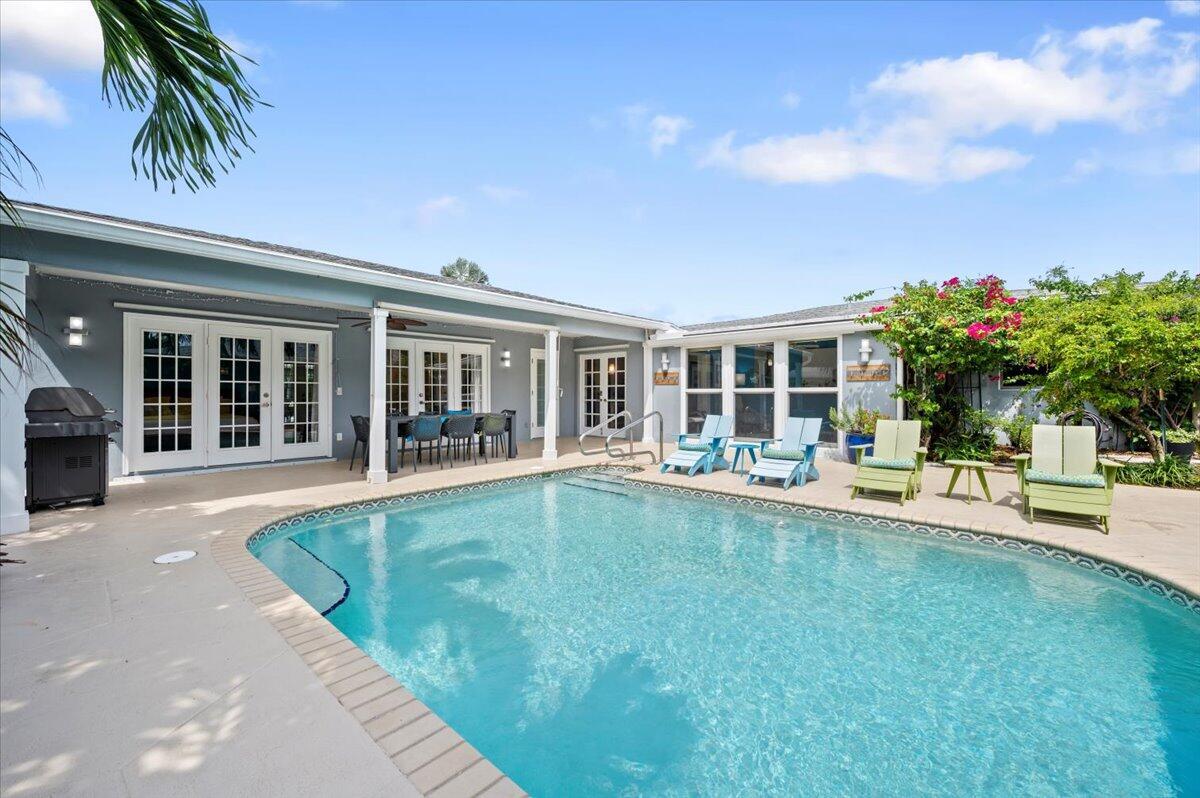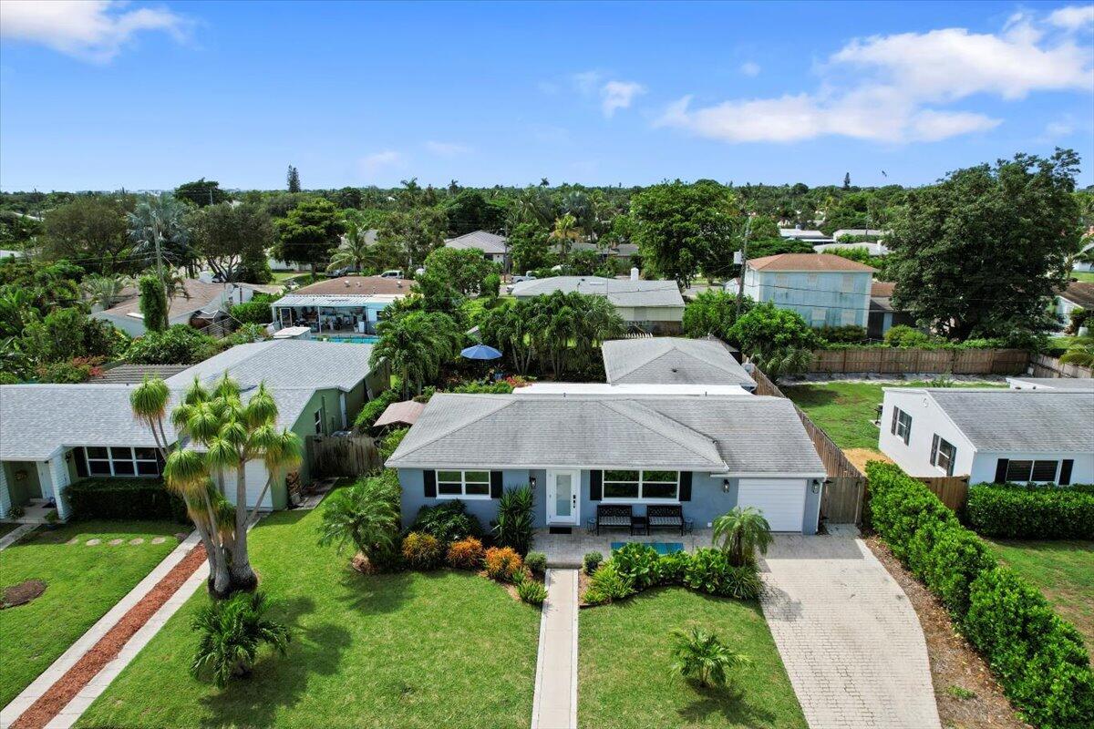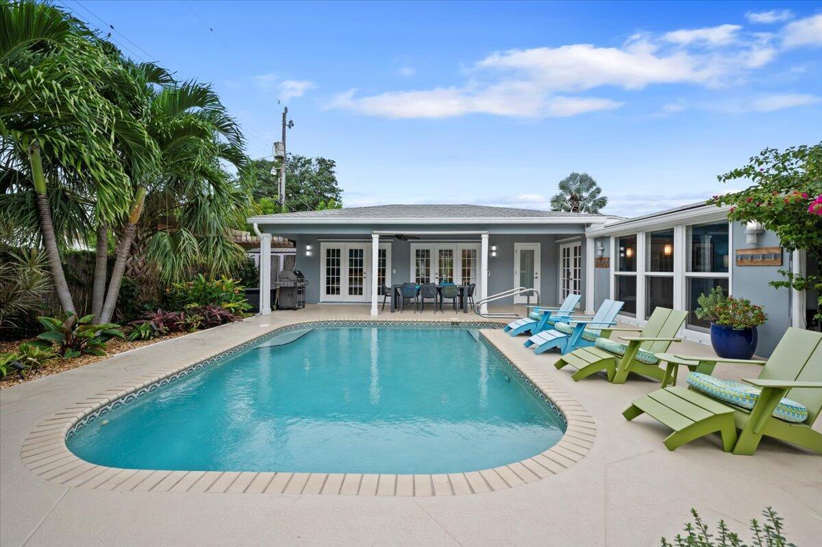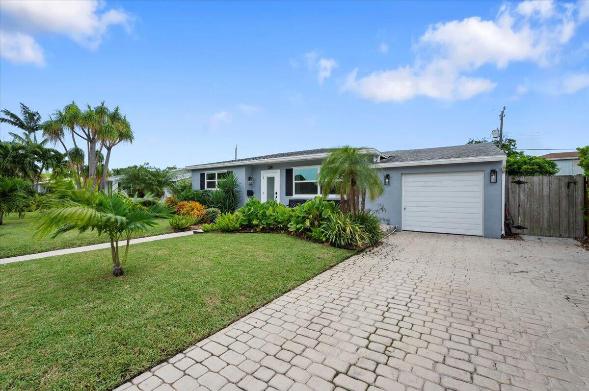 Welcome to your home in the sought after ''SoSo'' neighborhood. This renovated 1950's Ross built, CBS, 3 bd, 2 bth, heated saltwater pool home is just a couple of blocks from the Intracoastal waterway and across the street from South Olive park. Boasting original Terrazzo, Mexican clay, 1 yr new laminate floors, Partial Impact glass, quartz countertops, Miele cooktop. solid wood cabinetry and all the natural light you love. Split floor plan, lots of windows, French doors, Coffee bar, and covered lanai. Dual A/C's 2008 & 2011, New Samsung washer & Dryer, Nozzle Nolan transferrable termite bond, New PVC sewer lines from street to backyard 2023. Close proximity to Beautiful Beaches, PBI Airport, world class dining, shopping, Worth Ave, Kravis Center, Norton Art Gallery, Golf and Tennis.