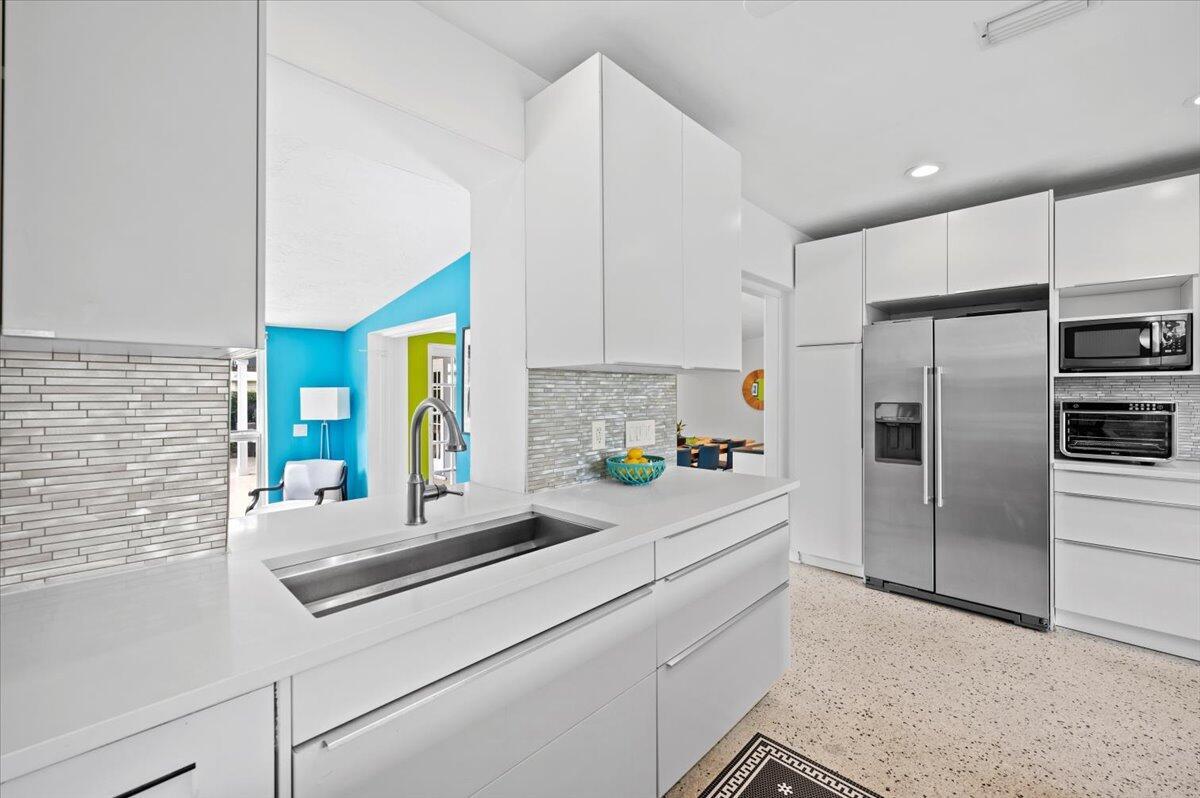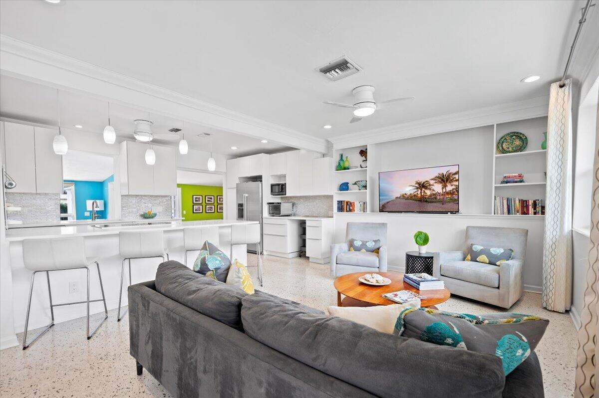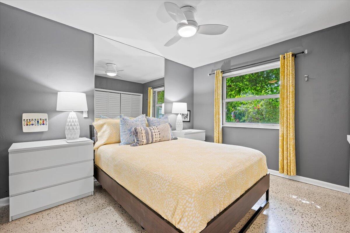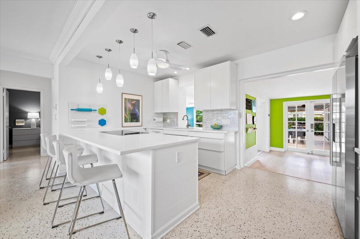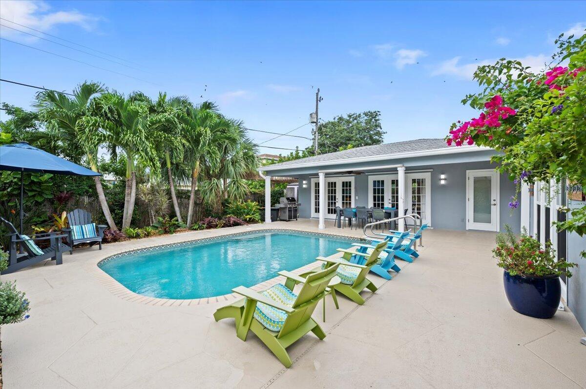 Welcome to your home in the sought after ''SoSo'' neighborhood. This renovated 1950's Ross built, CBS, 3 bd, 2 bth, heated saltwater pool home is just a couple of blocks from the Intracoastal waterway and across the street from South Olive park. Boasting original Terrazzo, Mexican clay, 1 yr new laminate floors, Partial Impact glass, quartz countertops, Miele cooktop. solid wood cabinetry and all the natural light you love. Split floor plan, lots of windows, French doors, Coffee bar, and covered lanai. Dual A/C's 2008 & 2011, New Samsung washer & Dryer, Nozzle Nolan transferrable termite bond, New PVC sewer lines from street to backyard 2023. Close proximity to Beautiful Beaches, PBI Airport, world class dining, shopping, Worth Ave, Kravis Center, Norton Art Gallery, Golf and Tennis.