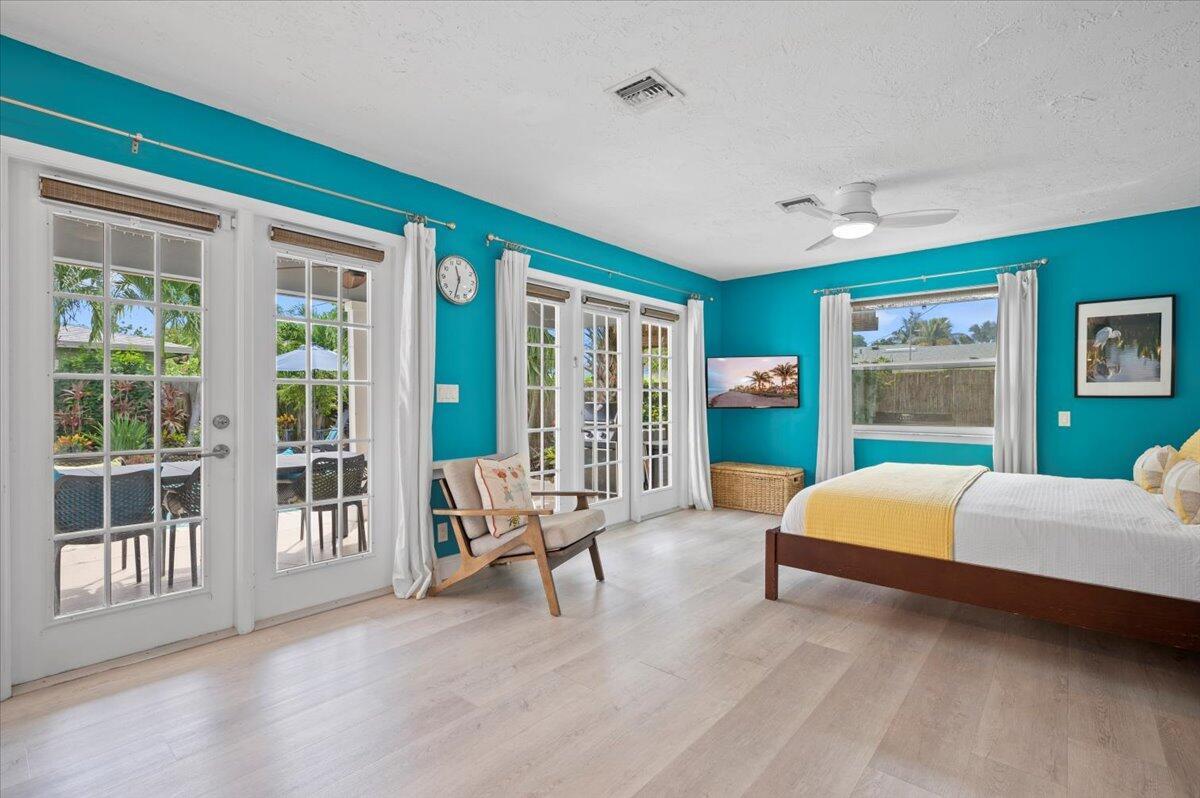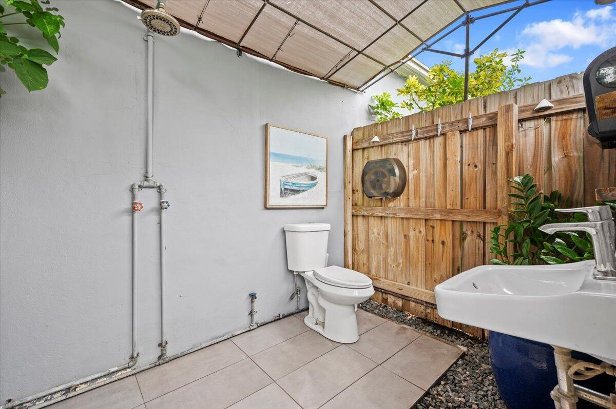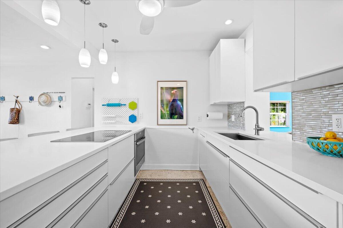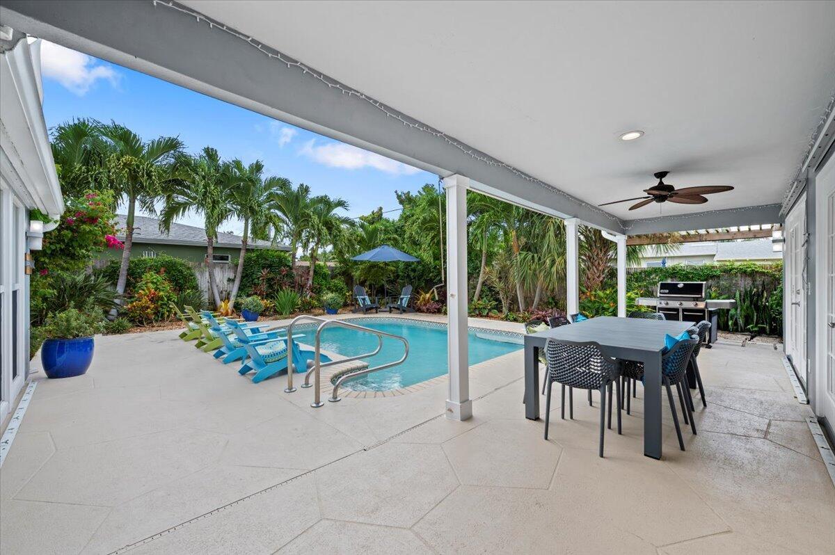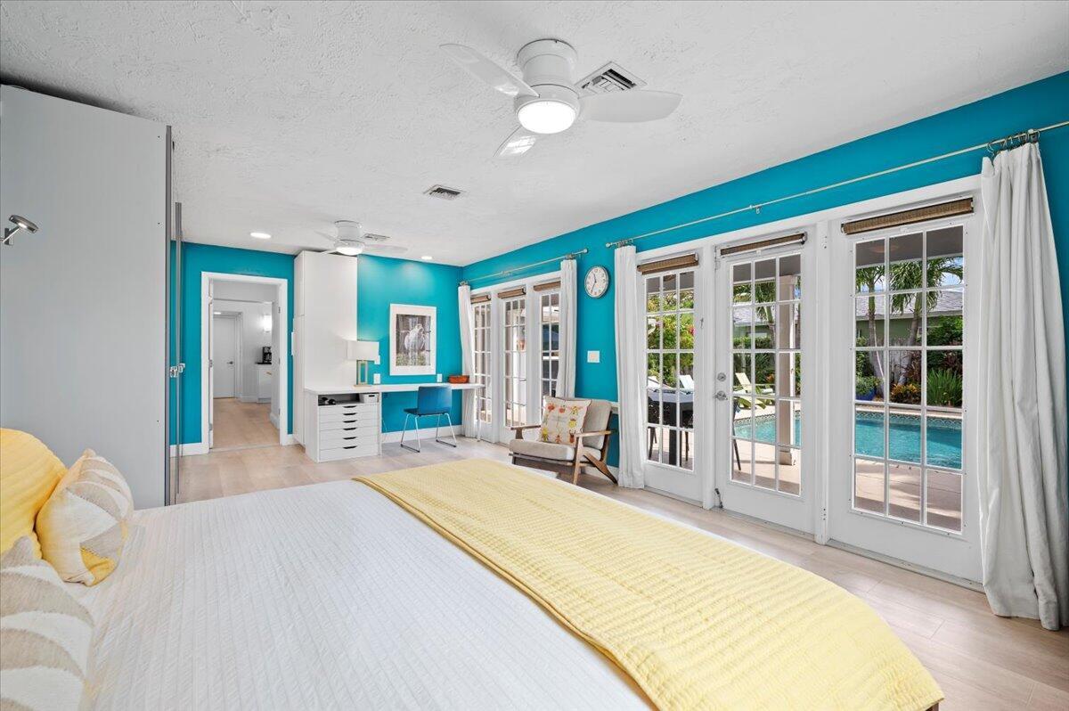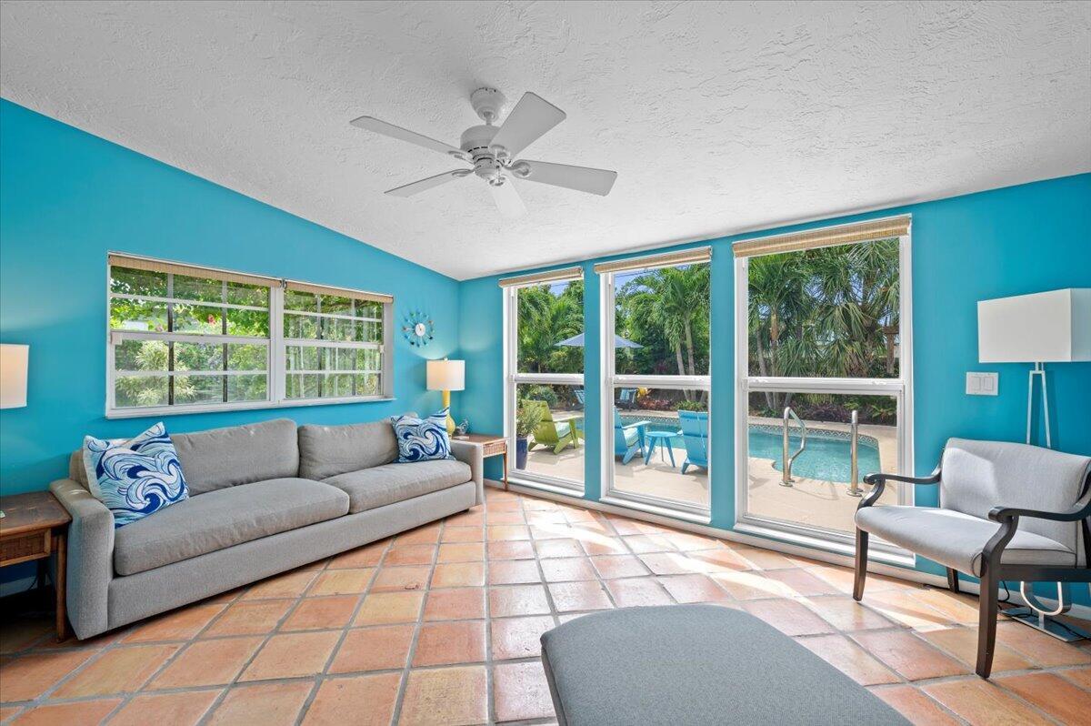 Welcome to your home in the sought after ''SoSo'' neighborhood. This renovated 1950's Ross built, CBS, 3 bd, 2 bth, heated saltwater pool home is just a couple of blocks from the Intracoastal waterway and across the street from South Olive park. Boasting original Terrazzo, Mexican clay, 1 yr new laminate floors, Partial Impact glass, quartz countertops, Miele cooktop. solid wood cabinetry and all the natural light you love. Split floor plan, lots of windows, French doors, Coffee bar, and covered lanai. Dual A/C's 2008 & 2011, New Samsung washer & Dryer, Nozzle Nolan transferrable termite bond, New PVC sewer lines from street to backyard 2023. Close proximity to Beautiful Beaches, PBI Airport, world class dining, shopping, Worth Ave, Kravis Center, Norton Art Gallery, Golf and Tennis.