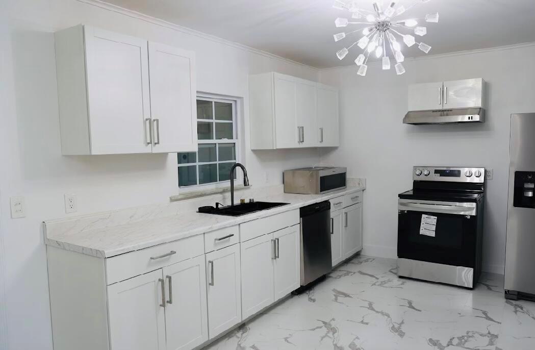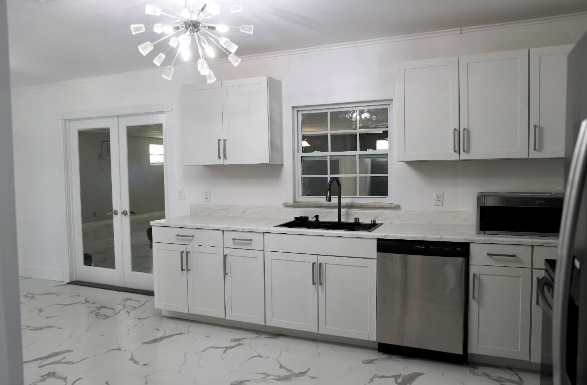 Welcome to your dream home in unincorporated West Palm Beach! This 5-bed, 2-bath gem, 2,636 sq. ft., newly remodeled with brand-new floors and cabinets, plus warranties on appliances and AC. Spacious driveway, 1-car garage, no HOA. Plenty of space for RVs, boats, or trailers. Close to A-rated elementary school. Easy access to Turnpike, Downtown West Palm Beach, airport, and beaches. Generous front and backyard with fruit trees. 900 sq. ft. family entertainment room with bar. Fenced yard with doggie door. Electrified storage shed. Don't miss this!