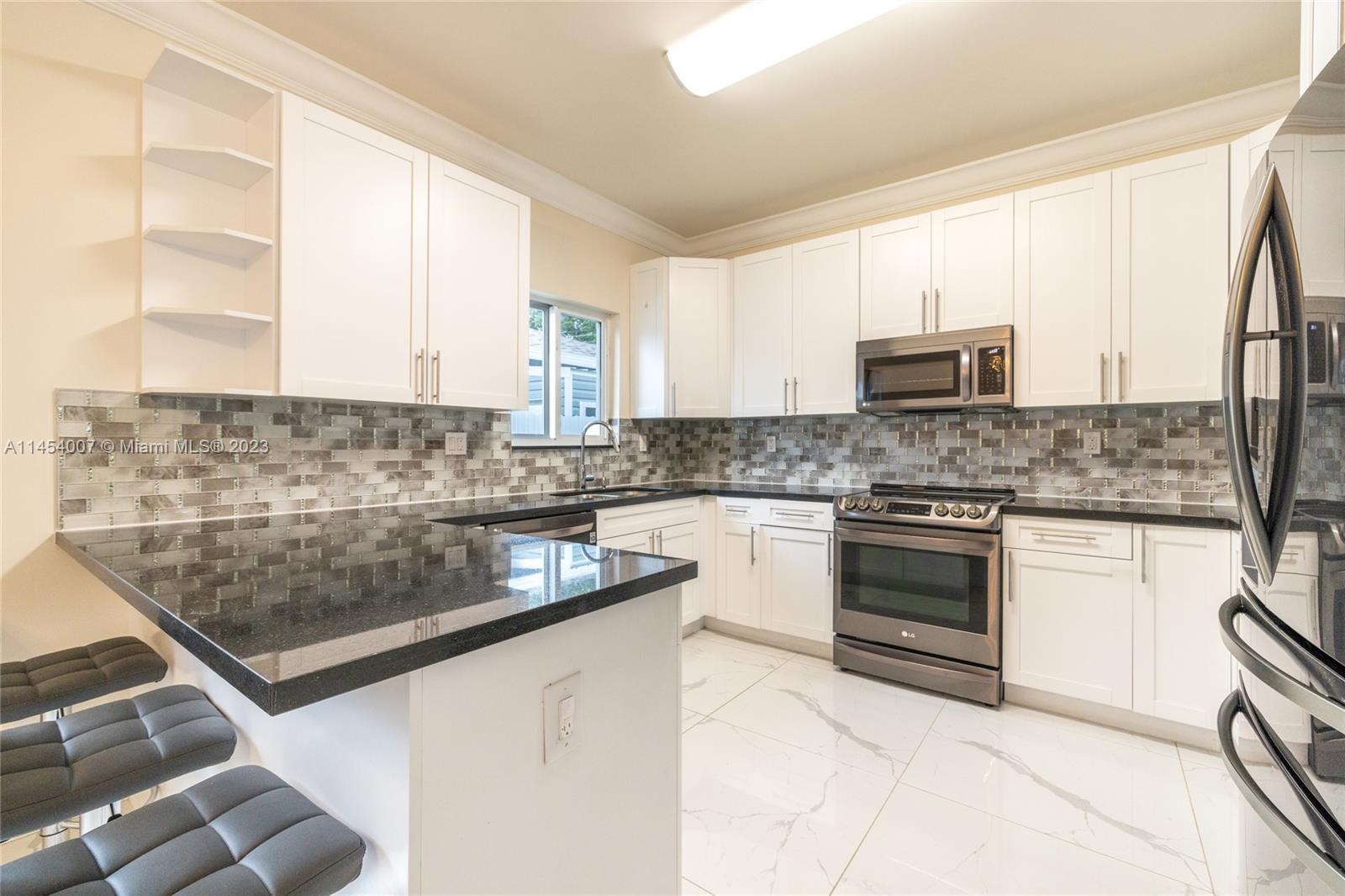 Gorgerous new modern single family home with 4 bedrooms, 3 full bathrooms including two showers and one bath tubs. Large modern kitchen with wood cabinet, Black Galaxy natural granite countertop, and glass mosaic backsplash, 32x32 porcelain flooring, high end appliances, Hurricane impact French doors and windows, Modern chandelier, Clear glass shower doors, Sprinkler system, nice landscaping, Modern design stamped concrete Driveway, new fences installed. Located in a nice and quiet neighborhood, minutes away from major expressways, and shopping area, blocks away from Hollywood Blvd and Turnpike. Space to build a pool on the back. Must see to appreciate! Open house on Sep 30th from 2 to 4 pm.