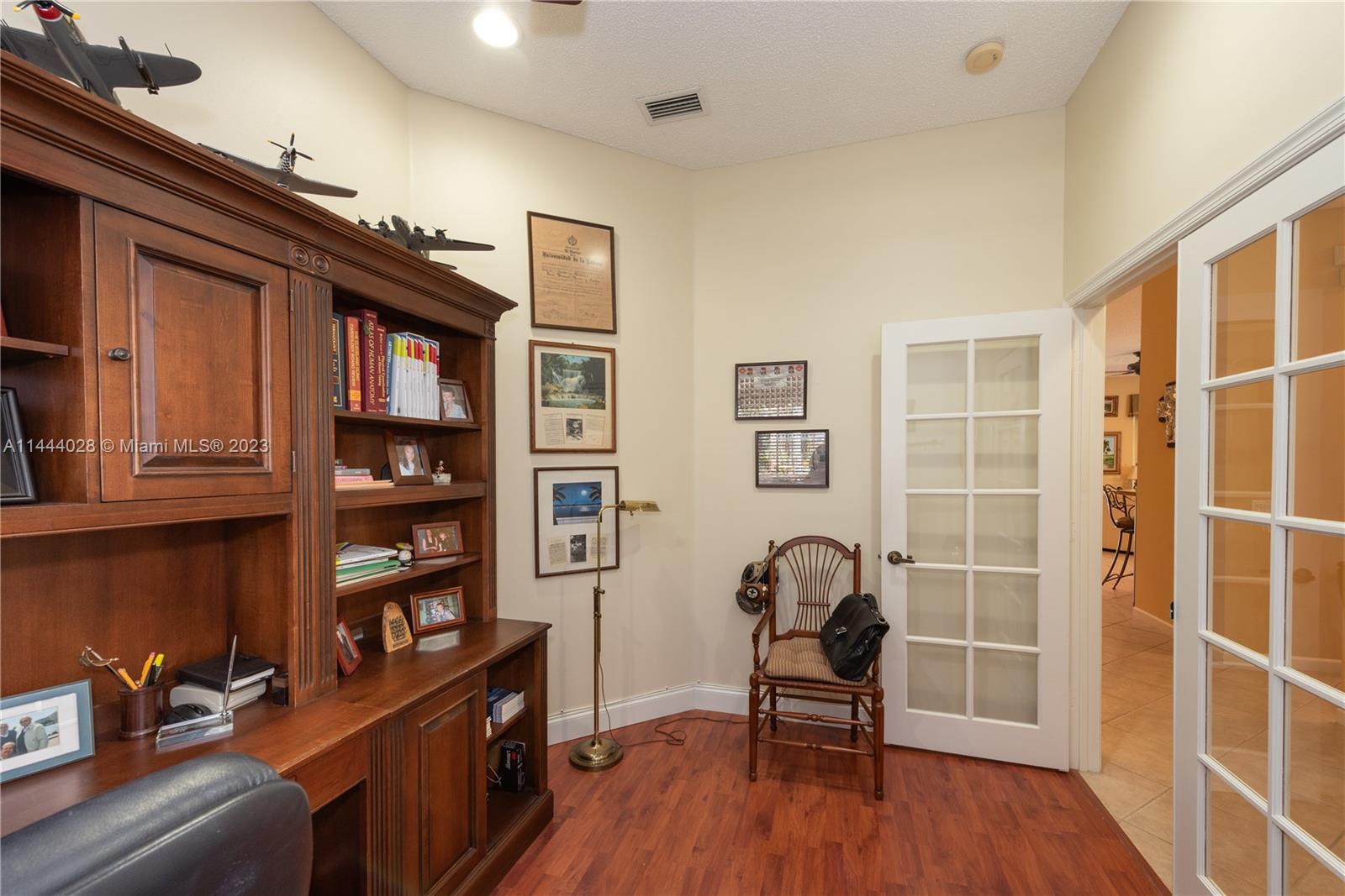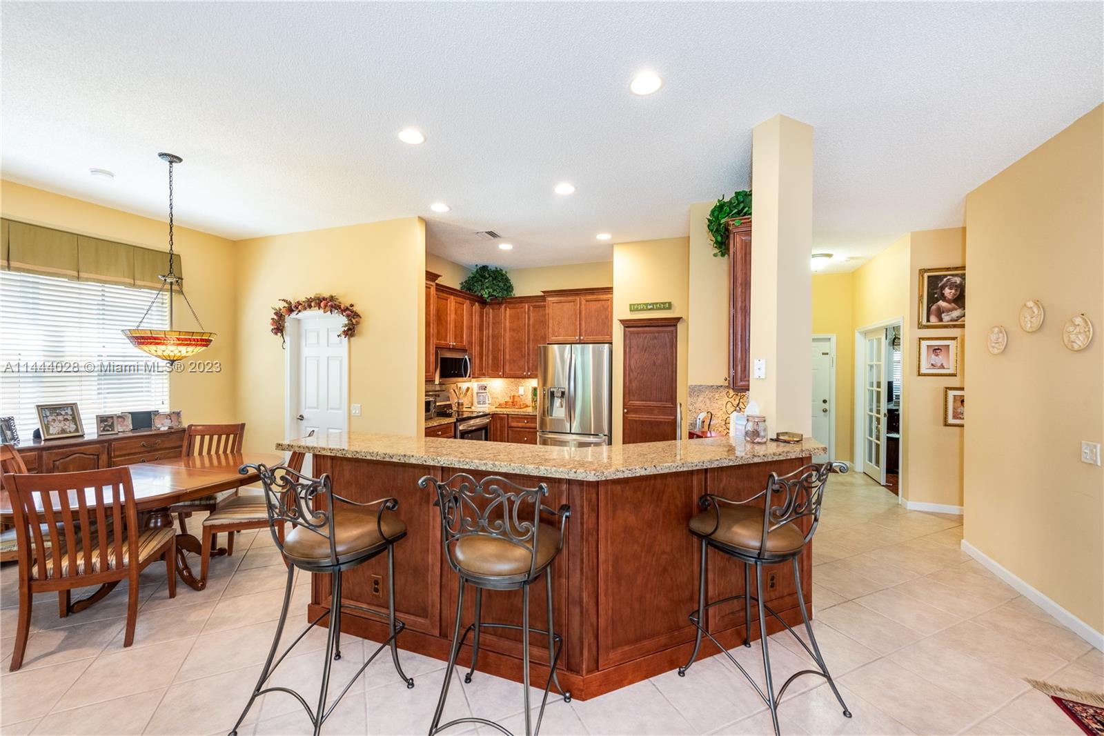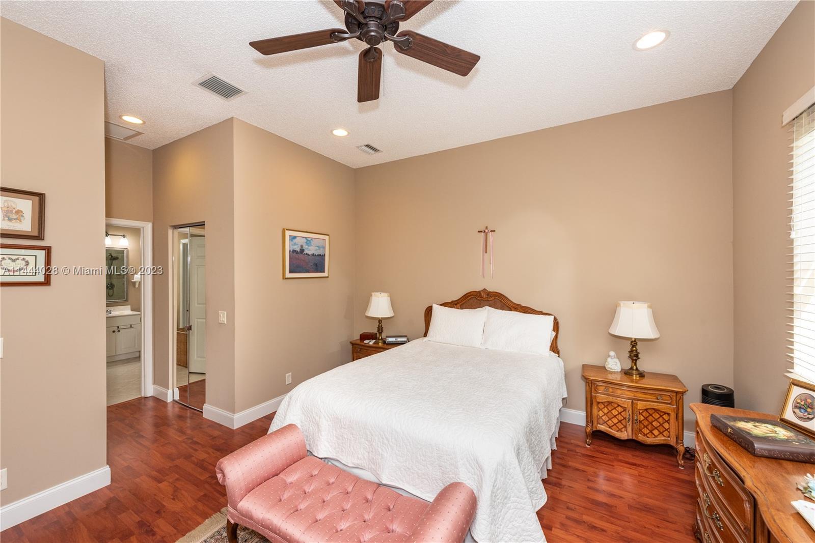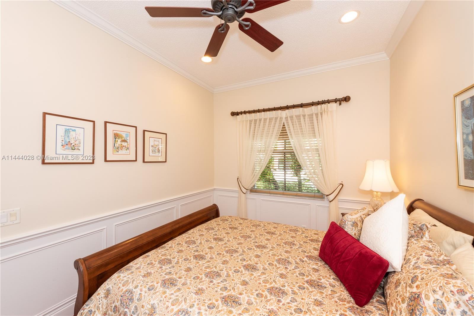 Savanna is one of Weston's highly desirable gated communities. This impeccable home is move-in ready, with a superb layout for entertaining. The living, kitchen, and family rooms are all integrated with bright, ample areas facing the beautifully landscaped backyard, which you can access through two different sliding doors. The backyard features a large overhang paved area with fan. The house has a split floor plan with 2 AC's, lots of light and a 4th bedroom that has been converted into an office. The kitchen has solid wood cabinets, granite counter tops, and stainless steel appliances. The laundry room is under AC with a utility sink. Accordion shutters. A+ Schools, some of the best in Broward County.No Association Approval required.