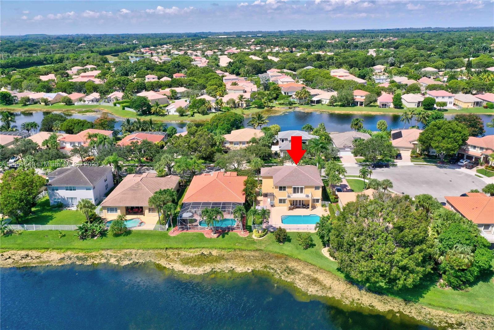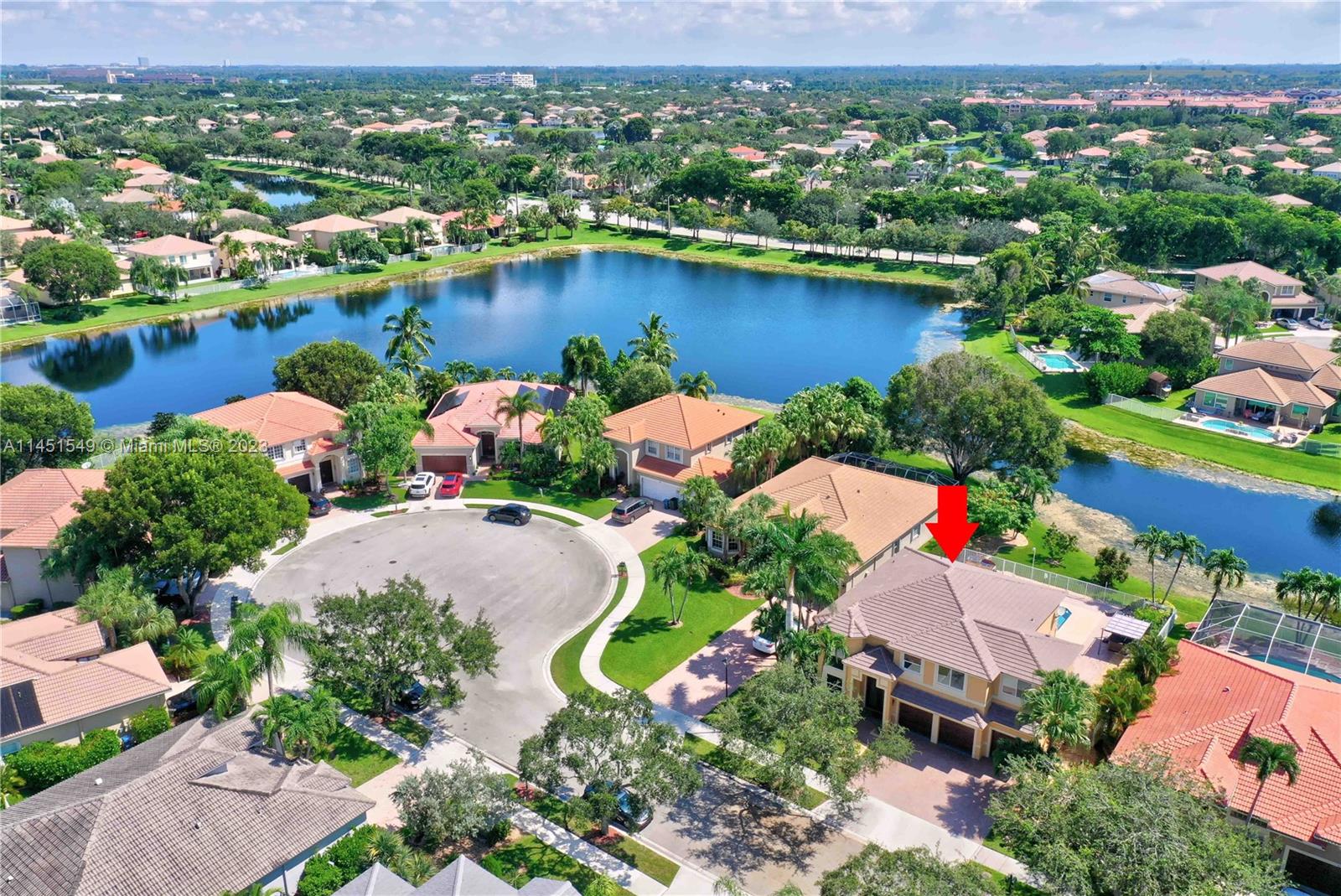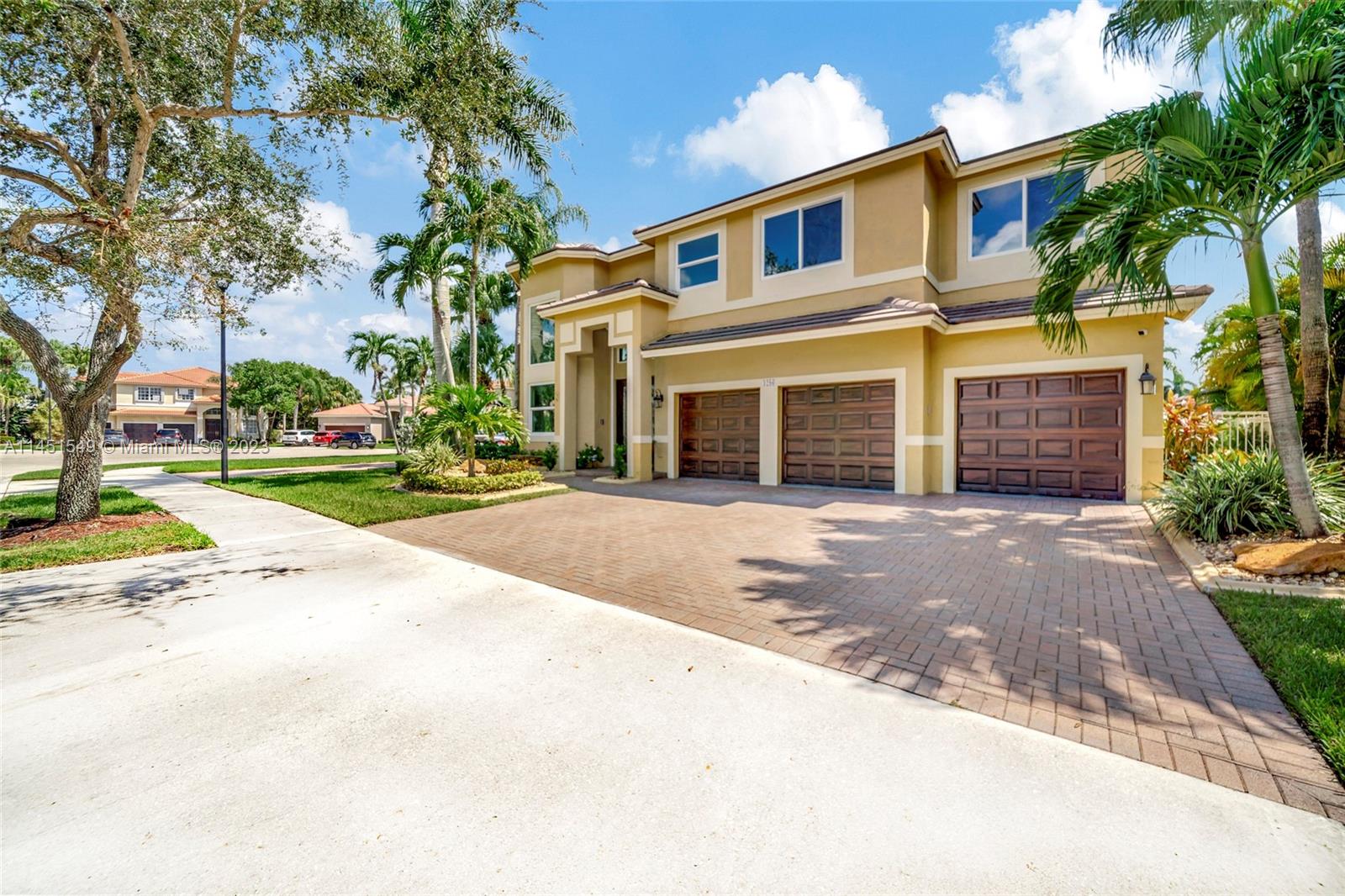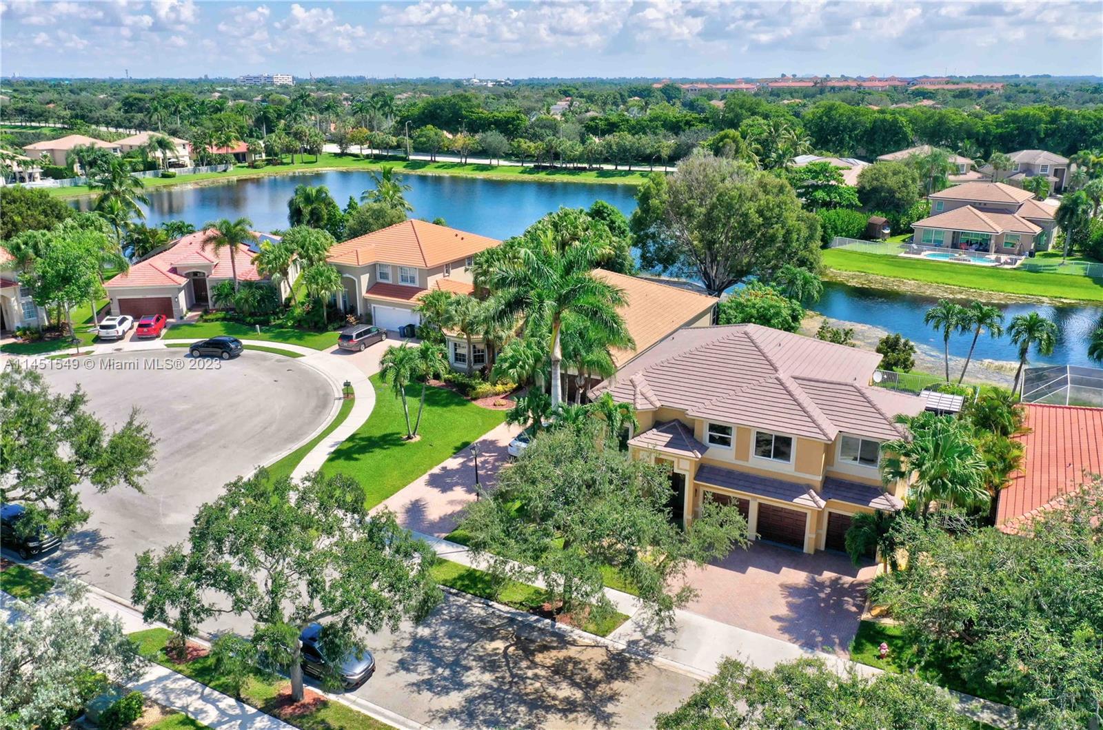 $25,000 BUY DOWN CREDIT paid buy Seller - Welcome to luxurious living in Weston's Emerald Estates! This stunning 5-bedroom, 3-bath home, tucked away in a tranquil cul-de-sac, offers modern updates, a chef's kitchen, and elegant baths. The primary bedroom boasts a private terrace with serene lake views. Marble floors, a 3-car garage with epoxy floors, and brick paver driveways add to the charm. Safety is ensured with security cameras and monitors installed inside and out as well as 24/7 gated security, and the HOA covers landscaping, cable, internet, gym access, and alarm monitoring. A new roof and impact windows provide peace of mind. Your oasis awaits outside with a pool, spa, and outdoor kitchen. Don't miss out! Schedule your showing today!