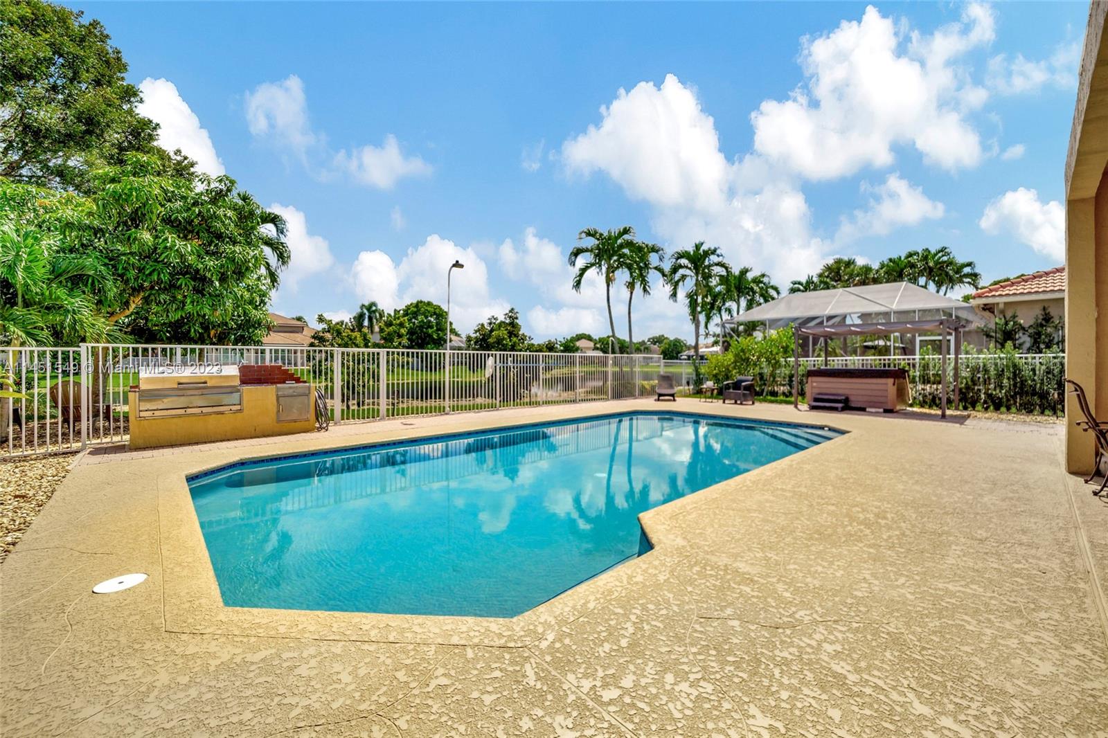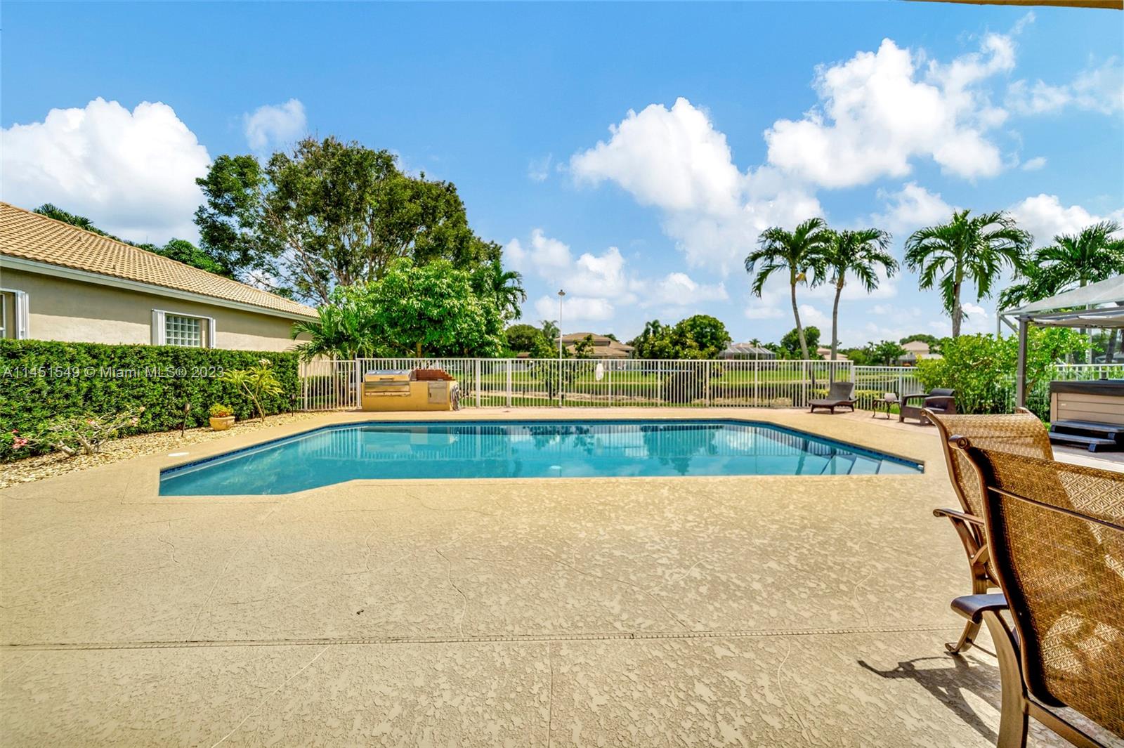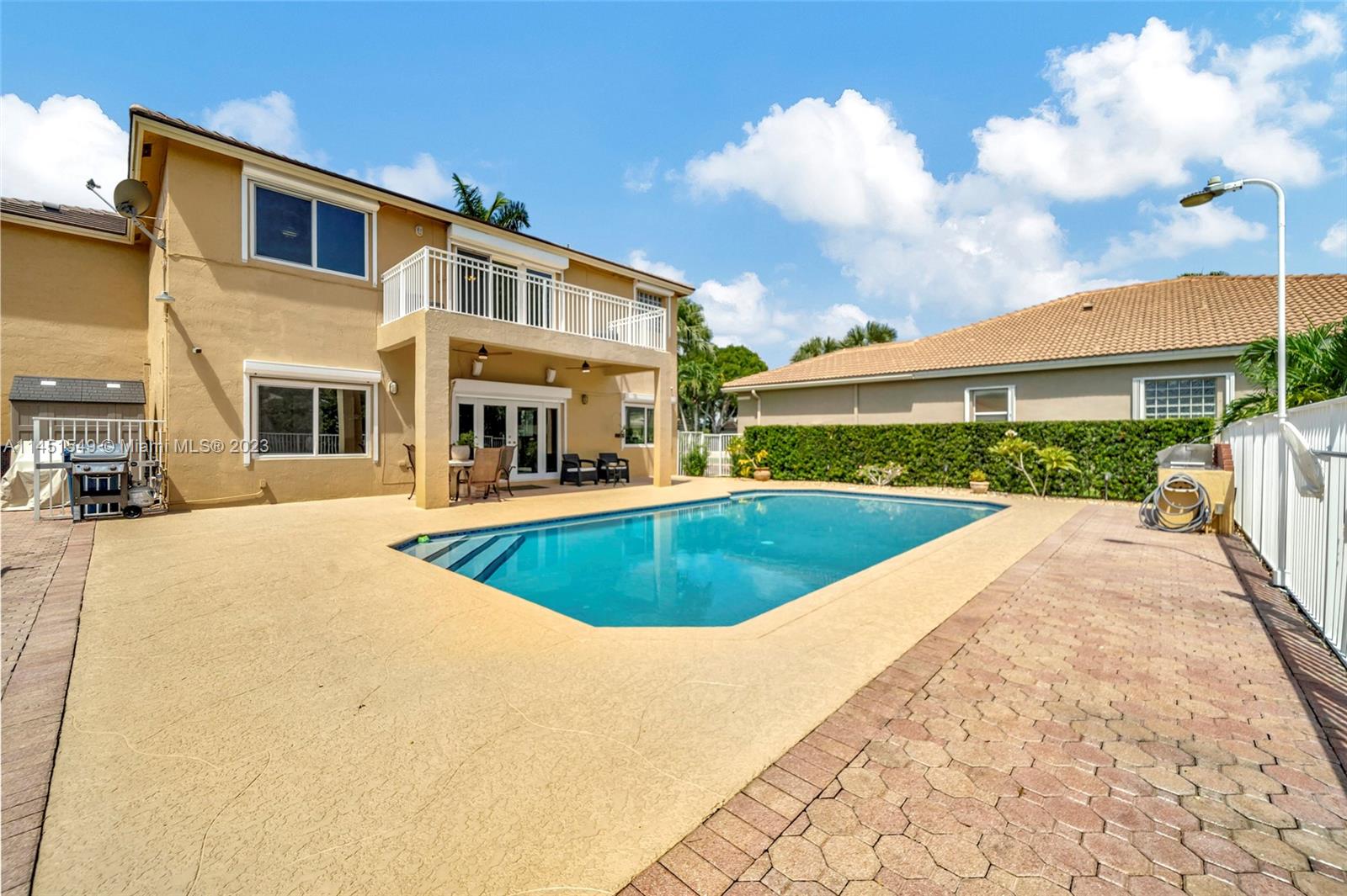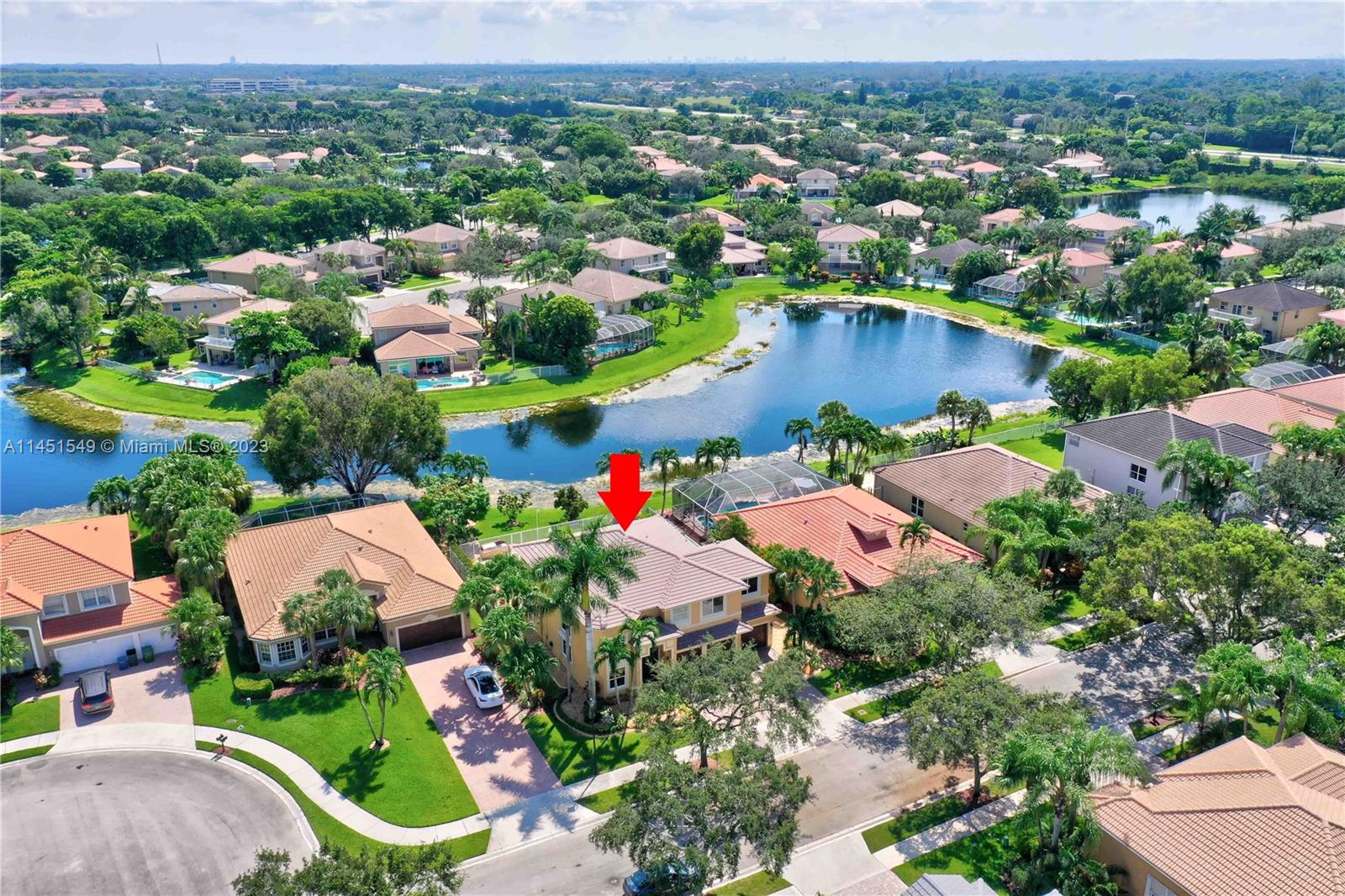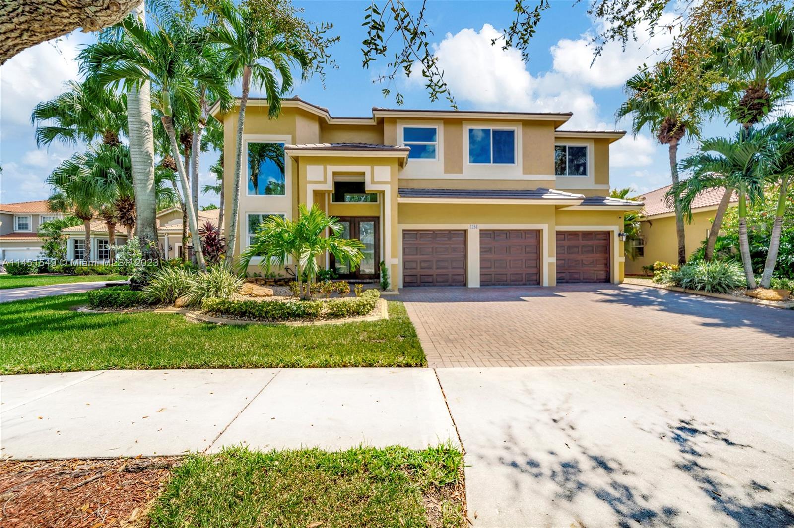 $25,000 BUY DOWN CREDIT paid buy Seller - Welcome to luxurious living in Weston's Emerald Estates! This stunning 5-bedroom, 3-bath home, tucked away in a tranquil cul-de-sac, offers modern updates, a chef's kitchen, and elegant baths. The primary bedroom boasts a private terrace with serene lake views. Marble floors, a 3-car garage with epoxy floors, and brick paver driveways add to the charm. Safety is ensured with security cameras and monitors installed inside and out as well as 24/7 gated security, and the HOA covers landscaping, cable, internet, gym access, and alarm monitoring. A new roof and impact windows provide peace of mind. Your oasis awaits outside with a pool, spa, and outdoor kitchen. Don't miss out! Schedule your showing today!