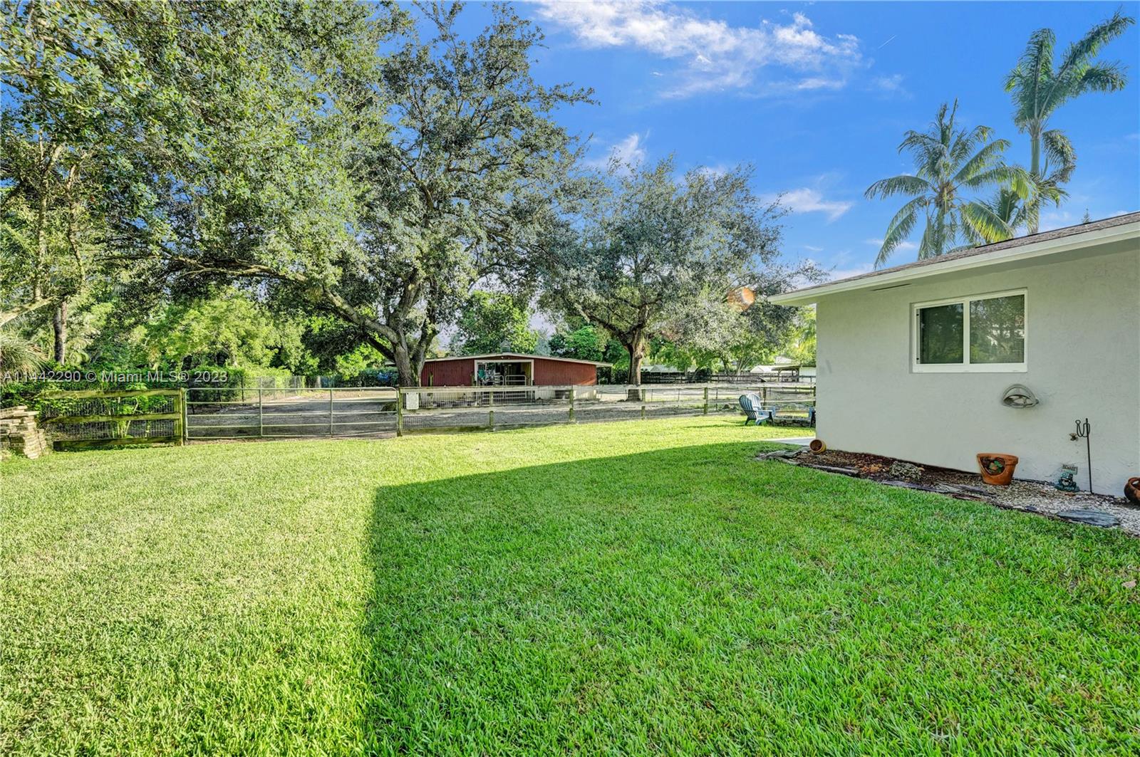 What an amazing find in the heart of west Davie in the middle of the Davie Recreational Trails System. The possibilities are endless - move right in or there is plenty of space to add a 4th bedroom & 3rd bathroom with over 2,400 sf of living area. Huge 36,000 sf+ lot boasts a center aisle barn with electric, water & metal roof with 4 stalls, tack room and hay/storage room & large paddock area. If horses aren't your thing this can easily be converted to an incredible work shop, man-cave, etc. The home interior features tastefully updated kitchen and bathrooms, tile floors and crown moldings throughout. Hurricane impact windows. Huge covered back patio perfect for family gatherings and entertaining. Great school system. Super easy access to I75, 595, shopping, restaurants and more!