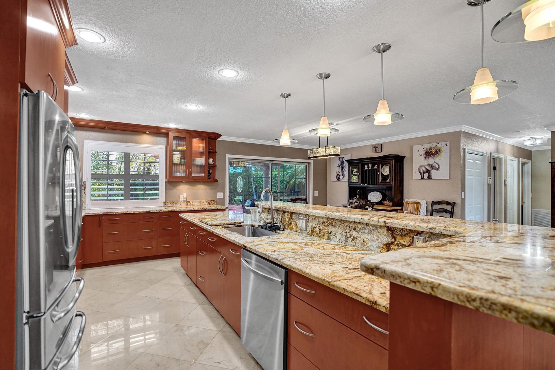 This home is tailored for multi-generational living or optimal Airbnb hosting, offering a harmonious balance of privacy and communal spaces. Substantial renovations include a huge 2nd Story addition w/ensuite bath. A family/game room & separate laundry room were added extending the living area. The Tile & Flat roof, impact windows & doors & 2 car garage were part of the addition. The Chef's kitchen has solid wood cabinetry, SS appliances, granite counters, wall mounted pot filler faucet, plenty of work space & storage. Fully fenced yard, pool newly resurfaced, new HVAC downstairs in 2022. Close to all major highways, airport, Hard Rock Casino & beaches. For permit information go to:LAUDERBUILD to view the list. This is a uniquely large home for the area, you won't find many like it!