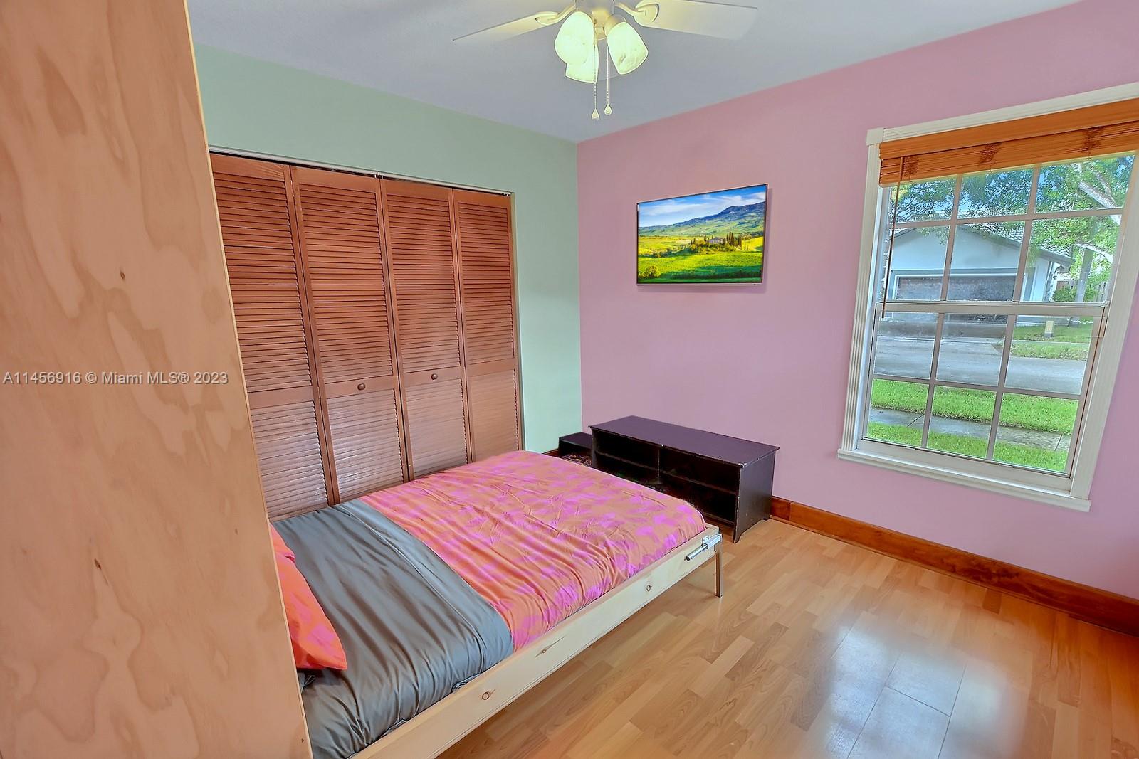 OPPORTUNITY IS KNOCKING IN THE ONE OF A KIND ROCK CREEK COMMUNITY OF COOPER CITY! ONE STORY 3 BEDROOM, 2 BATH HOME FEATURES HIGH CEILINGS WITH AN OPEN AND SPLIT FLOOR PLAN. CHARMING COUNTRY CHIC KITCHEN HAS STYLISH BUTCHER BLOCK COUNTERS AND FRENCH DOORS TO THE PRIVATE BACKYARD. PRIMARY SUITE HAS WALK-IN AND BUILT-IN CLOSETS AND BEAUTIFULLY REMODELED SPA-LIKE BATH WITH DOUBLE VANITIES. SECOND BATH ALSO UPDATED WITH DOUBLE VANITIES & TUB/SHOWER COMBO. PERGO FLOORING THROUGHOUT, NO CARPET ANYWHERE! ENJOY THE SPACIOUS, FENCED IN BACKYARD THAT OPENS TO COMMON AREA NEAR PLAYGROUND AND JOGGING PATH. ROCK CREEK HAS A 2.75 MILE JOG/WALK PATH, PARKS, LAKES, SPORTS COURTS, TOT PLAYGROUNDS. ZONED FOR COOPER CITY SCHOOLS AND WALKING DISTANCE TO EMBASSY CREEK ELEMENTARY.