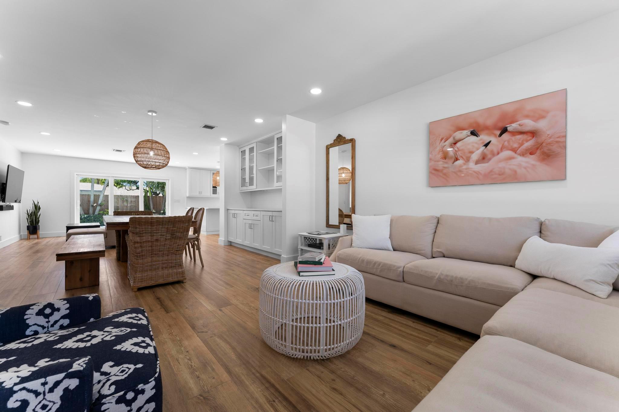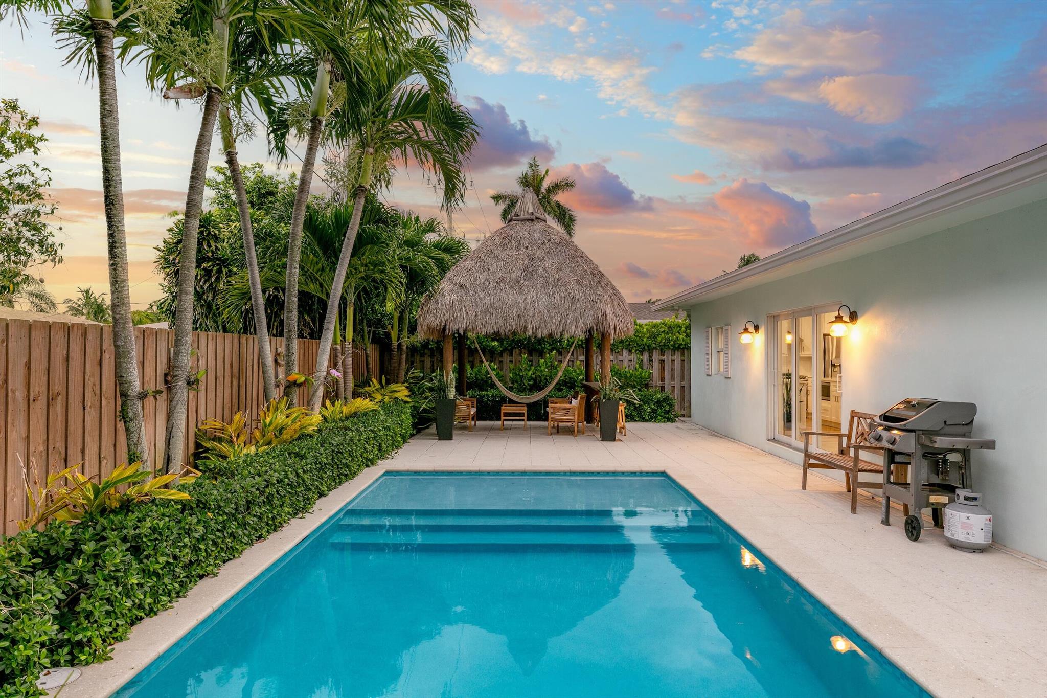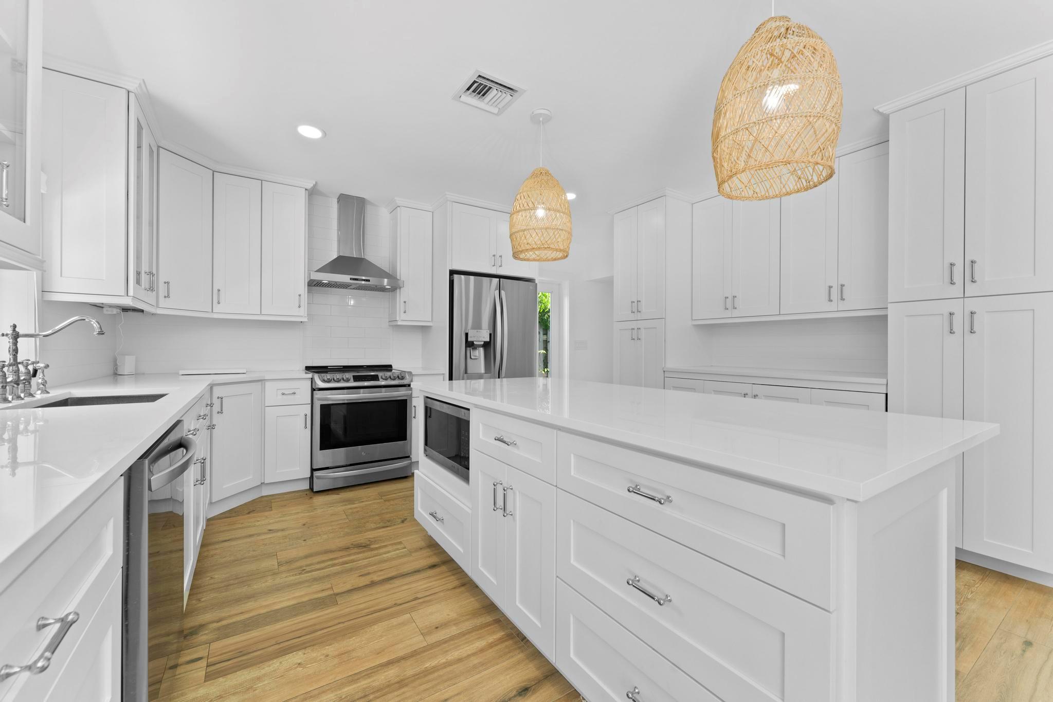 This resort-style residence is nestled in the highly sought-after SoSo neighborhood, just a stone's throw away from downtown West Palm Beach. Enjoy the convenience of living mere steps from the scenic Flagler Drive walking & bike path, as well as the breathtaking Intracoastal Waterway.Stunning & elegant, this home is designed with an open & spacious floor plan, making it ideal for both entertaining and family living. Featuring 3 bedrooms & 3 baths, it boasts a thoughtfully designed split bedroom layout for added privacy. The heart of the home, the expansive kitchen, beckons with its gleaming quartz countertops, making it a focal point for culinary delights & gatherings. Step outside into your personal oasis, where the backyard unfolds as a true haven.