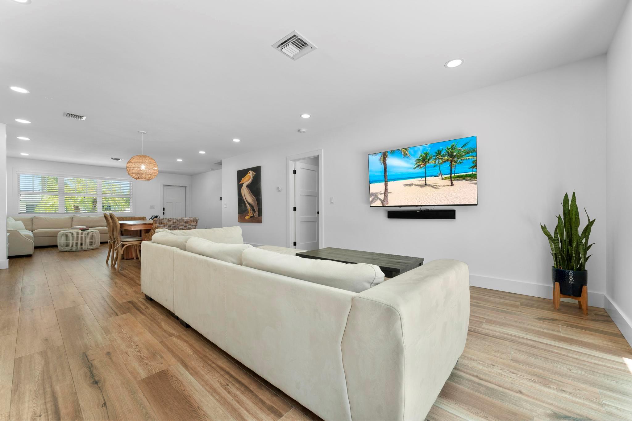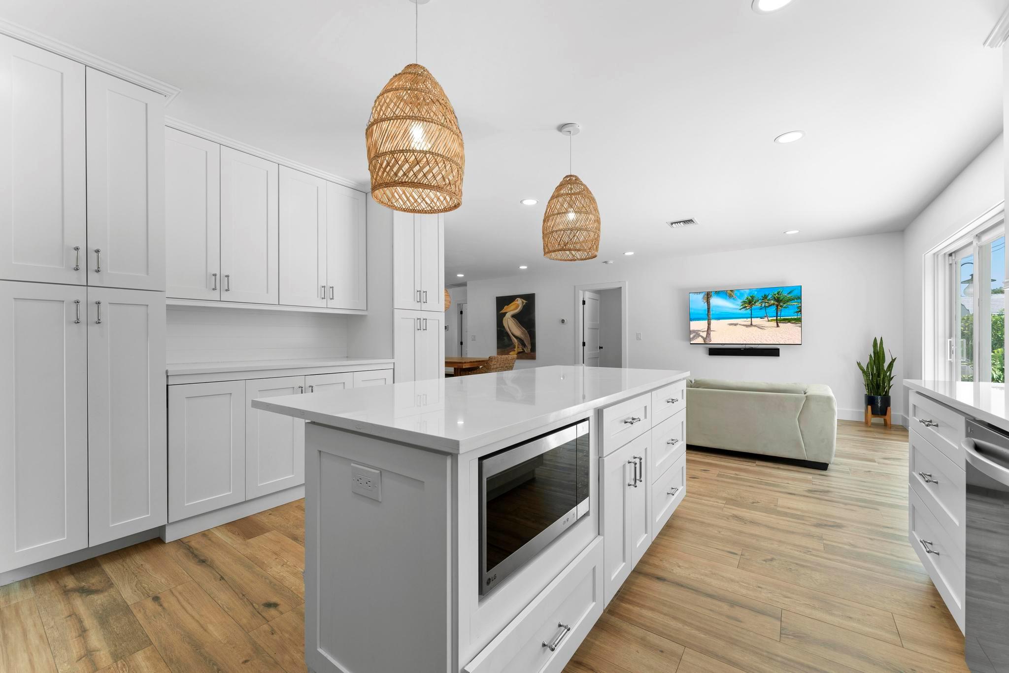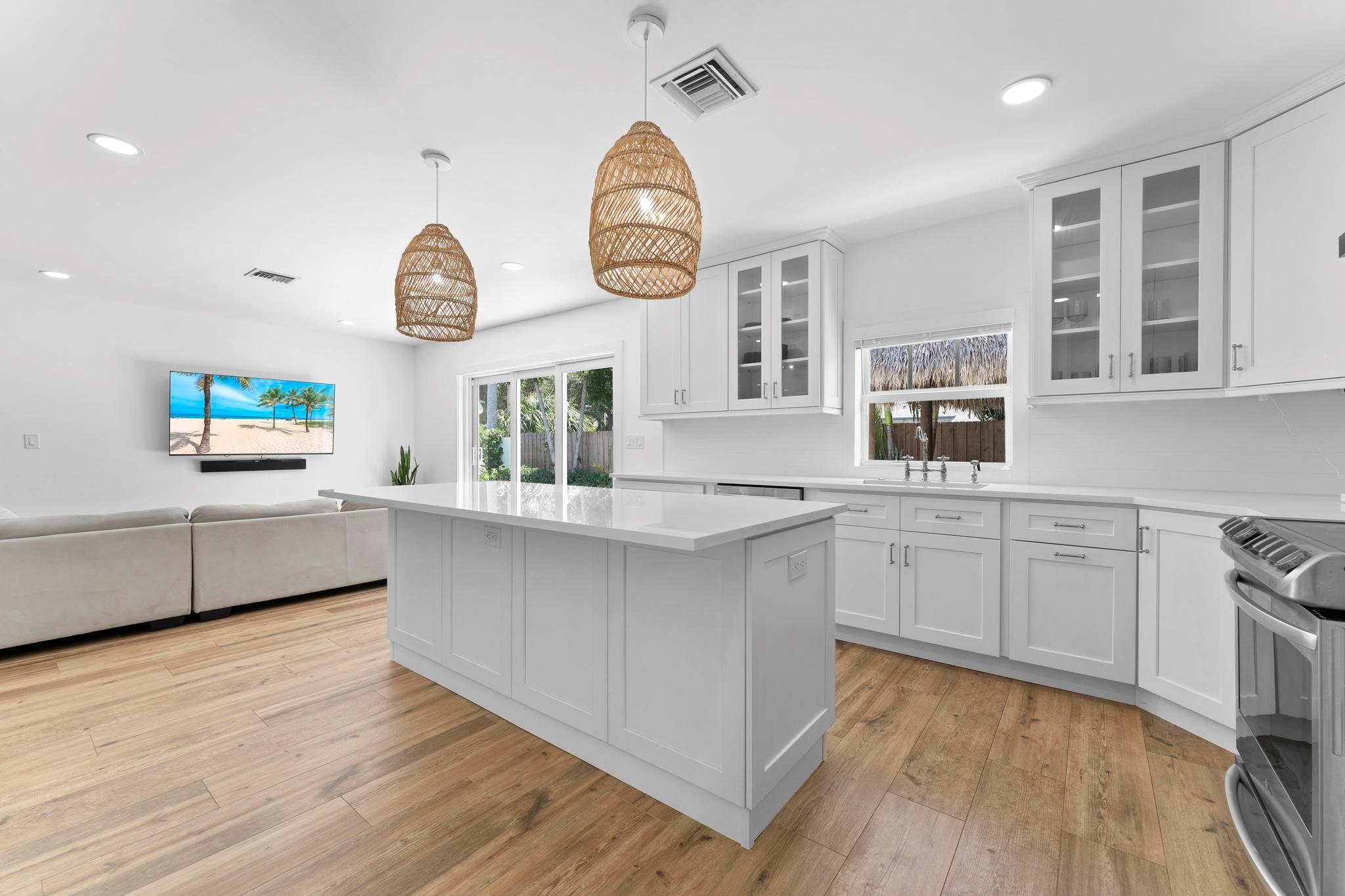 This resort-style residence is nestled in the highly sought-after SoSo neighborhood, just a stone's throw away from downtown West Palm Beach. Enjoy the convenience of living mere steps from the scenic Flagler Drive walking & bike path, as well as the breathtaking Intracoastal Waterway.Stunning & elegant, this home is designed with an open & spacious floor plan, making it ideal for both entertaining and family living. Featuring 3 bedrooms & 3 baths, it boasts a thoughtfully designed split bedroom layout for added privacy. The heart of the home, the expansive kitchen, beckons with its gleaming quartz countertops, making it a focal point for culinary delights & gatherings. Step outside into your personal oasis, where the backyard unfolds as a true haven.