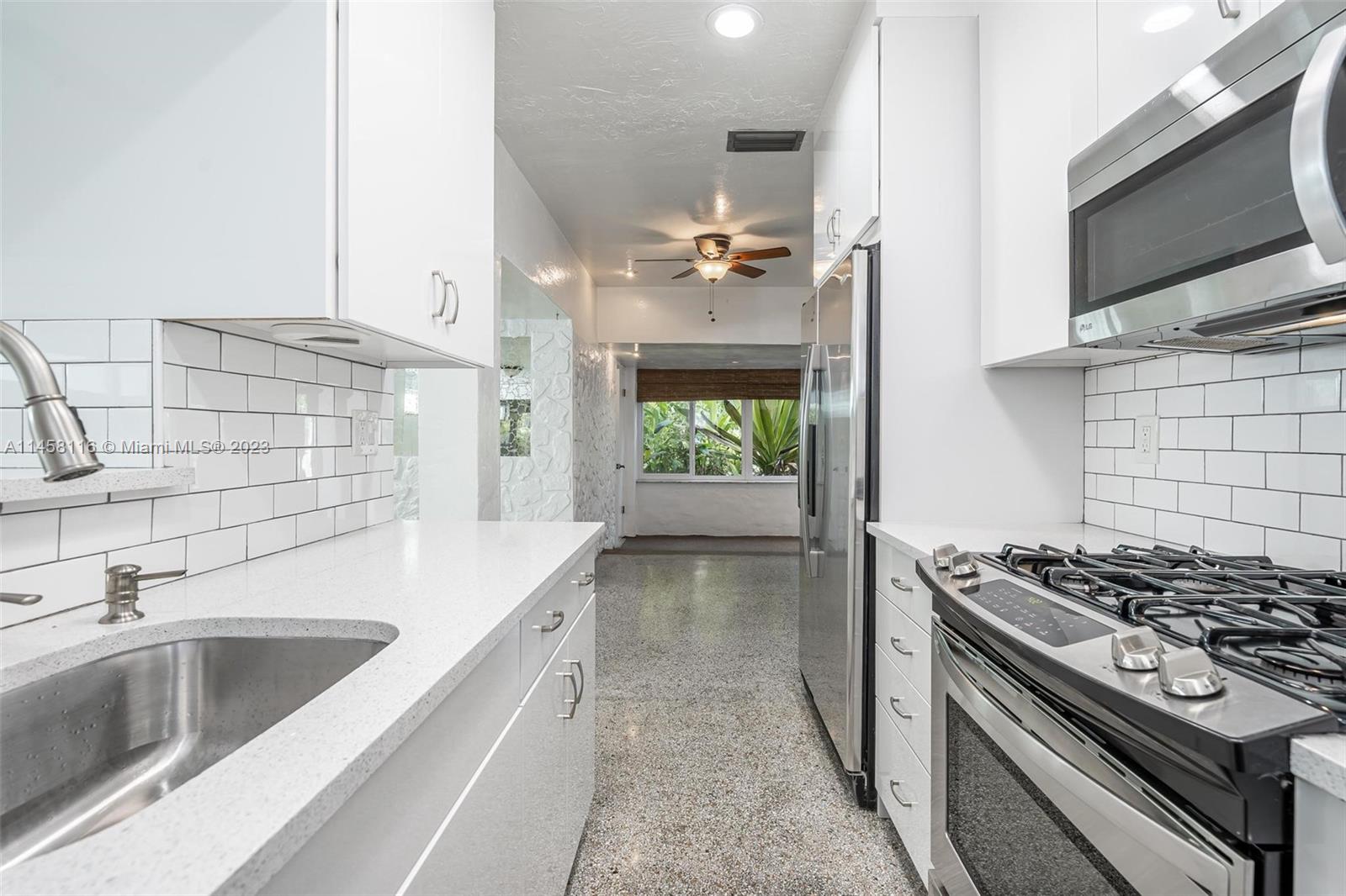 Mid century tropical oasis conveniently located in the midst of the city of North Miami Beach. 2 bedroom, 1 bathroom, plus den, bonus room, front porch entry, and screen porch. New kitchen and bathroom, impact windows and doors, central A/C. Two-car paved driveway, fenced yard, low maintenance heated dipping pool, outdoor shed storage, peaceful yard filled with lush tropical landscaping and fruit trees. Minutes to highways, beaches, shopping, airports, Aventura Mall, and a wide variety of restaurants and markets. Where the living is easy!