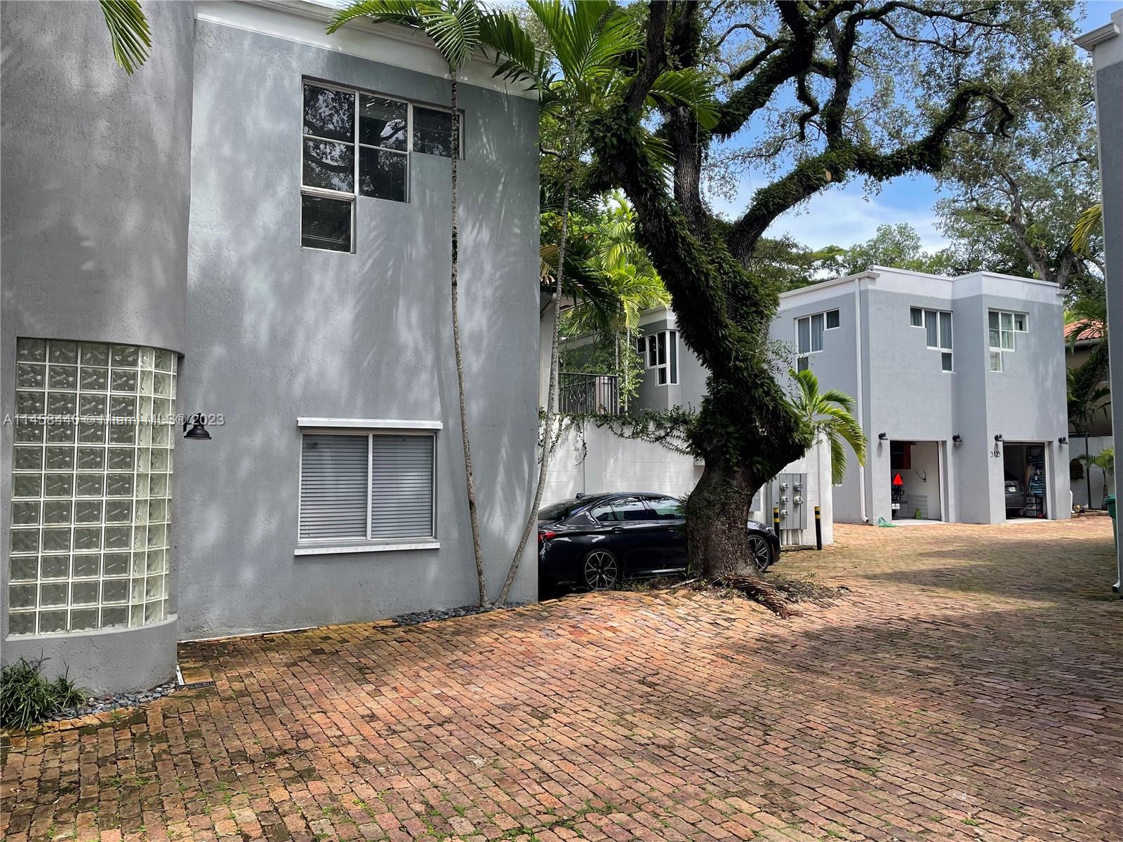 "Free Standing" town home with three bedrooms, two and a half bath in a gated complex of nine units. Just two blocks from Downtown Coconut Grove. Open floor plan. High ceilings both on the first and the second floor. Lots of natural light through out the day. This unit is detached from other units and has extra windows. Two assigned parking spaces. Spacious primary bedroom with walk in closet. Primary bathroom with double sink. Two more nice size bedrooms, overlooking the mature oak canopy. Private, bricked patio, excellent for entertaining and quiet times. Please see the attached roof report for more info.