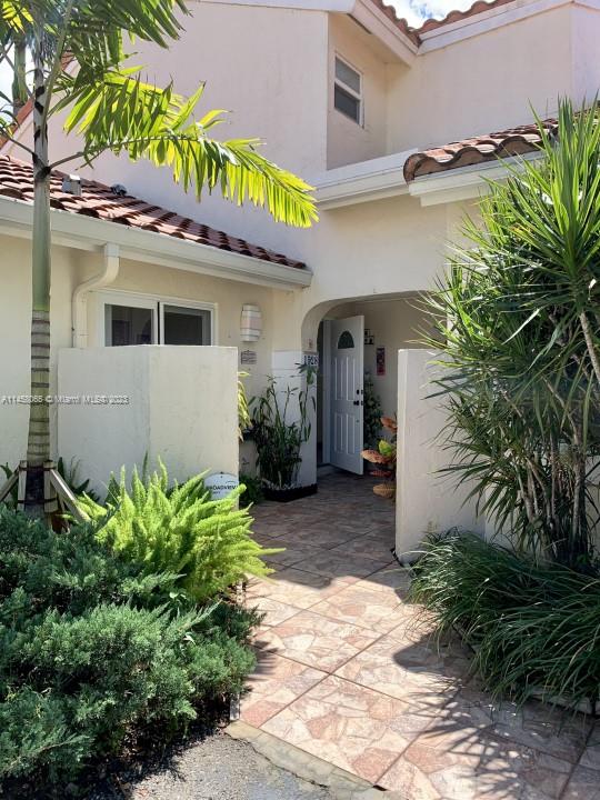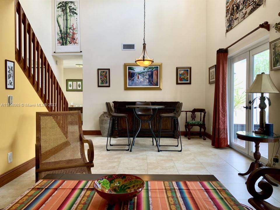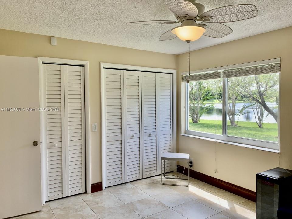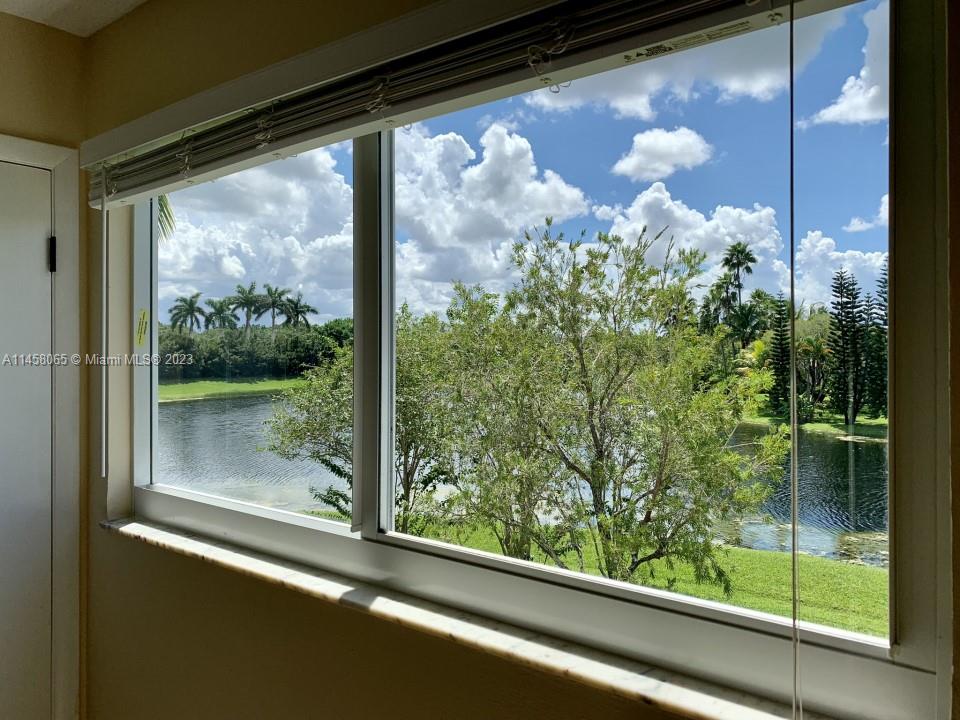 Home being sold "As Is". Expansive water views!! Vaulted Ceiling. 2/2 Town House. Split floor plan- 2nd floor Master Suite w/ walk-in closet, 1st floor on-suite with 2 large closets. Open loft great for office or media space. Double French Doors leading to oversized screened in patio, perfect for entertaining. Kitchen with custom wood cabinetry and granite countertops. Breakfast nook with sliding glass doors. Hurricane impact windows and doors. Attached outside storage room. Community pool. What I love about this home: Tranquil Garden with Amazing water views!