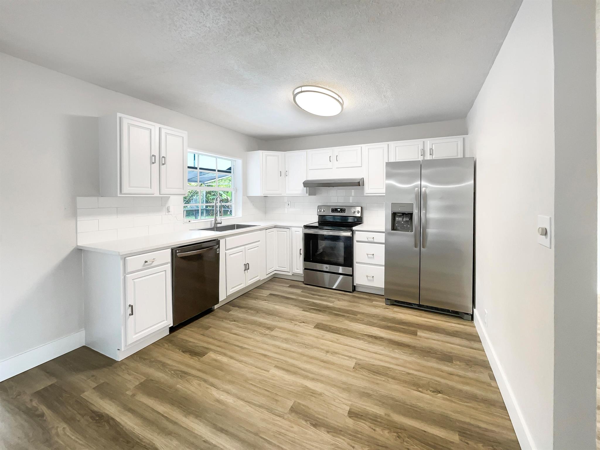 Welcome to your new home! This property offers a natural color palette throughout, fresh interior and exterior paint, and new flooring throughout the home. The kitchen features a nice backsplash, and the primary bathroom offers double sinks and good under sink storage. The master bedroom has a walk in closet, and there are other rooms for flexible living space. The backyard is fenced in, and there is a private in ground pool and a covered sitting area. Enjoy the privacy of your own backyard oasis! This home has all the features you need for comfortable living. Come take a look and make it your own!