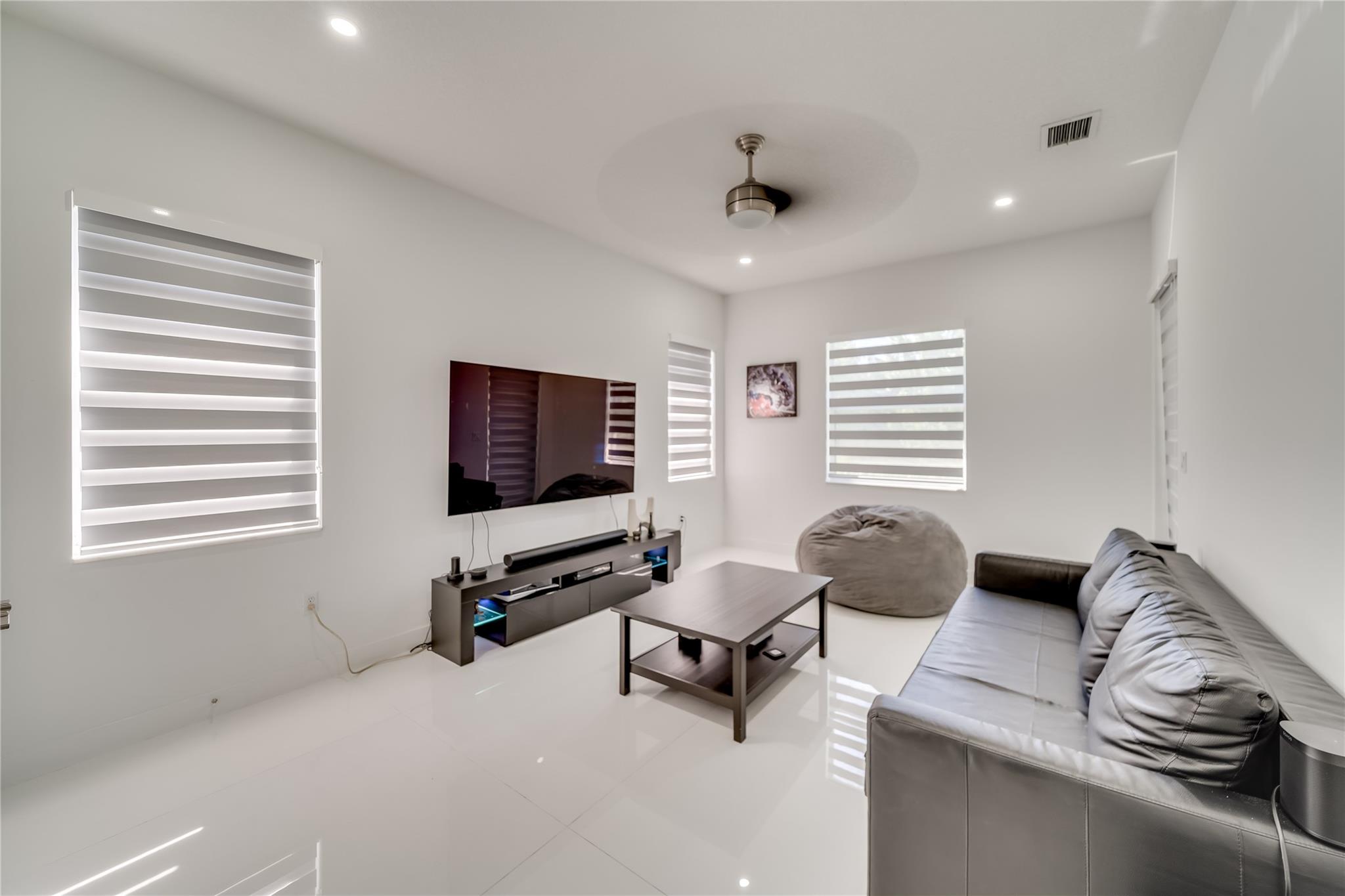 Own in one of South Florida's most exclusive developments, Sierra Ranches. Lennar built 79 homes in this exclusive community. You will find a very modern interior design w/ porcelain flooring throughout, upscale finishes & open floor plan with tons of natural light. The kitchen is a chef's dream w/ ample cabinet space, walk in pantry, oversized island, top of the line stainless appliances and quartz. There are 5 bedrooms all with full baths & walk-in closets + a media room & den. The yard space has a covered terrace for entertaining & there is plenty of room for a large pool. The home is situated perfectly on the lot with plenty of space in the front where you will find an oversized driveway with a split 3 car garage. Just bring your toothbrush!