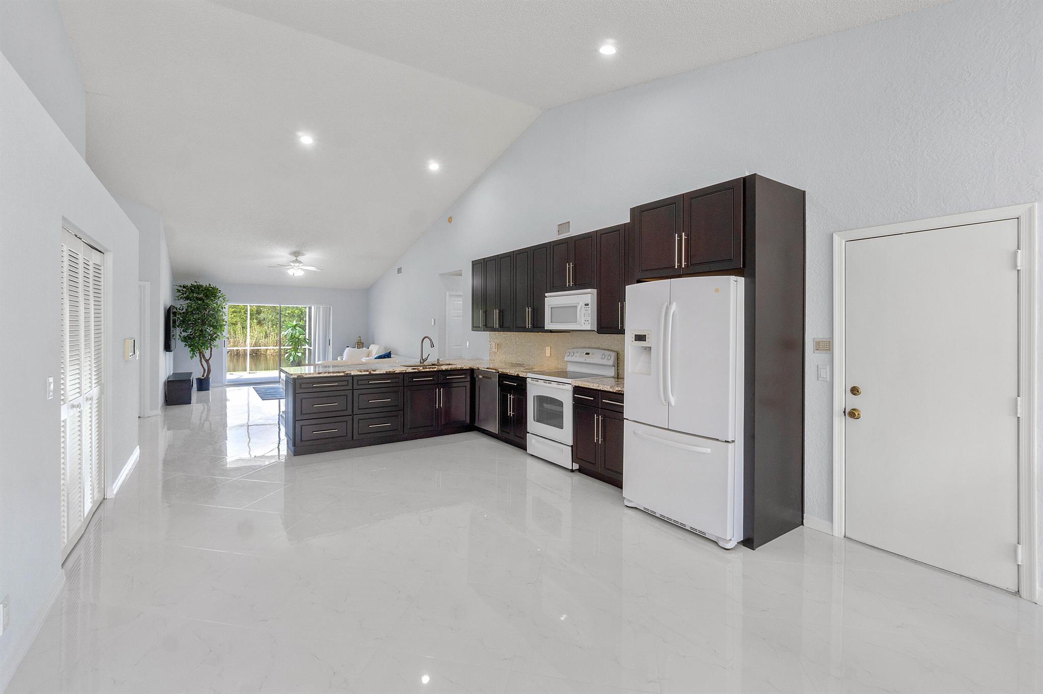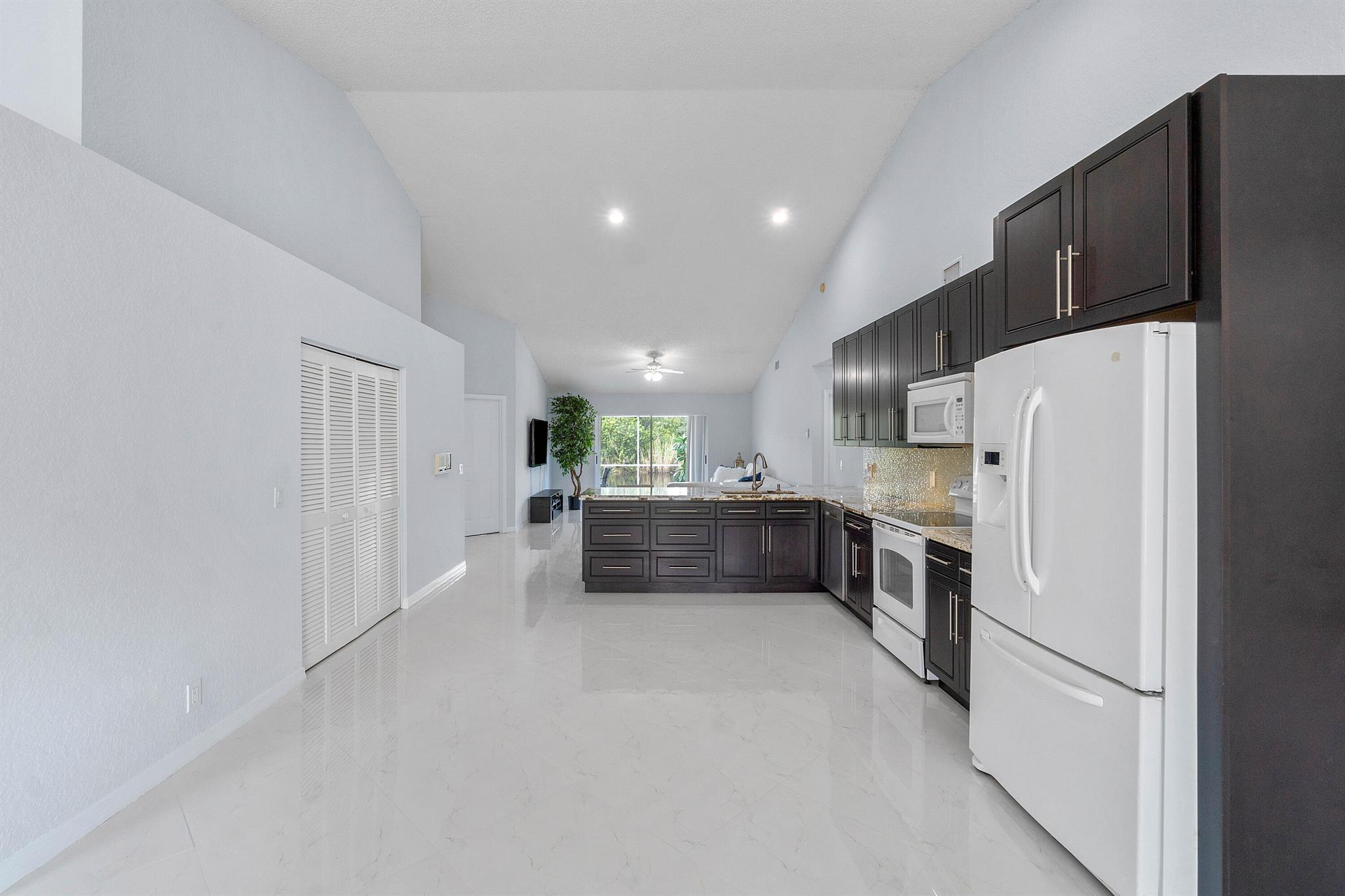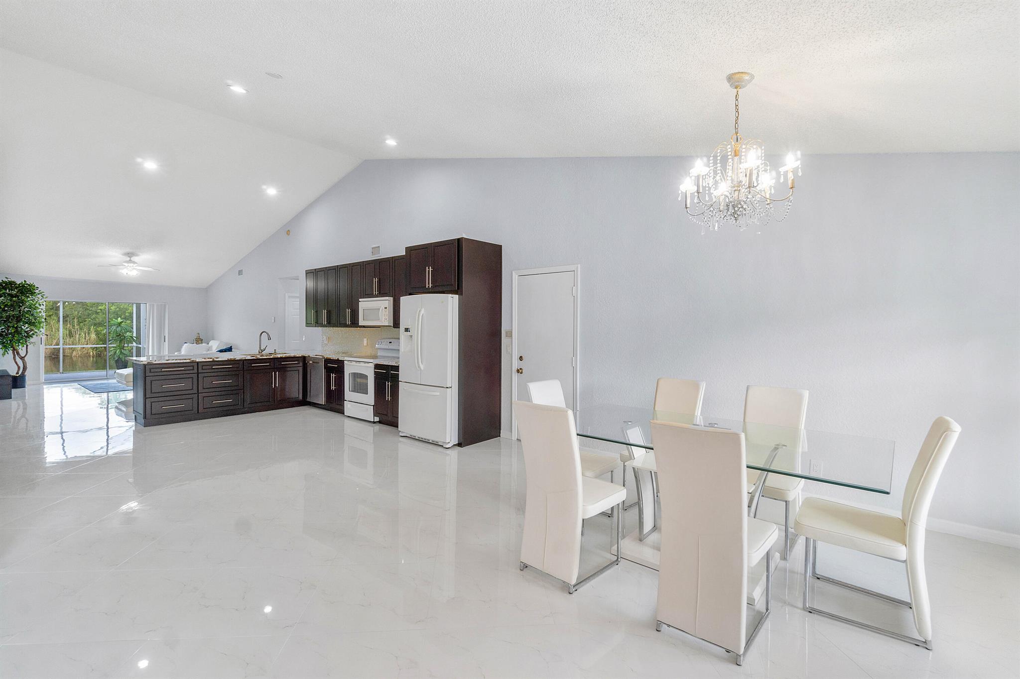Come see this beautiful 3/2 Ranch with a serene private lake view which backs up to a nature preserve in the highly regarded community of Boca Chase in West Boca Raton. This 1920 sq ft contemporary home features an open floor plan from the minute you walk thru the front door. The home features an oversized eat in kitchen with exotic granite countertops, decorative glass backsplash and soft close cherry wood cabinetry, 24x24 Italian porcelain tile laid on a diagonal throughout the house, 2021 A/C, 2019 HWH, new carpet in bedrooms, updated master bathroom with vinyl flooring, new washer/dryer. Freshly painted inside and complete accordion shutters. Boca Chase community has 2 pools, playground, tennis, basketball and pickleball courts and a very low HOA. A+ rated schools. DONT MISS THIS ONE.