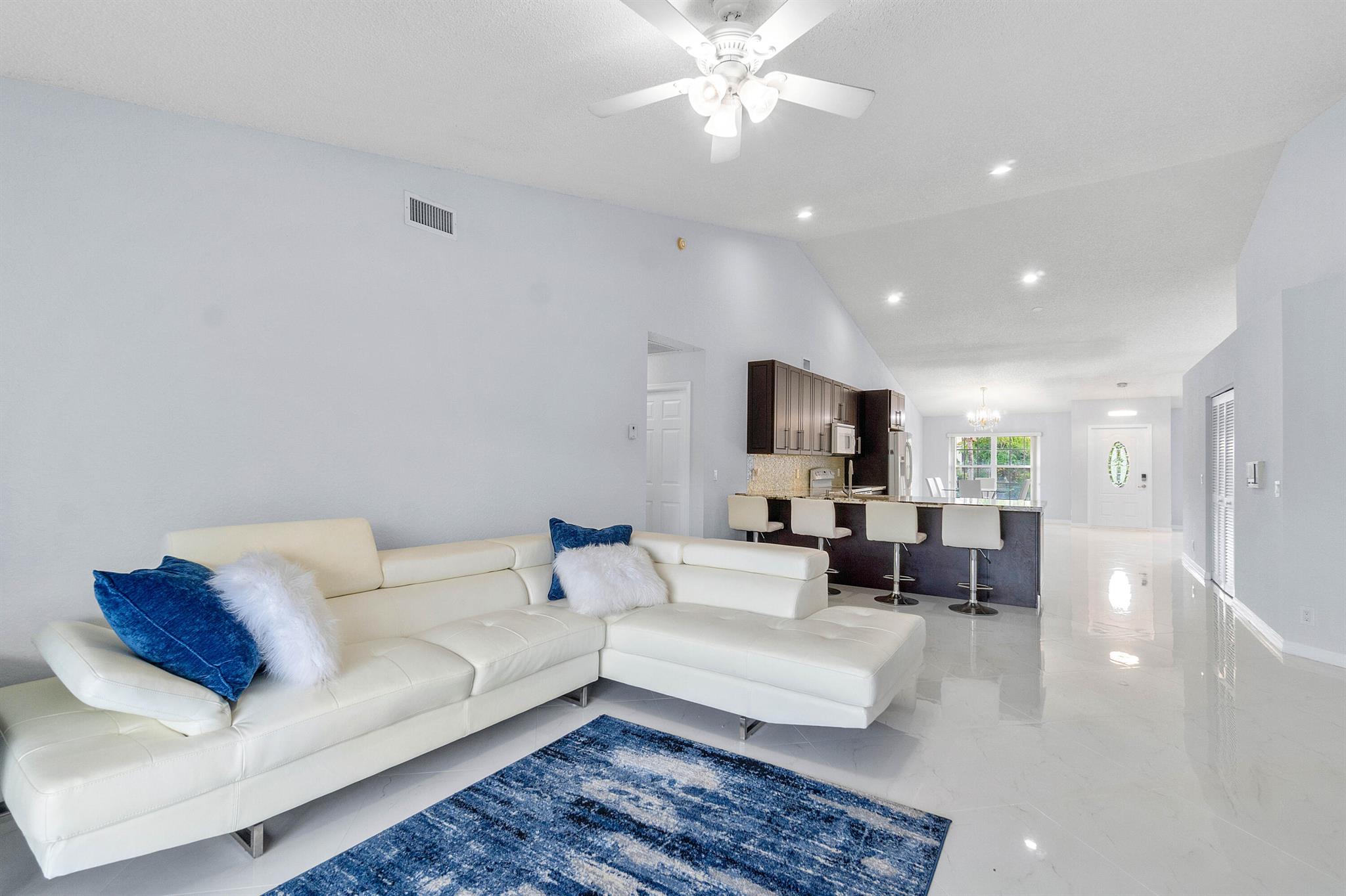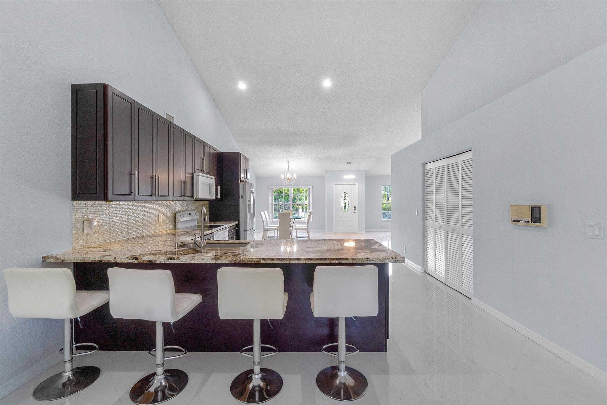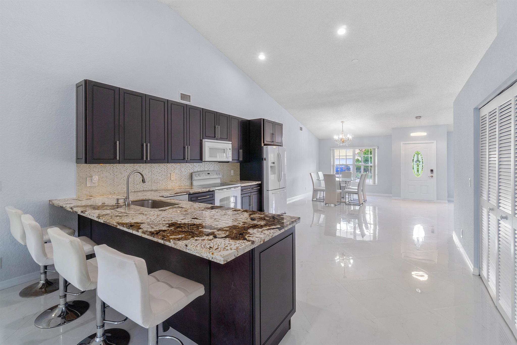 Come see this beautiful 3/2 Ranch with a serene private lake view which backs up to a nature preserve in the highly regarded community of Boca Chase in West Boca Raton. This 1920 sq ft contemporary home features an open floor plan from the minute you walk thru the front door. The home features an oversized eat in kitchen with exotic granite countertops, decorative glass backsplash and soft close cherry wood cabinetry, 24x24 Italian porcelain tile laid on a diagonal throughout the house, 2021 A/C, 2019 HWH, new carpet in bedrooms, updated master bathroom with vinyl flooring, new washer/dryer. Freshly painted inside and complete accordion shutters. Boca Chase community has 2 pools, playground, tennis, basketball and pickleball courts and a very low HOA. A+ rated schools. DONT MISS THIS ONE.