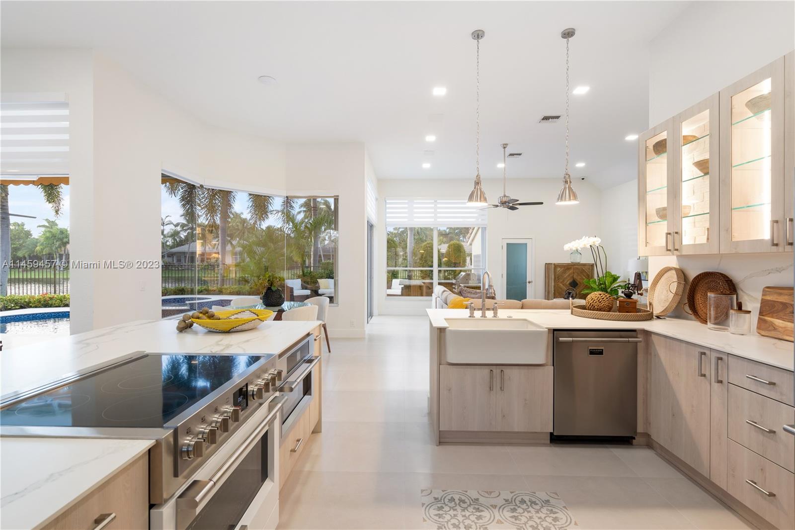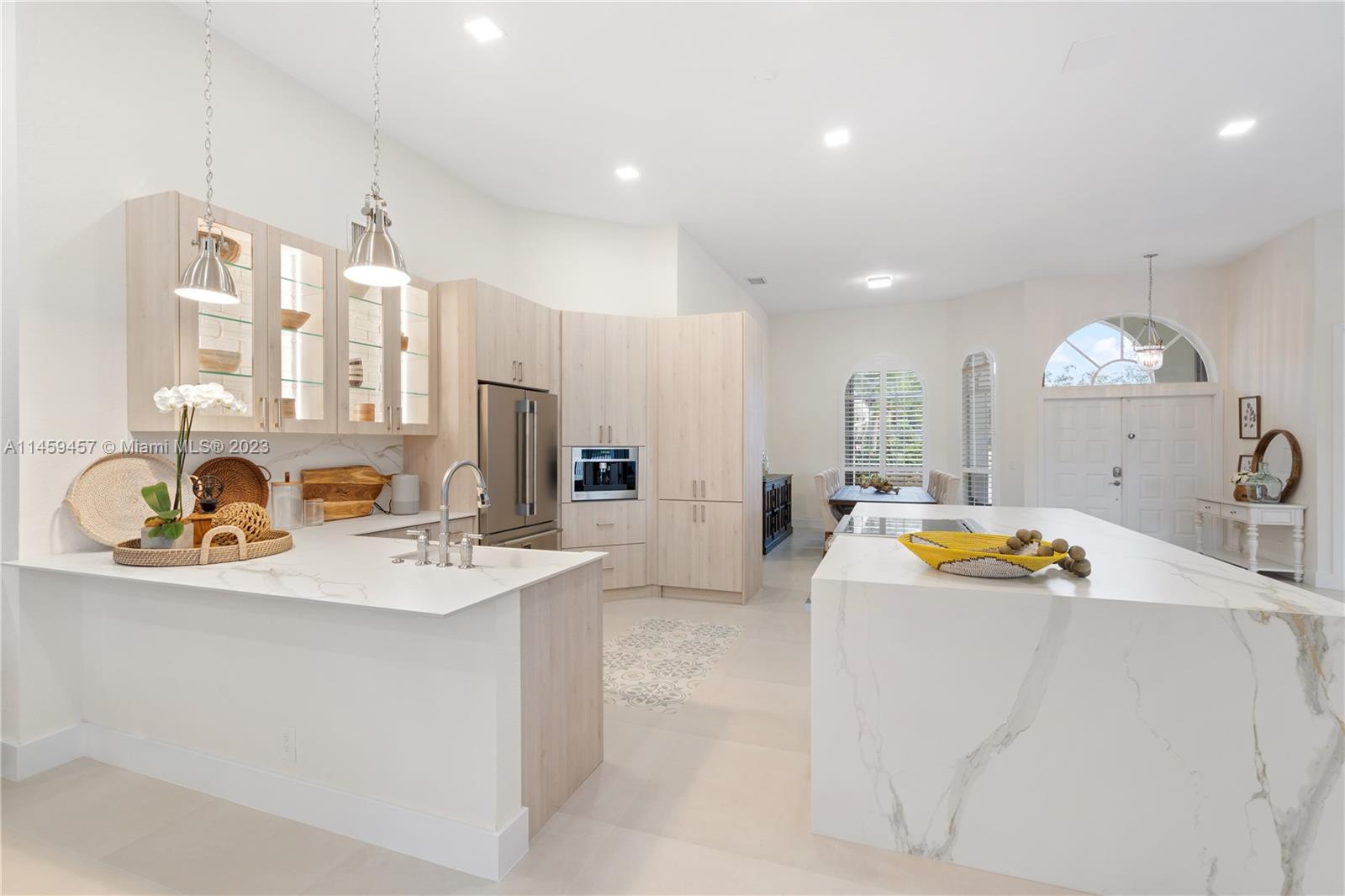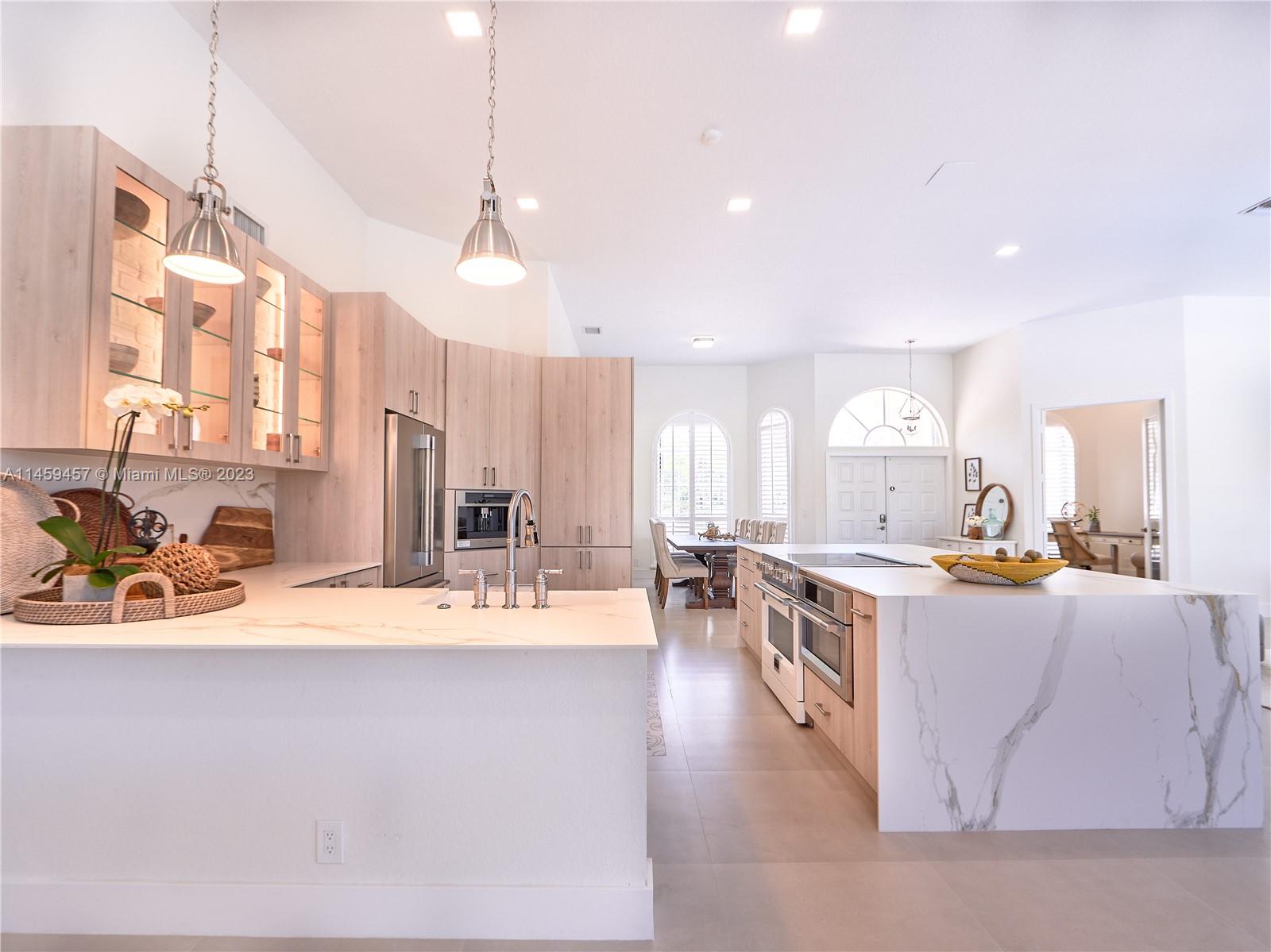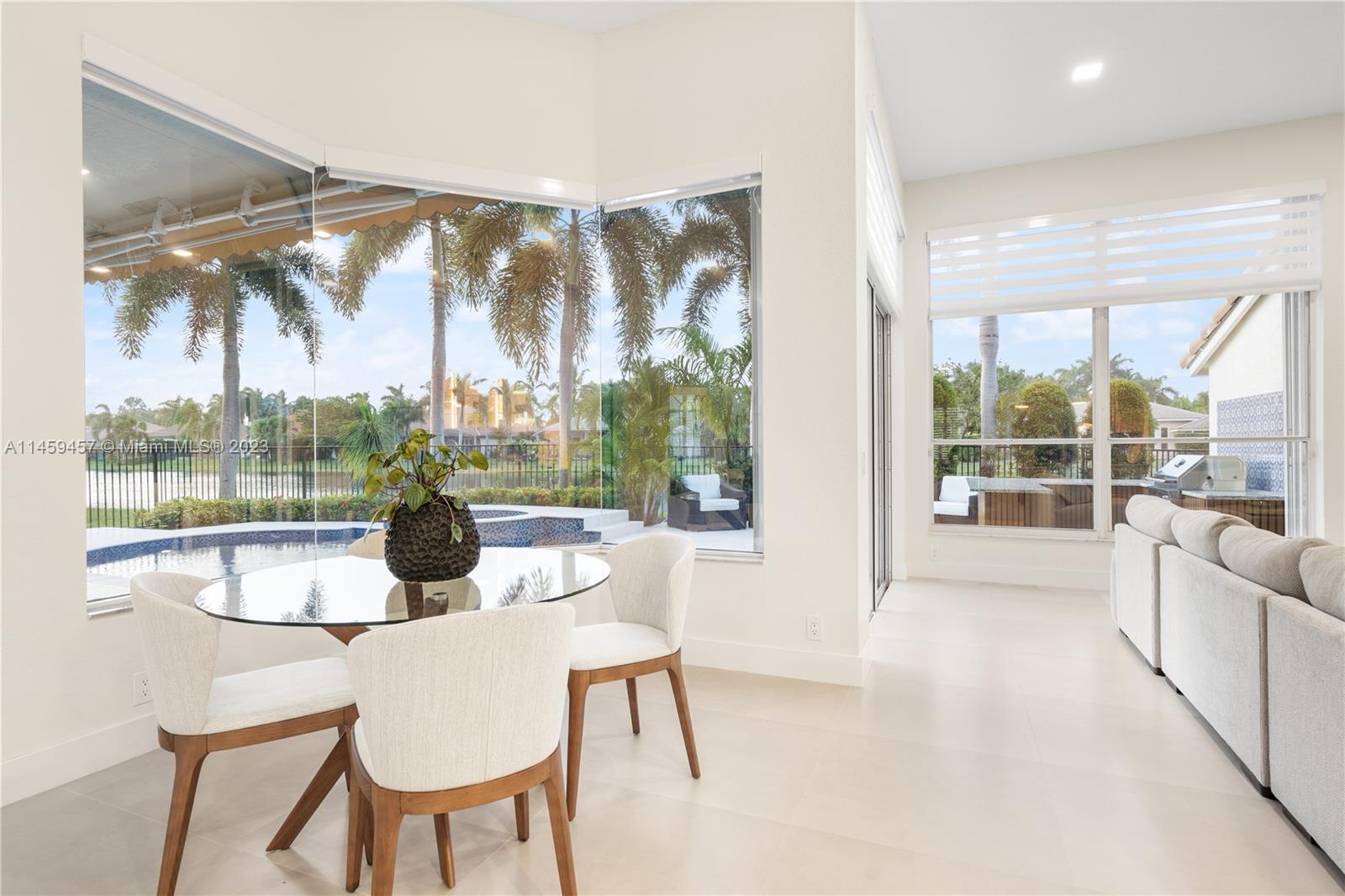 Fully Renovated modern smart home w/a twist of Cartagena remembrance; seamlessly blends cutting edge technology w/the vibrant spirit. From the moment you step inside, you'll be transported to a world where contemporary luxury meets the rich cultural heritage. The home's exterior features a sleek, minimalist design w/clean lines & a predominantly white facade. Upon entering, you are greeted by a grand foyer illuminated by state of the art Lutron LED lighting. The living spaces are open w/windows that offer panoramic lake views. Smart windows treatment, Sonos sound & cameras. The kitchen is a culinary masterpiece w/top of the line Italian appliances,wine dispenser & cooler. Vibrant white rustic mosaic wall accent & unique bathrooms title & designs. Summer Kitchen & mosaic pool and Jacuzzi.