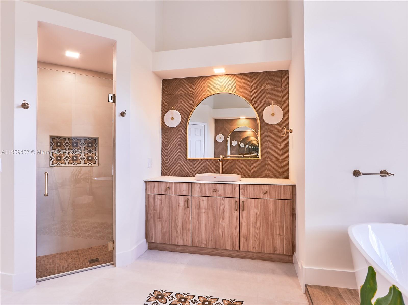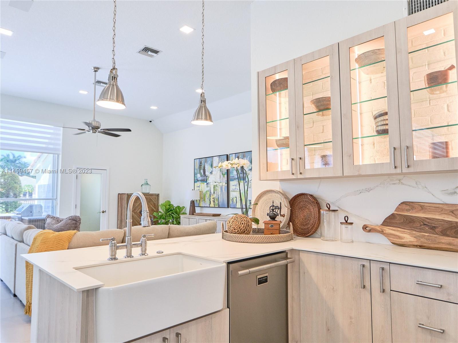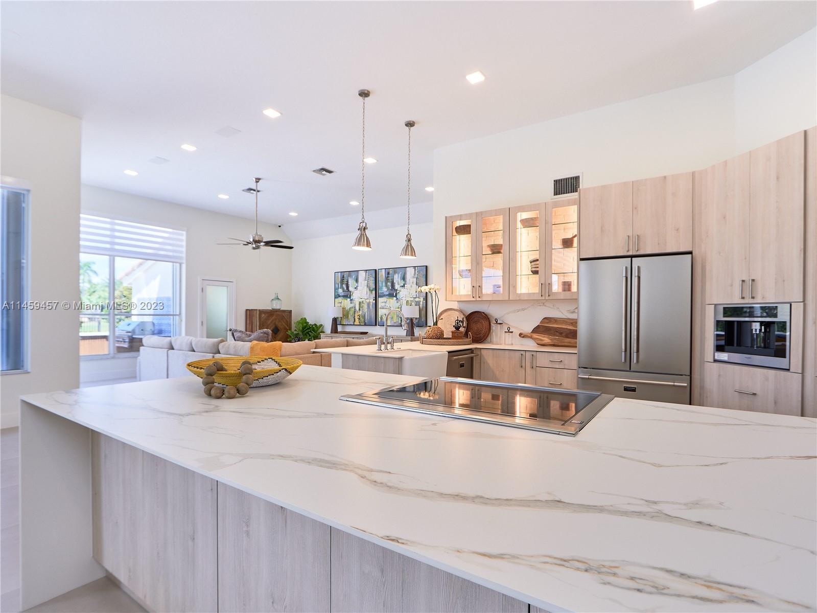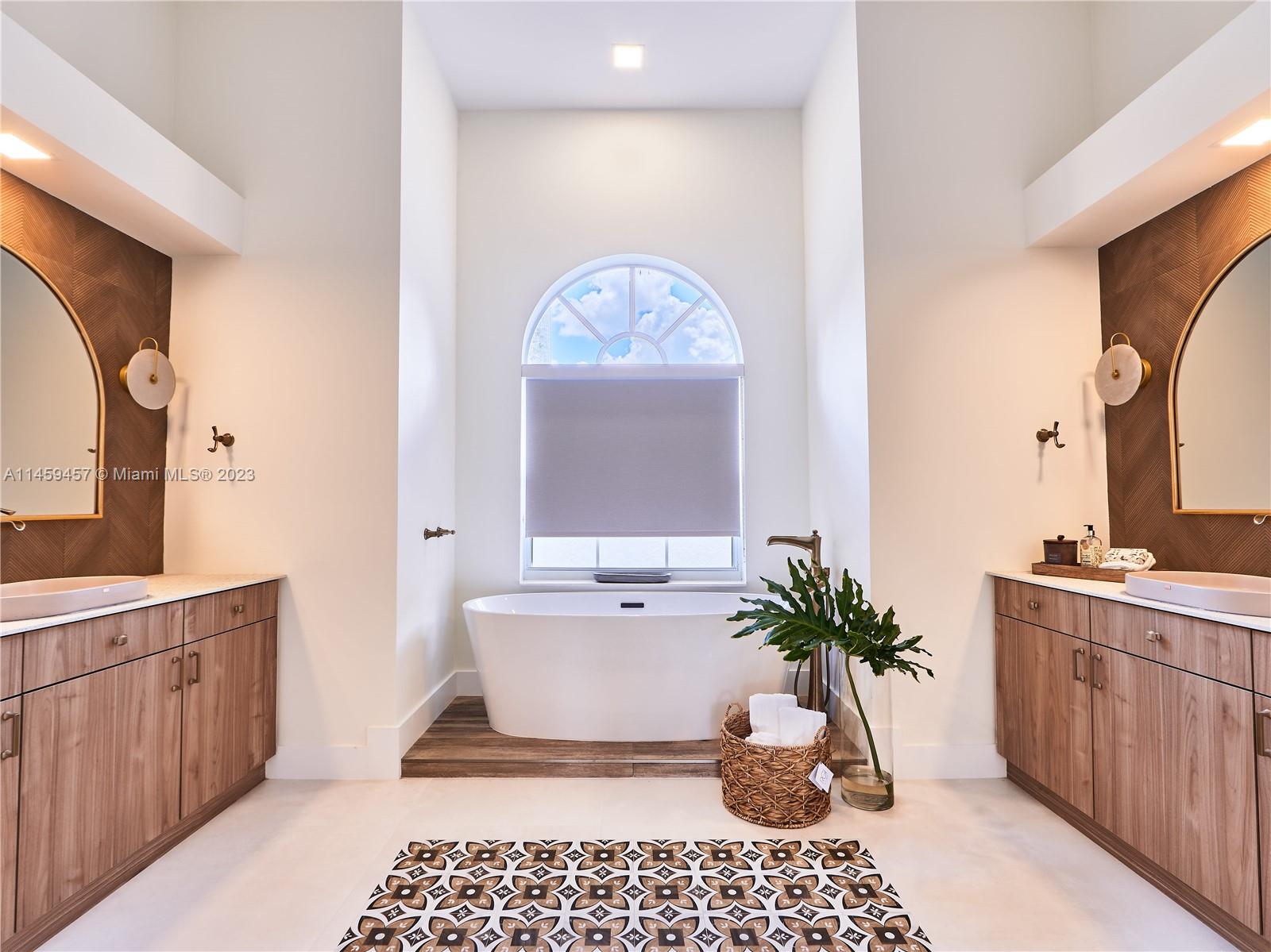 Fully Renovated modern smart home w/a twist of Cartagena remembrance; seamlessly blends cutting edge technology w/the vibrant spirit. From the moment you step inside, you'll be transported to a world where contemporary luxury meets the rich cultural heritage. The home's exterior features a sleek, minimalist design w/clean lines & a predominantly white facade. Upon entering, you are greeted by a grand foyer illuminated by state of the art Lutron LED lighting. The living spaces are open w/windows that offer panoramic lake views. Smart windows treatment, Sonos sound & cameras. The kitchen is a culinary masterpiece w/top of the line Italian appliances,wine dispenser & cooler. Vibrant white rustic mosaic wall accent & unique bathrooms title & designs. Summer Kitchen & mosaic pool and Jacuzzi.