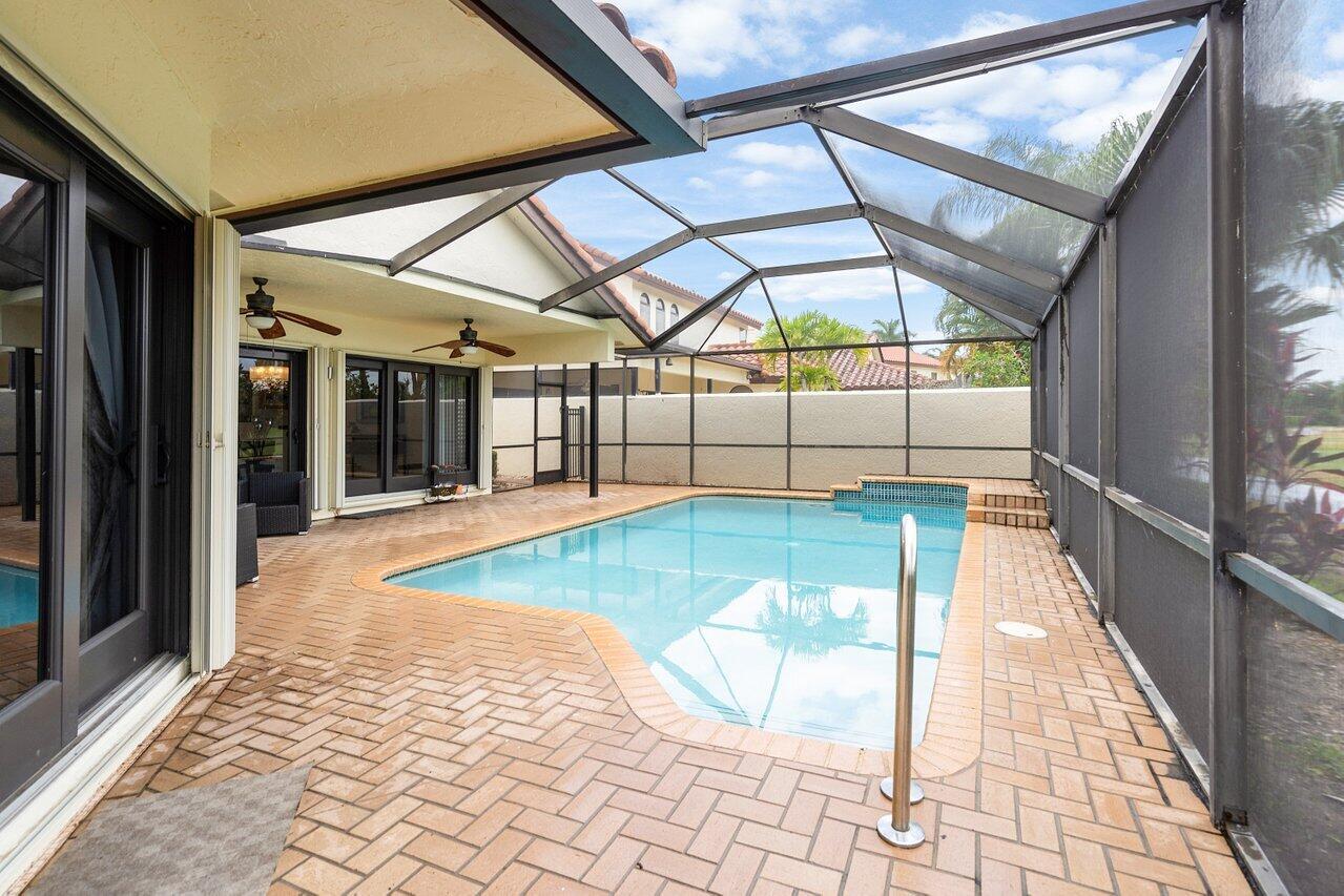 This remodeled Palmera model overlooks both the lake & golf course in beautiful Boca Pointe, a gorgeous membership optional country club gated community with many amenities. Some great features of this freshly painted home include neutral tile throughout, gorgeous remodeled kitchen featuring white wood cabinetry, new backsplash & quartzite countertops, stainless appliances, new lighting, newer A/C, new alarm system & new aluminum gates in both the front & back . The open floor plan lends itself to modern living & boasts views of the pool, golf course & lake from the living & primary BR areas. The 3rd BR is open as a den/studio/office but could easily be converted. The pool has a new heater. Enjoy the security & serenity of a private club without the fees.