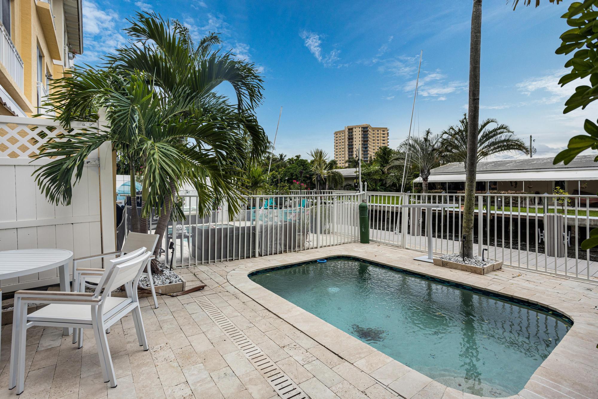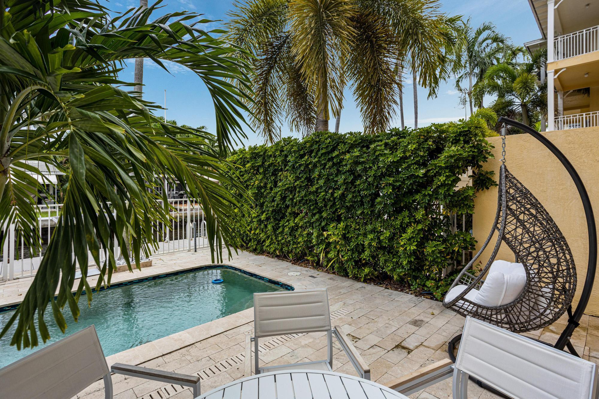 Discover luxurious waterfront living in this exceptional, fully-furnished townhouse situated just blocks from the ocean. This property showcases a private plunge pool and a 39' assigned boat dock, catering to boating enthusiasts. Inside, view three bedrooms and a versatile den that can easily be utilized as a fourth bedroom, along with four well-appointed bathrooms. The gourmet open kitchen, central vacuum system, and hurricane impact doors and windows enhance the home's convenience and style. Additionally, two dedicated parking spots offer added convenience for vehicle owners. Spanning three levels, the townhome is equipped with an elevator, ensuring effortless access between floors and epitomizing stylish accessibility. Welcome to your dream residence, where luxury meets coastal charm.