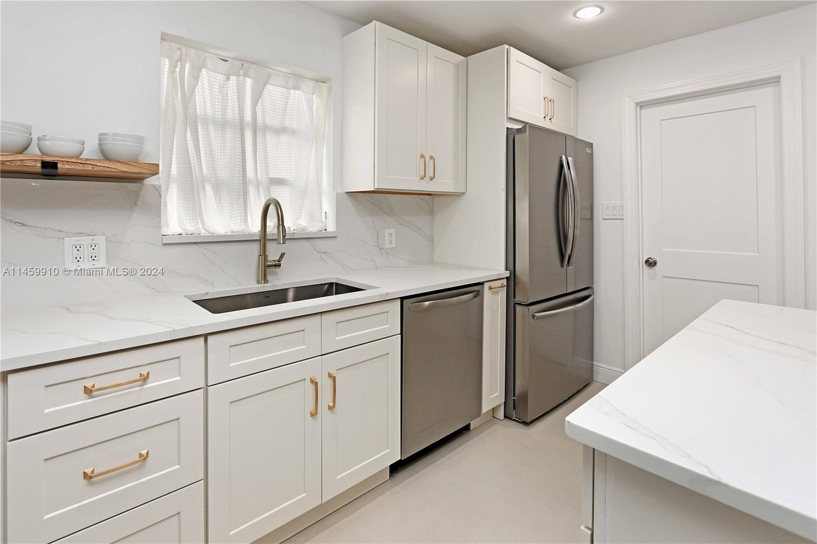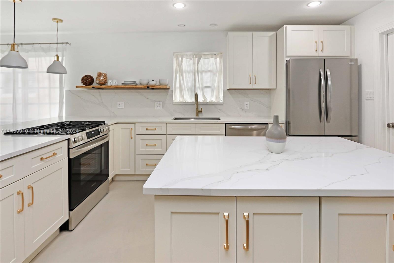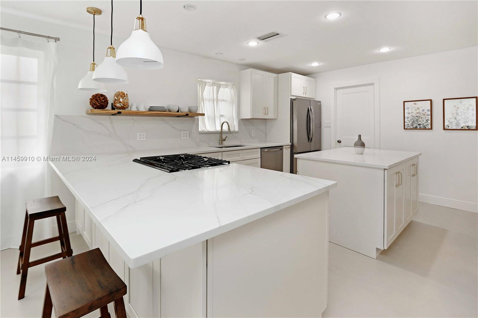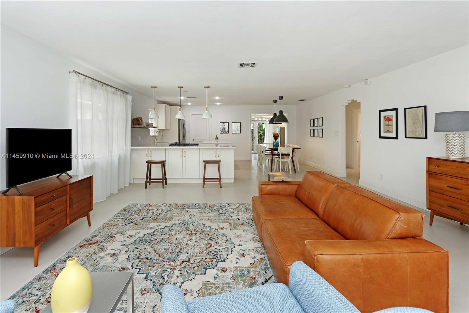 Move in Ready! Beautiful 2BR 2BA + 1 Car Garage, with a great open-concept design. Light & Bright. Remodeled, New Concrete Floors throughout. Fantastic New Chefs Kitchen with Gas Cooking, Center Island, Breakfast counter, Quartz countertops, lot's of space, great for family gatherings/entertaining. Seperate laundry room, Tankless water heater, Hurricane protection/Accordion Shutters. Private fenced in Tropical backyard with a modern style Headed Saltwater Pool and it comes with an outdoor shower. This home is located within the desirable Hollywood Lakes, 2 blocks from the Lake and near the Beaches and Boardwalk, Golf Course, Hollywood Downtown, Casinos & Shopping.