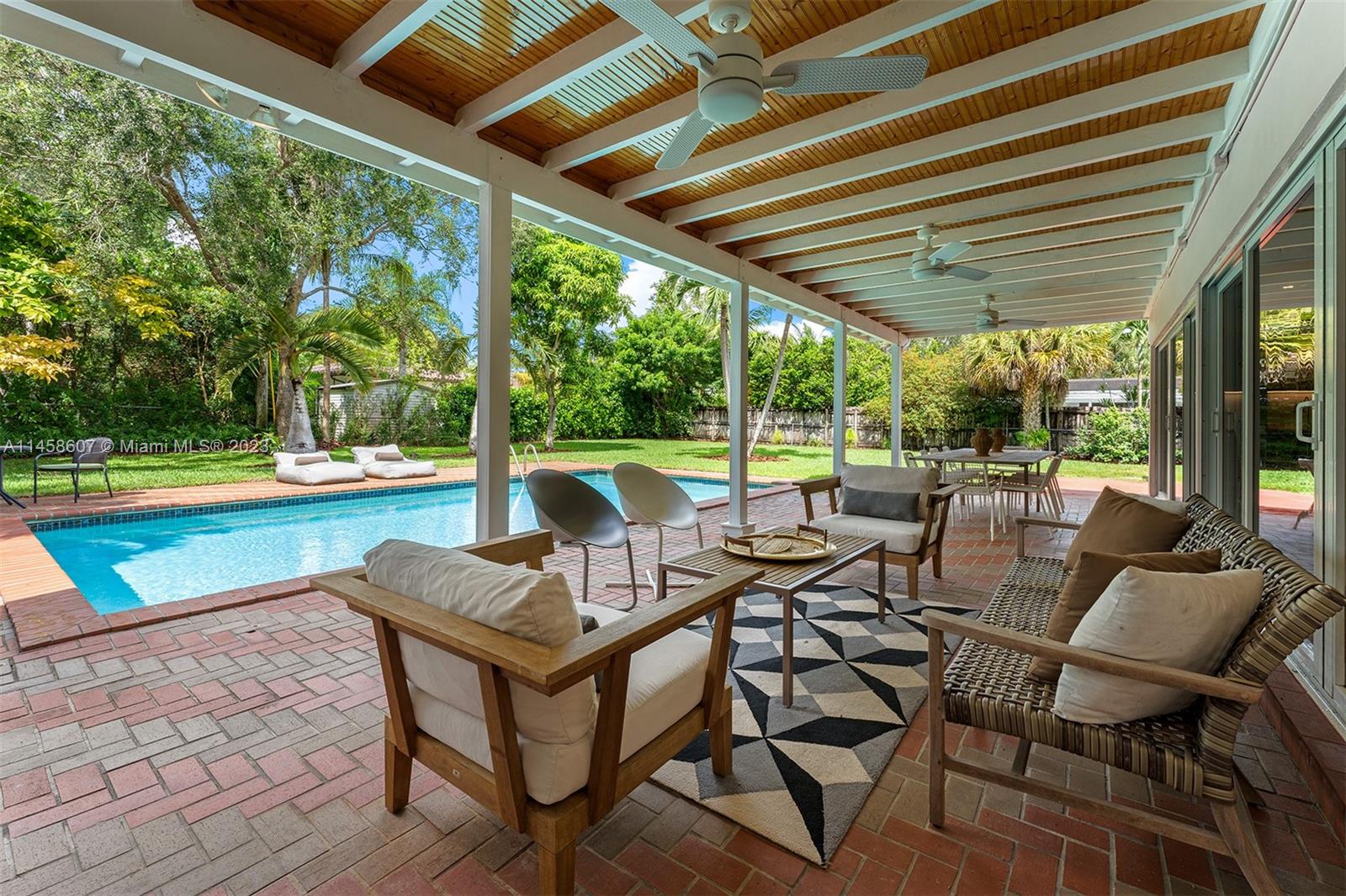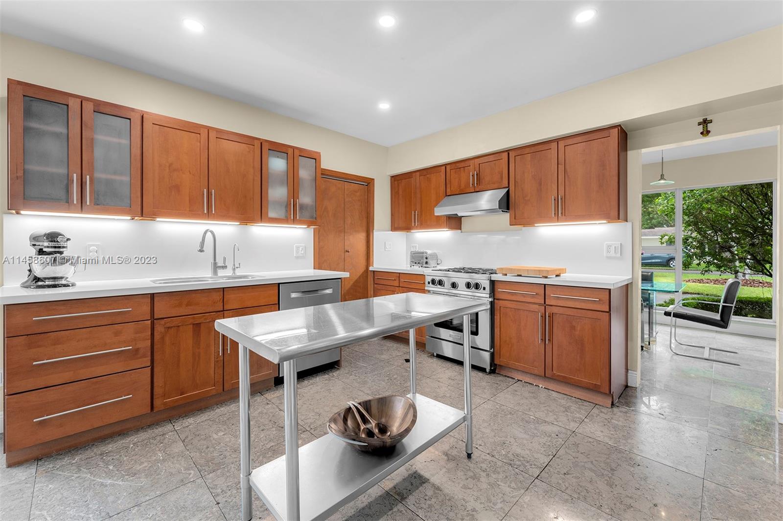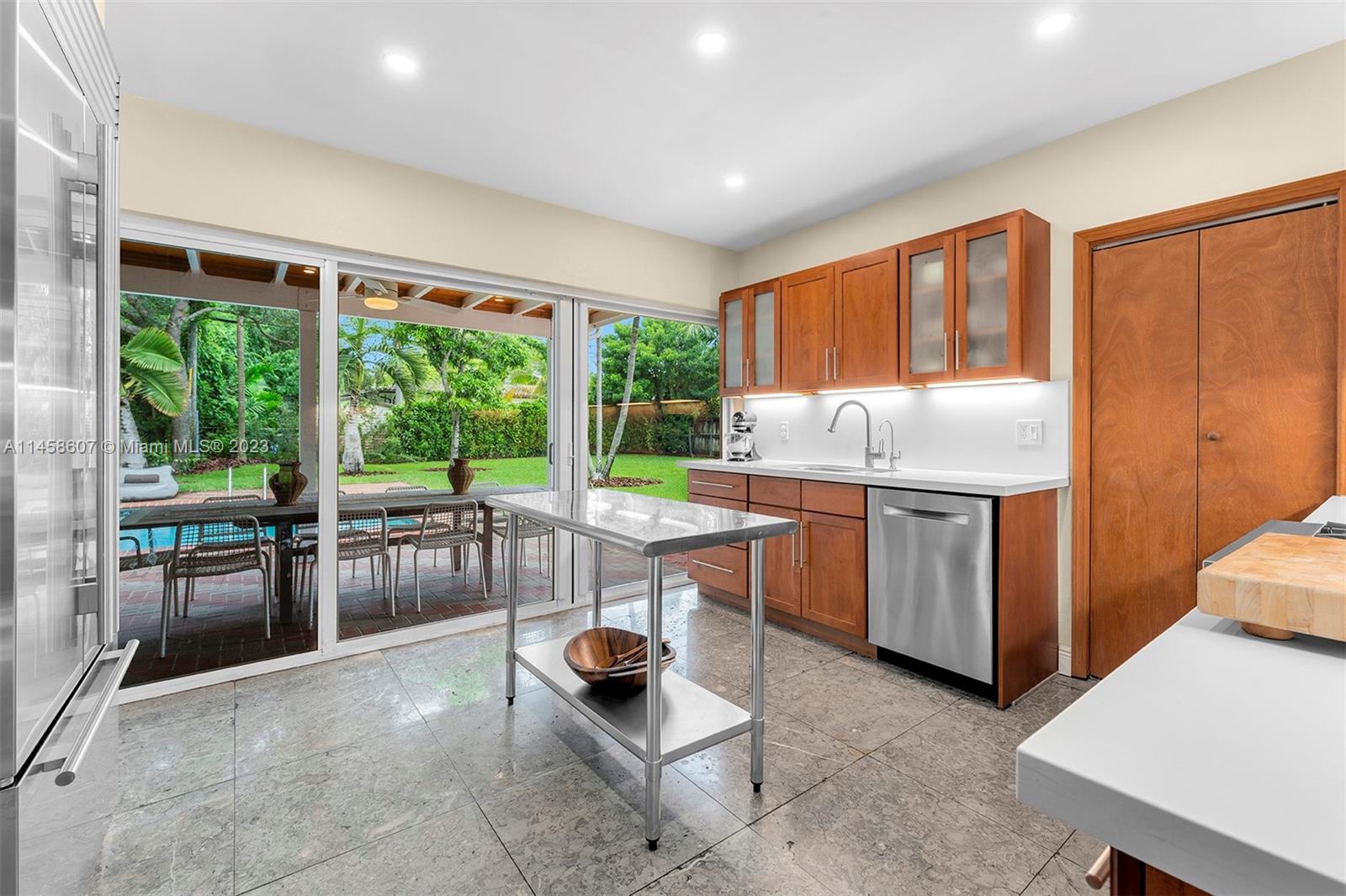 Spacious 3-bed, 3-bath + Den pool home in Pinecrest. Elegant marble floors adorn living, dining, and kitchen areas. Remodeled in European style with pristine white quartz counters, new stainless-steel appliances, including a sub-zero fridge. Abundant natural light streams through hurricane impact windows and doors. The fenced backyard boasts an expansive open patio that overlooks a captivating pool on over 1/3 of an acre. Inside, a family rm offers ample space for relaxation. This prime location grants access to top-tier schools, premier shopping destinations, scenic parks, and fine dining. Nestled in one of the most coveted neighborhoods, it provides convenience with proximity to highways, the airport, and beaches. Plus, the property boasts a brand-new metal roof for added peace of mind.