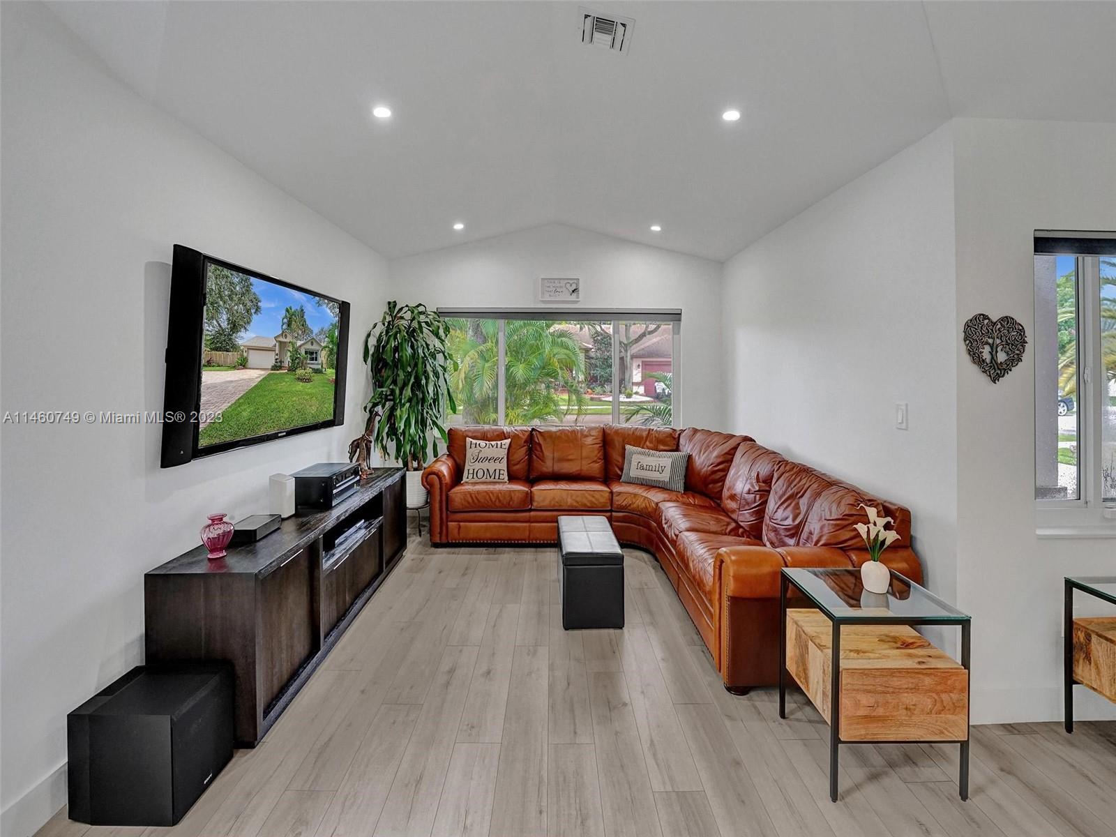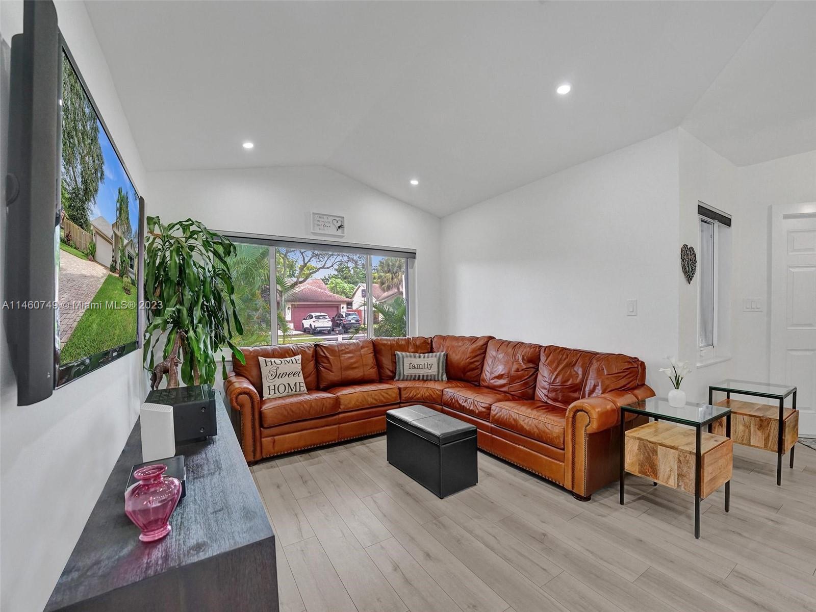 Immaculate and totally remodeled 3 bedroom 2 bathroom single family home in Davie! This is a 10+ home- WOW! Within last 2 years the entire house was remodeled from roof, impact windows and doors, flooring, bathrooms, kitchen, smooth ceilings, appliances, light fixtures and fans, fence, pavers and much more! Enter through the double front doors in a WOW of a home! Lots of natural light, vaulted ceilings HUGE corner lot with room for a pool Paver driveway, lush landscaping and beautiful private backyard perfect for outdoor entertaining. Centrally located in the subdivision of Orange Estates, a non gated cul-de-sac community, with only 30 homes! Hurry this home will not last long! Low HOA fee!