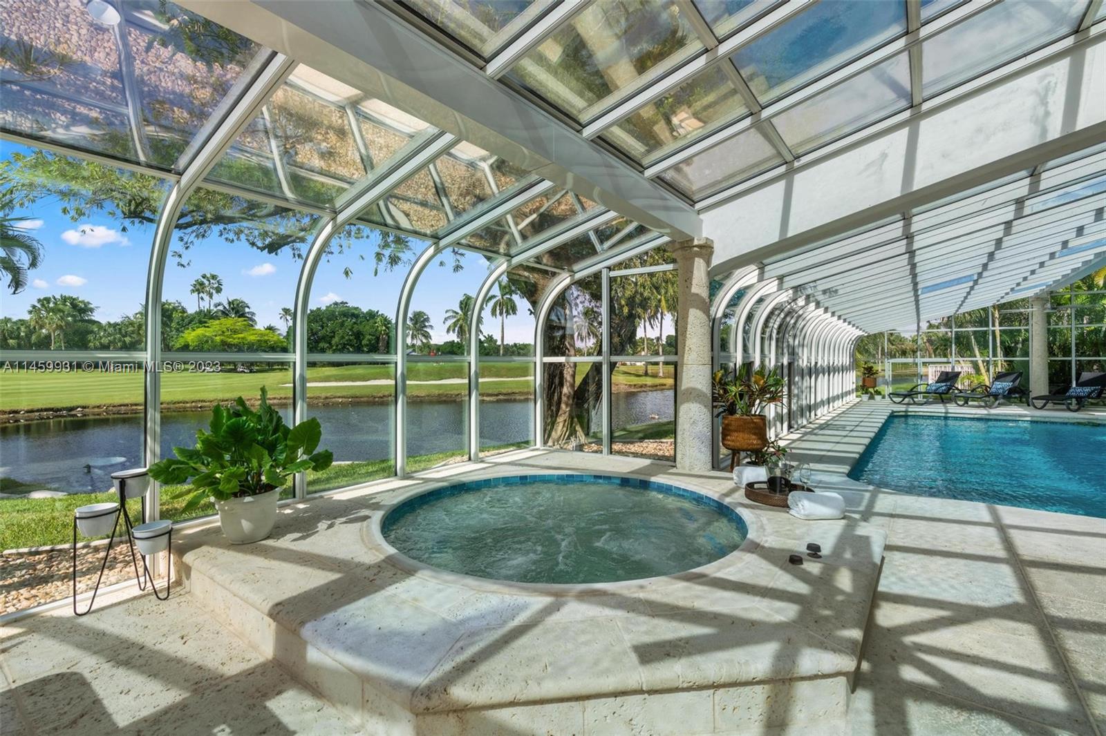 Fabulous and rarely available lakefront golf course property on a quiet cul-de-sac located in the Jacaranda Country Club. The serene backyard oasis overlooks the second hole, provides direct access to the course, and has breathtaking sunset views. The 3000 sf split floor plan includes two large master bedrooms with baths en suite, two more spacious bedrooms, an additional bathroom, a wine room, and a large office. The beautiful living room and kitchen with an oversized quartz island flow into an additional 1,750 sf of entertaining paradise under A/C, which includes a large 14x35ft pool, jacuzzi, and outdoor kitchen. Extra land purchased from golf course. Conveniently located, minutes away from major highways, 10min from Fort Lauderdale Airport and Sawgrass Mall.
