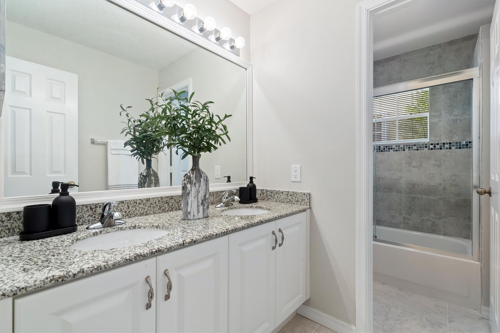 Beautiful, popular Bloomfield model with brand new interior and exterior paint*2017 ROOF*updated baths*remodeled kitchen with granite counters, tile backsplash and drawers*vaulted ceilings enhance the great open flow of living areas*spacious master w/ walk-in closet & vaulted ceiling*accordian shutters*extended screened patio*corner property faces beautifully landscaped park*walk or bike to highly-rated Weston schools, shops*community pool & playground*many landscaped walking areas w/ sidewalks within the Lakes*guard-gated community* see today!