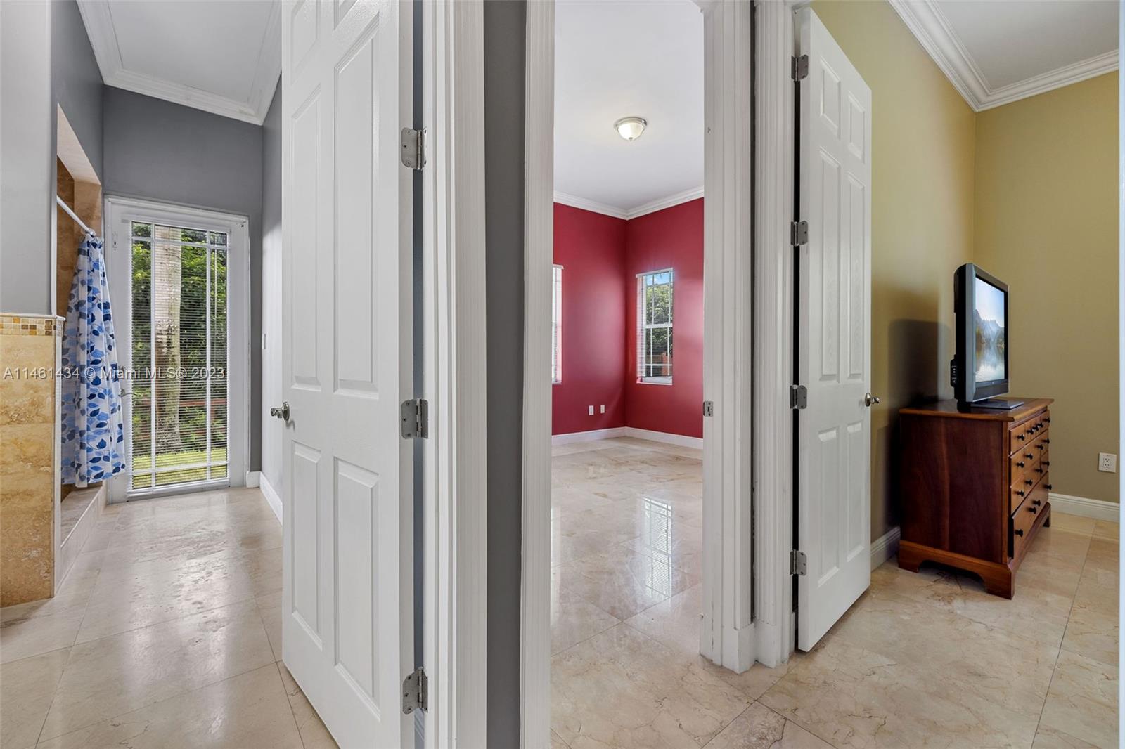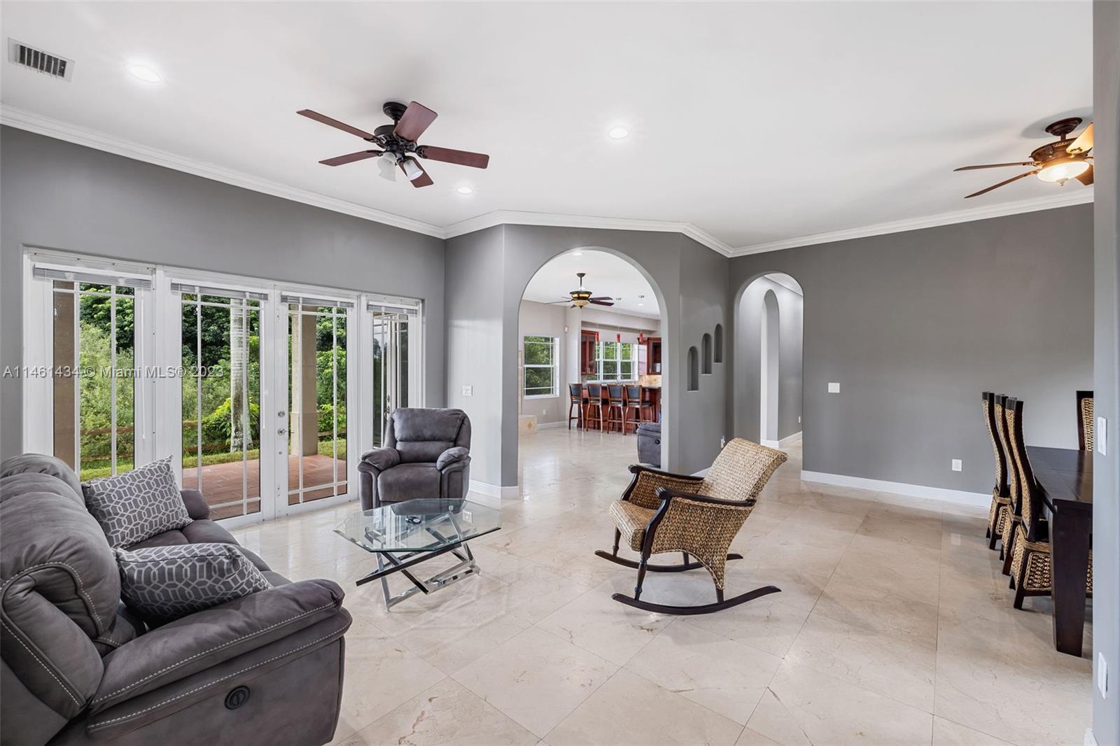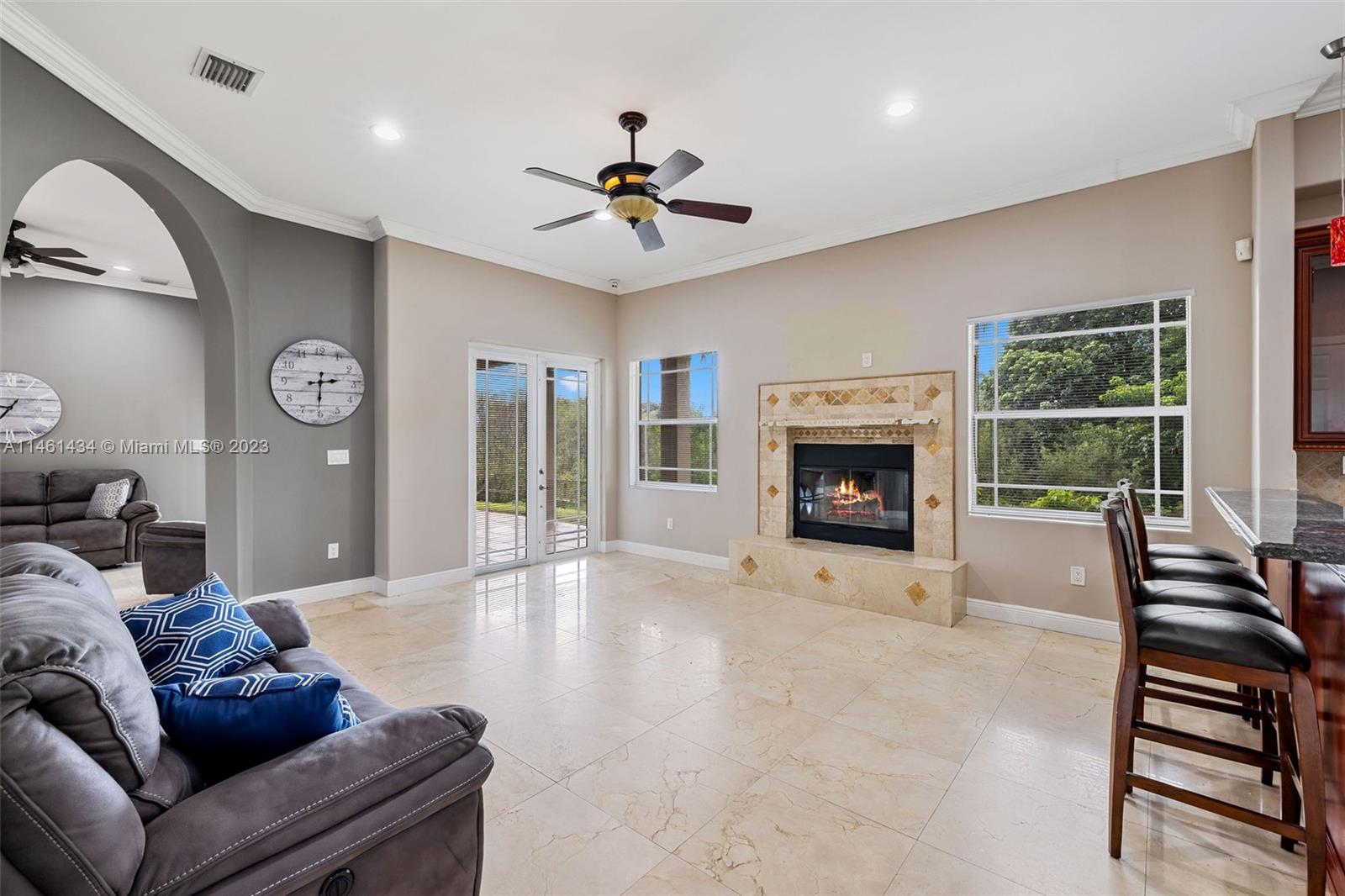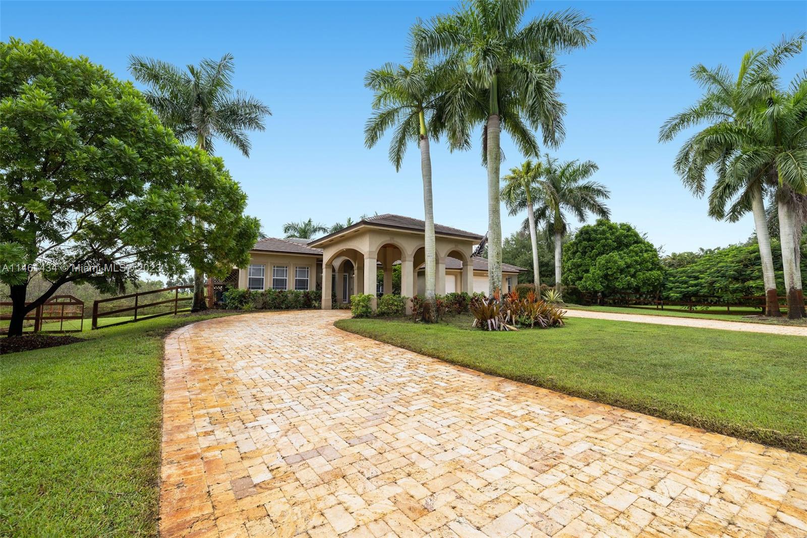 Drive up to this Exquisite Home Featuring never ending brick pavers & a Porte Cochere. Come in thru the Grand Foyer Entrance & Enjoy a Formal Living, Dining & Family Room which has a Real Fireplace. The Size of the Kitchen is Truly a Chef's Dream. All Bedrooms are Large & Wait til you see the Primary Bedroom/Bathroom Suite which Has been tastefully remodeled & it even has a bidet. The entire house has Beautiful Marble Floors giving an Elegant Apeal. Entertain Outdoors in the Oversized Roofed Patio With Gorgeous Wood Ceilings. All this plus more on almost One Acre of Tranquil Living. Park Your Boat or RV; Oh & Don't Forget Your Horse. This is Elegant Country Living at its finest & conveniently located just minutes from city life. Newer Roof replaced in 2019, A/C replaced 2017. No HOA fees!