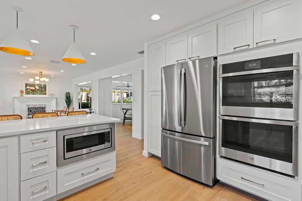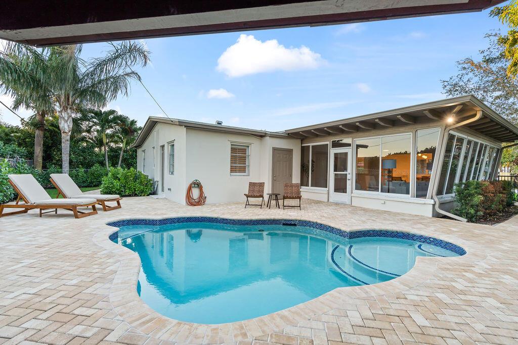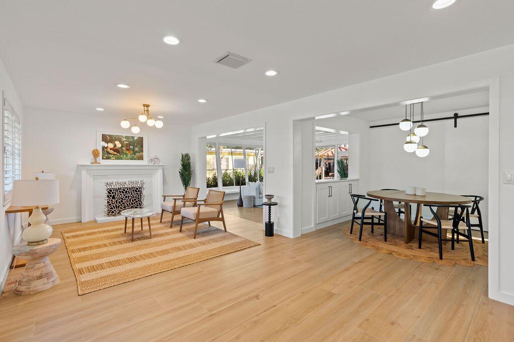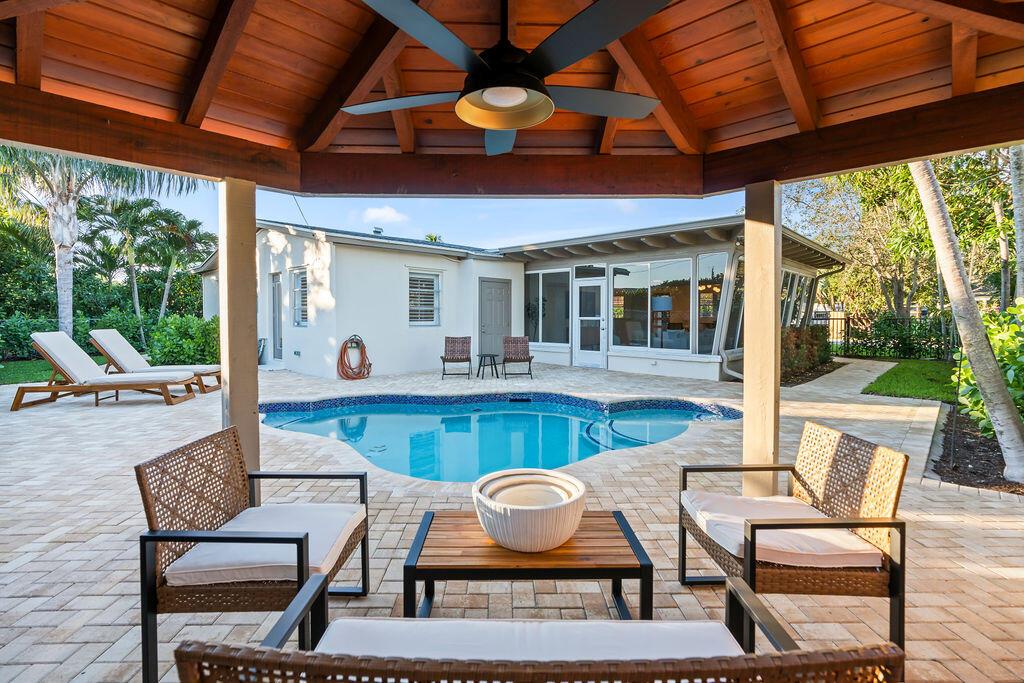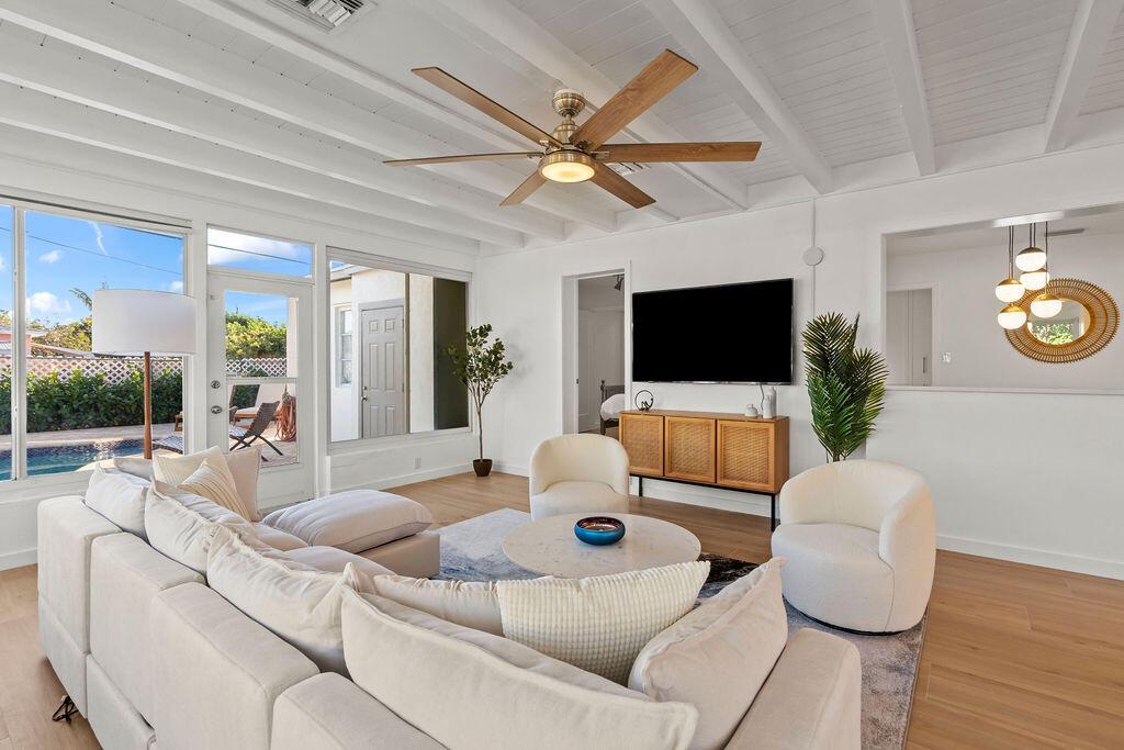 In the heart of SOSO, this Mid-Century Modern home has been reimagined and updated with sleek, sophisticated contemporary warm finishes throughout. This home has had an incredible makeover which now features chic finishes such as gold accented kitchen cabinetry, quartz countertops, all new GE Profile appliances, Thassos marble bathrooms with frameless glass shower doors & Kohler/Moen accents, along with a Thassos marbled fireplace. A metal roofed gazebo is the centerpiece of the fully fenced backyard where the updates continue. Whether entertaining or relaxing, the pool has been re-tiled along with new pavers that adorn this amazing