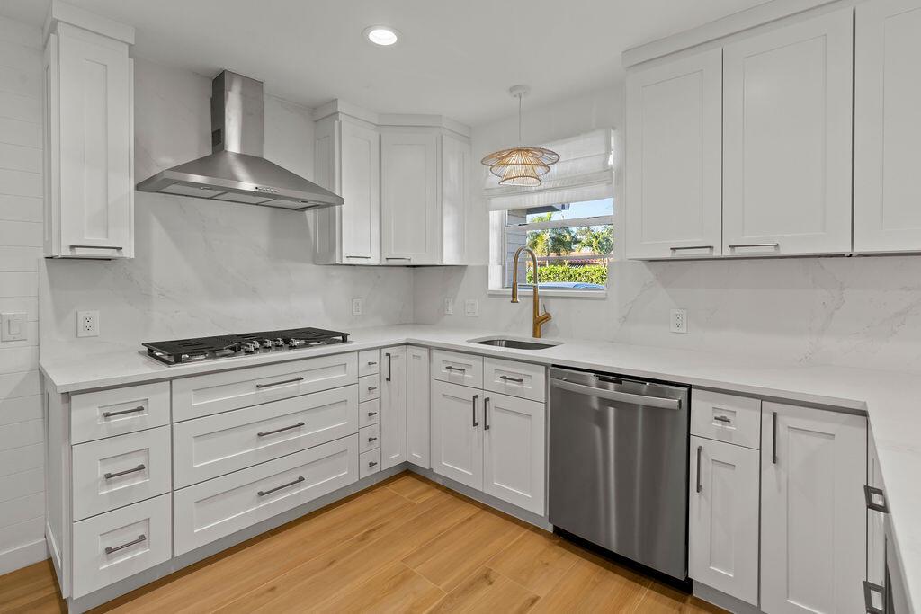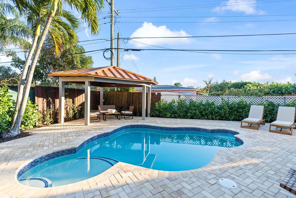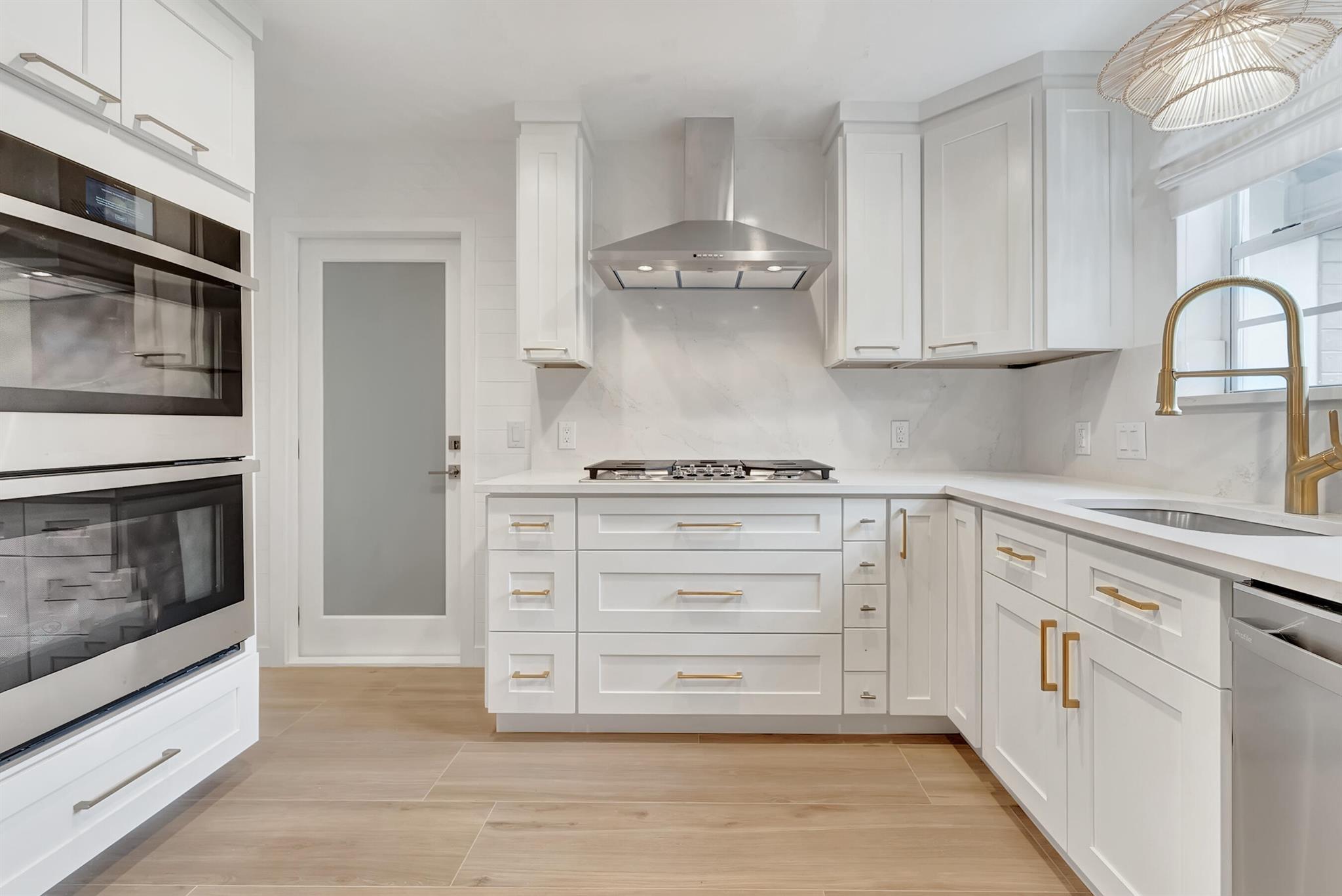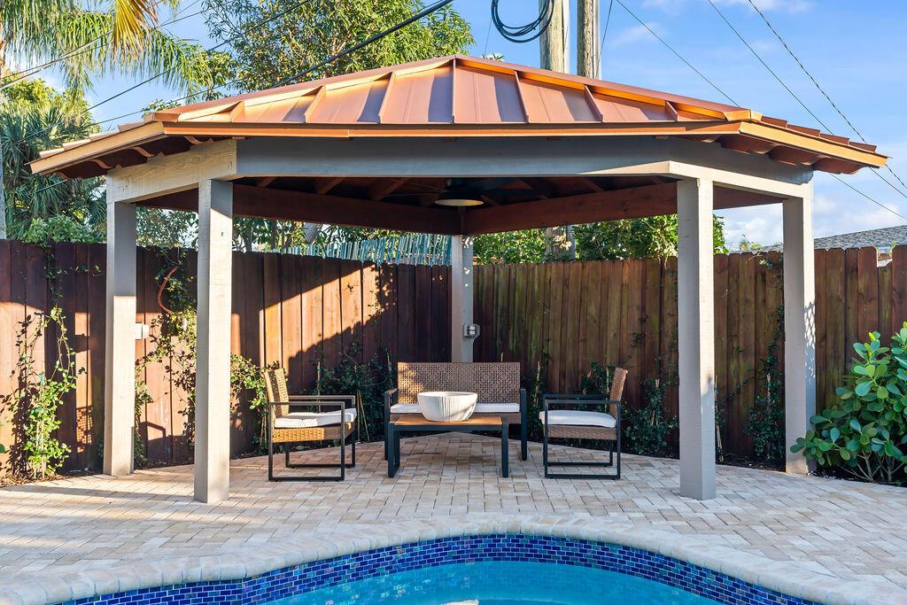 In the heart of SOSO, this Mid-Century Modern home has been reimagined and updated with sleek, sophisticated contemporary warm finishes throughout. This home has had an incredible makeover which now features chic finishes such as gold accented kitchen cabinetry, quartz countertops, all new GE Profile appliances, Thassos marble bathrooms with frameless glass shower doors & Kohler/Moen accents, along with a Thassos marbled fireplace. A metal roofed gazebo is the centerpiece of the fully fenced backyard where the updates continue. Whether entertaining or relaxing, the pool has been re-tiled along with new pavers that adorn this amazing
