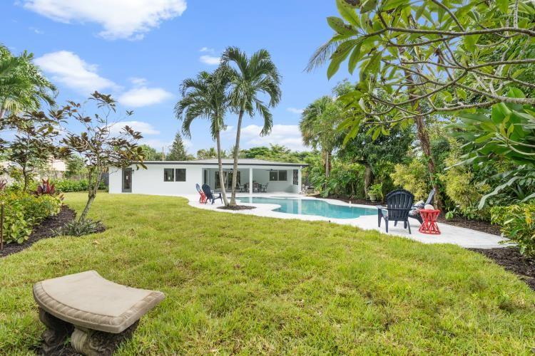 Beautifully remodeled 4/2 pool home in East Boca that boasts a rare oversized lot filled with tropical plants and trees. Home exterior consists of a new metal roof, new paver driveway, and resurfaced pool and spa. All exterior openings are complete with City of Boca Raton approved new hurricane impact windows and doors. AC units installed in 2022. New luxury vinyl flooring is installed throughout the home. Bathrooms are elegantly updated. The exquisite chef's kitchen is the heart of the home with an oversized eat-in peninsula, high end appliances, and a convenient pot filler. Home is in walking distance to Mizner Elementary School. This home is truly a turnkey tropical paradise awaiting its next family.