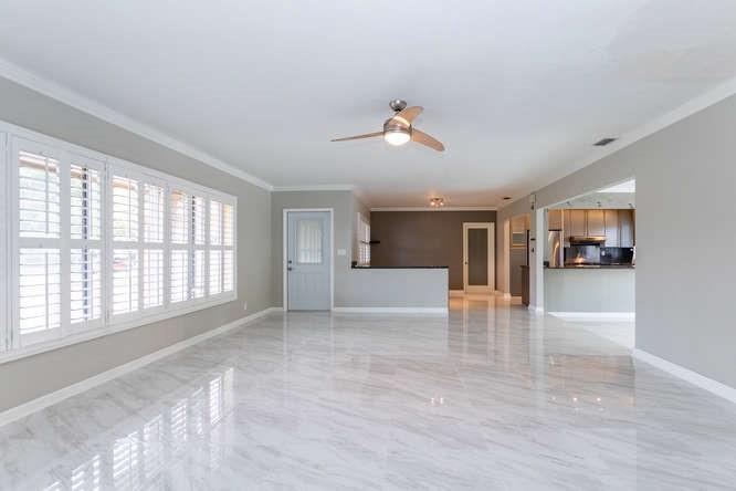 The best value currently on the market in Coral Ridge. Move right in to this 3/2 home walking distance to the beach, dining and Coral Ridge mall. This unique property offers a wide open floor plan with the dining, living and family room all combining into one space overlooked by the kitchen. There is a newly installed tile flooring throughout giving the home a very clean and consistent appeal. Other benefits include the 2 car garage, new AC unit and ductwork, partially replaced sewer pipes. The large lot is fully fenced with room for a pool and features a patio with covered awning. Huge interior laundry room.