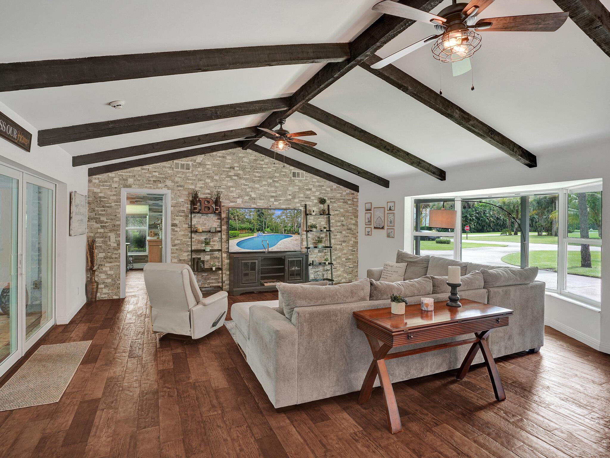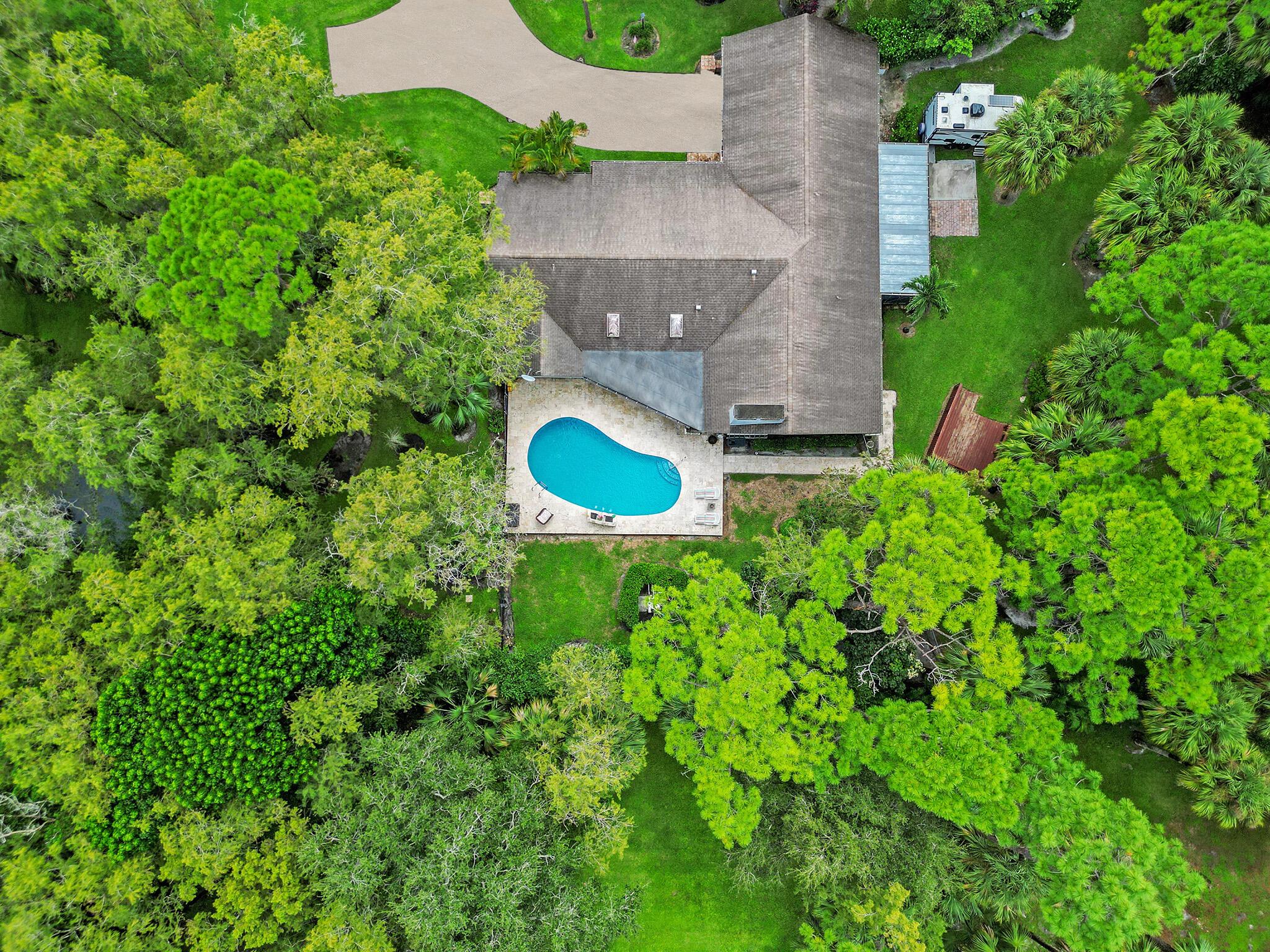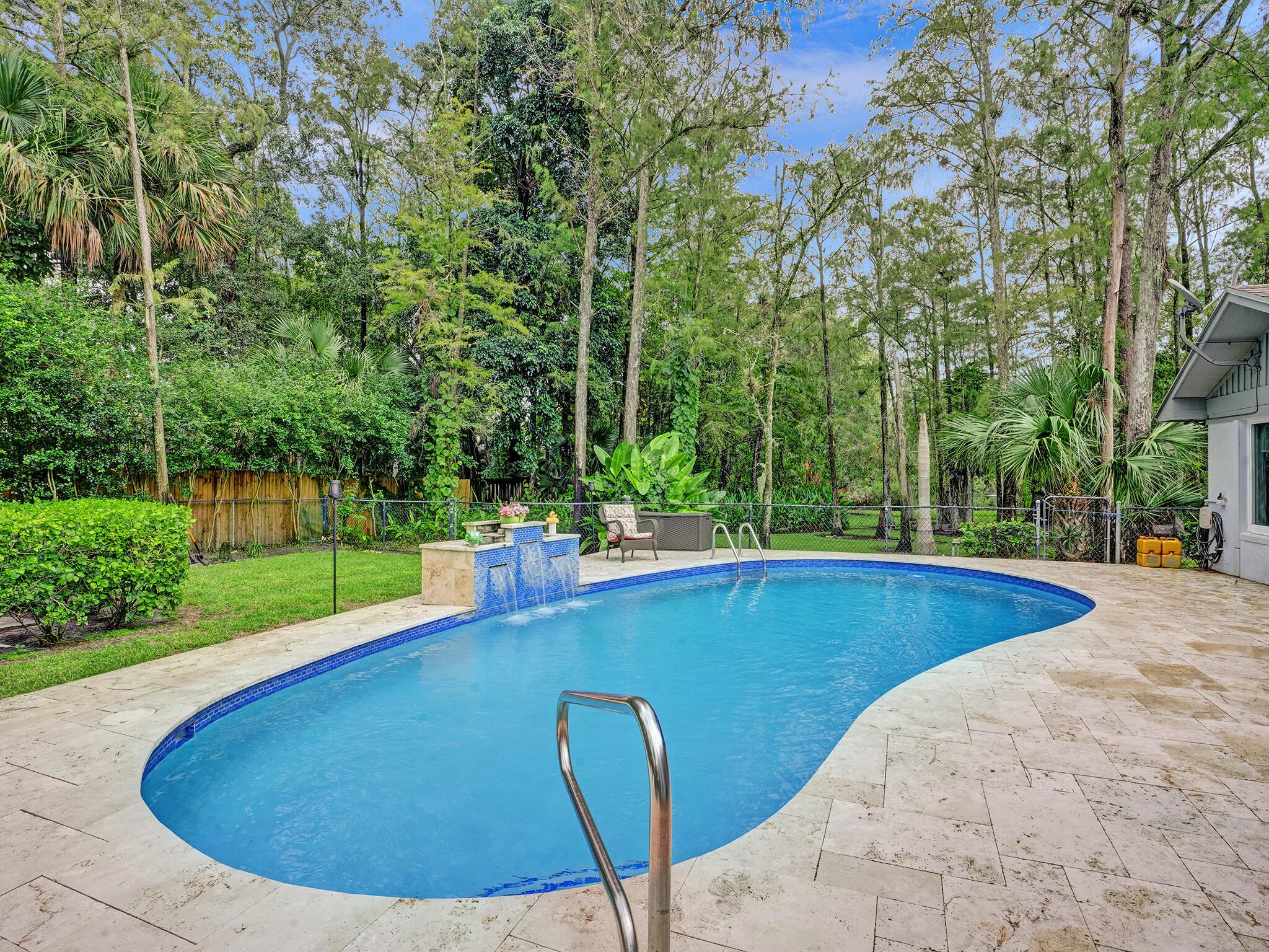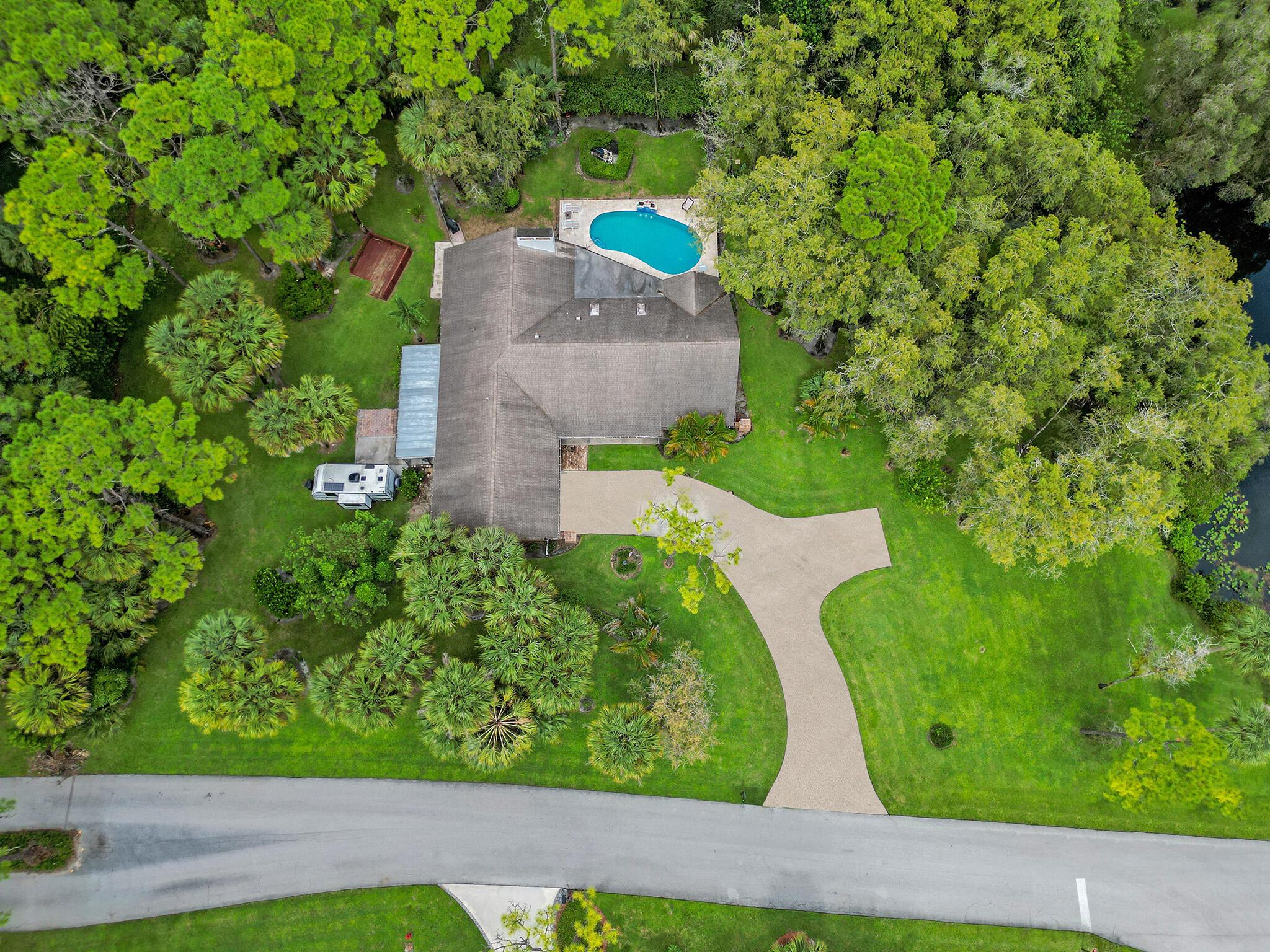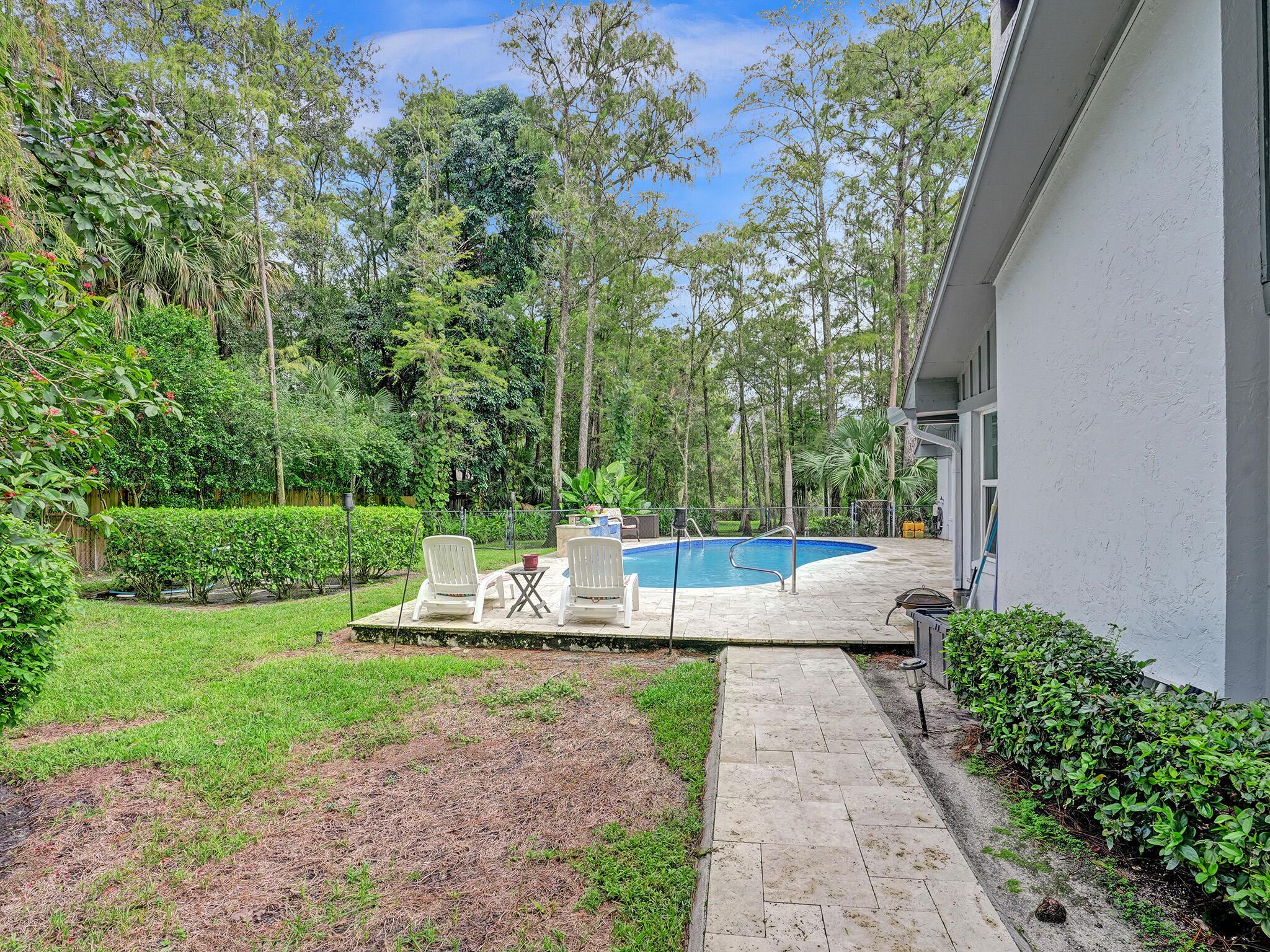 Come see this 4 bedroom, 2 bath, pool home on an acre in the charming Thousand Pines neighborhood! This gated community with 52 homes on 1+ acre lots is located 15 minutes from downtown W Palm and 5 minutes from the new downtown Royal Palm. The home features an updated kitchen with quartz counters, large island, and stainless steel appliances. The great room, with vaulted ceilings and decorative wood beams, leads to a split floor plan. A spacious master bedroom on one side of the home and 3 bedrooms on the other. This spectacular 1 acre lot is lushly landscaped and adjacent to a community lake so you can enjoy your covered patio and expansive pool area in private. Renovated bathrooms, new impact windows & doors, new 5 ton AC and duct work, resurfaced pool and deck, new paint, plus more!