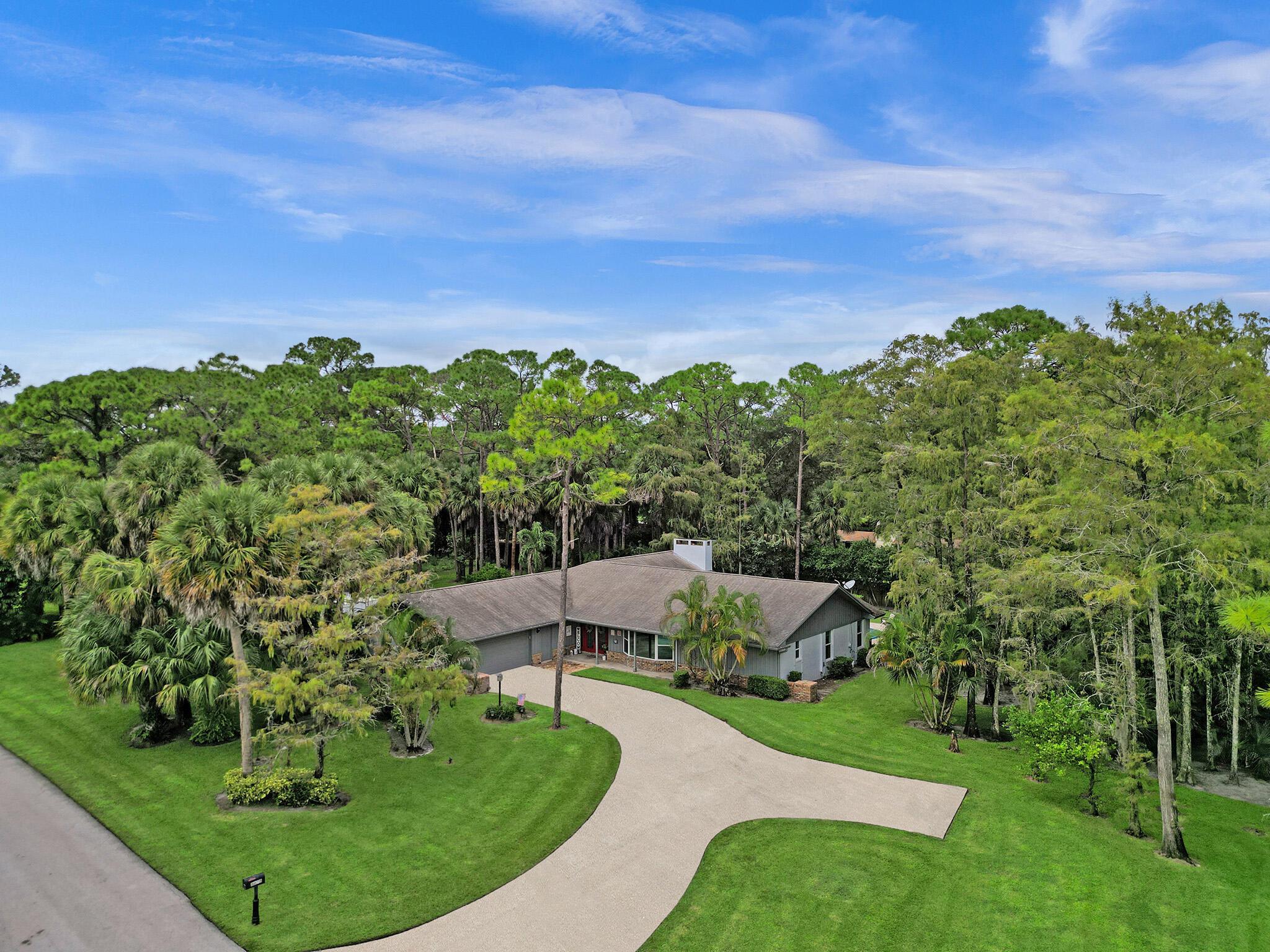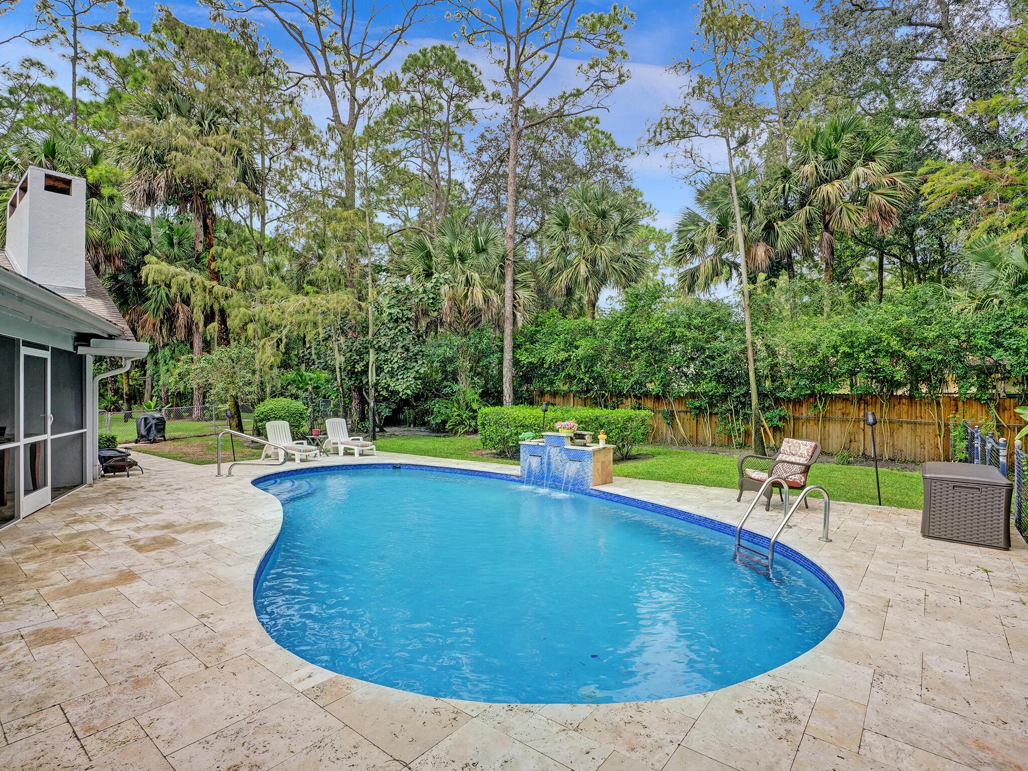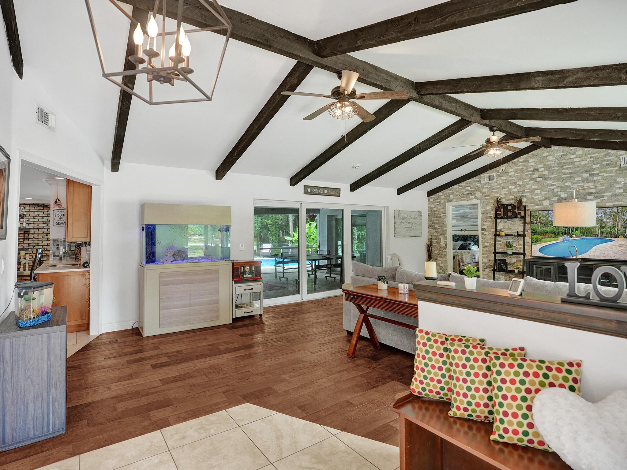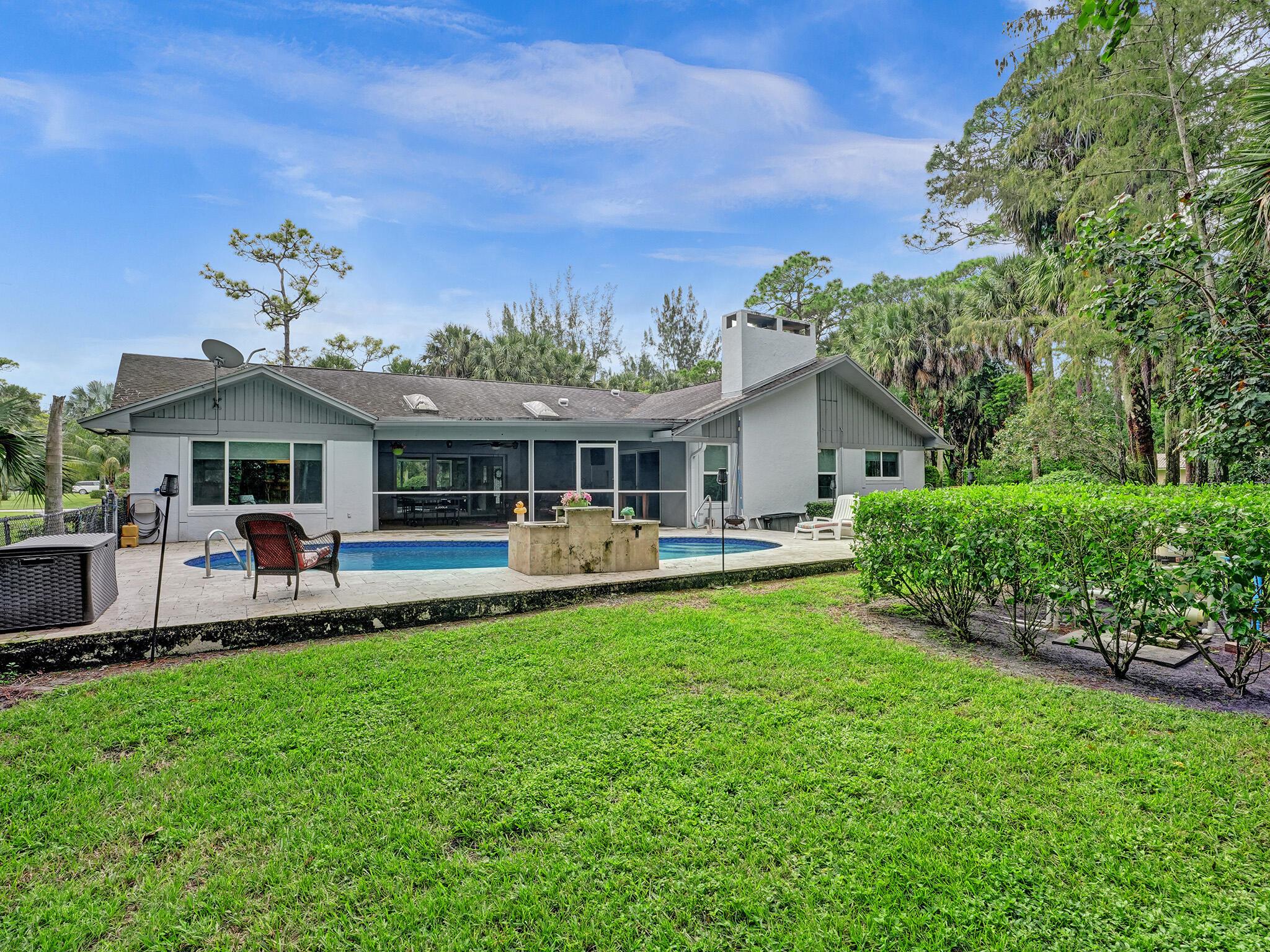 Come see this 4 bedroom, 2 bath, pool home on an acre in the charming Thousand Pines neighborhood! This gated community with 52 homes on 1+ acre lots is located 15 minutes from downtown W Palm and 5 minutes from the new downtown Royal Palm. The home features an updated kitchen with quartz counters, large island, and stainless steel appliances. The great room, with vaulted ceilings and decorative wood beams, leads to a split floor plan. A spacious master bedroom on one side of the home and 3 bedrooms on the other. This spectacular 1 acre lot is lushly landscaped and adjacent to a community lake so you can enjoy your covered patio and expansive pool area in private. Renovated bathrooms, new impact windows & doors, new 5 ton AC and duct work, resurfaced pool and deck, new paint, plus more!