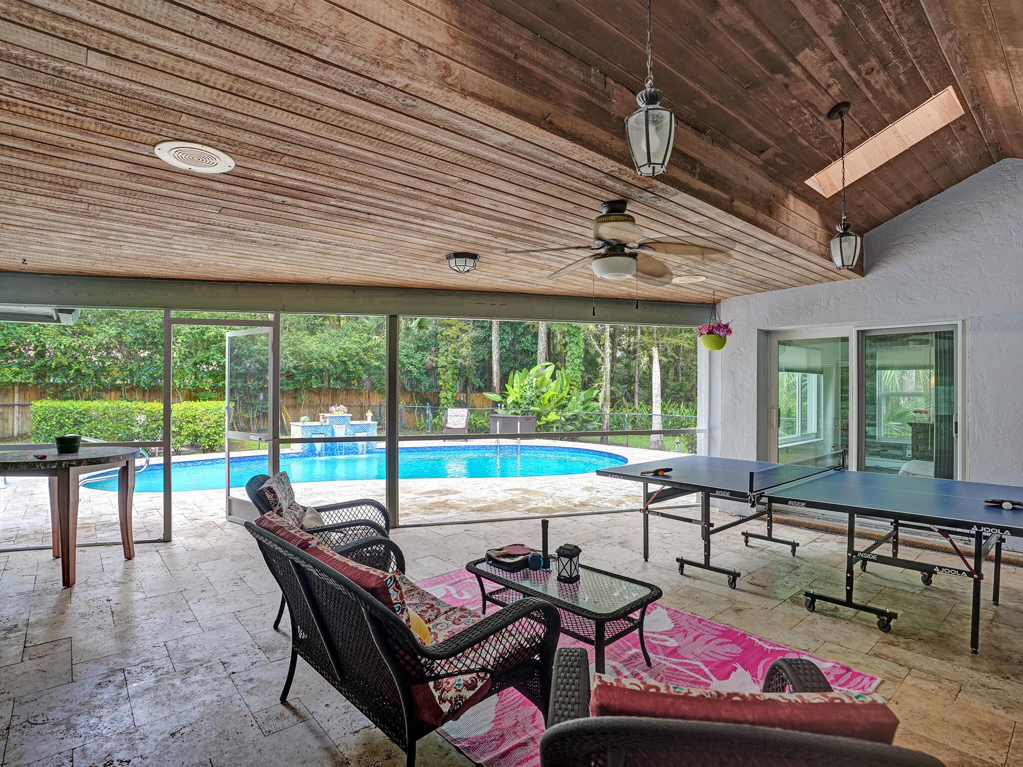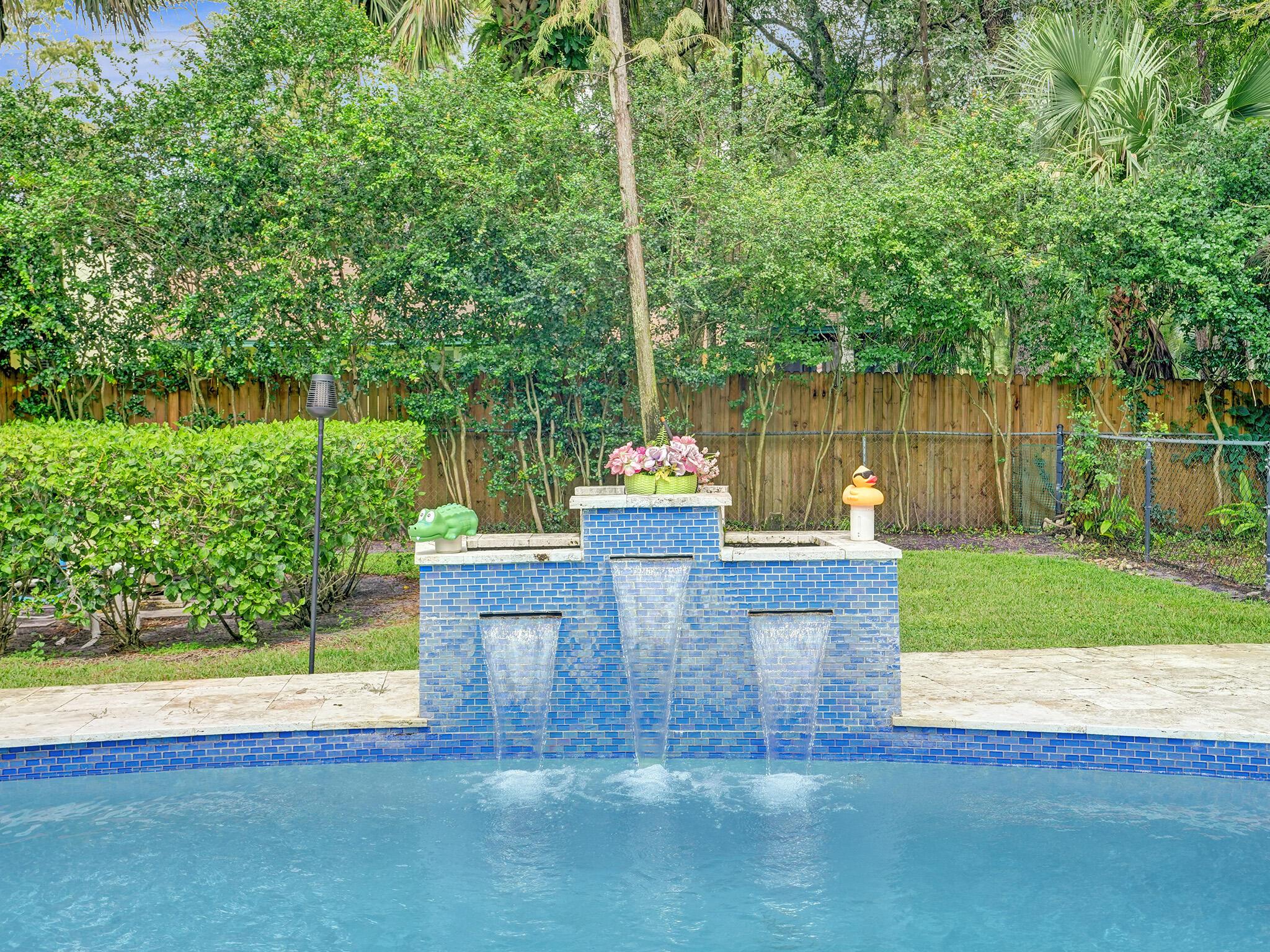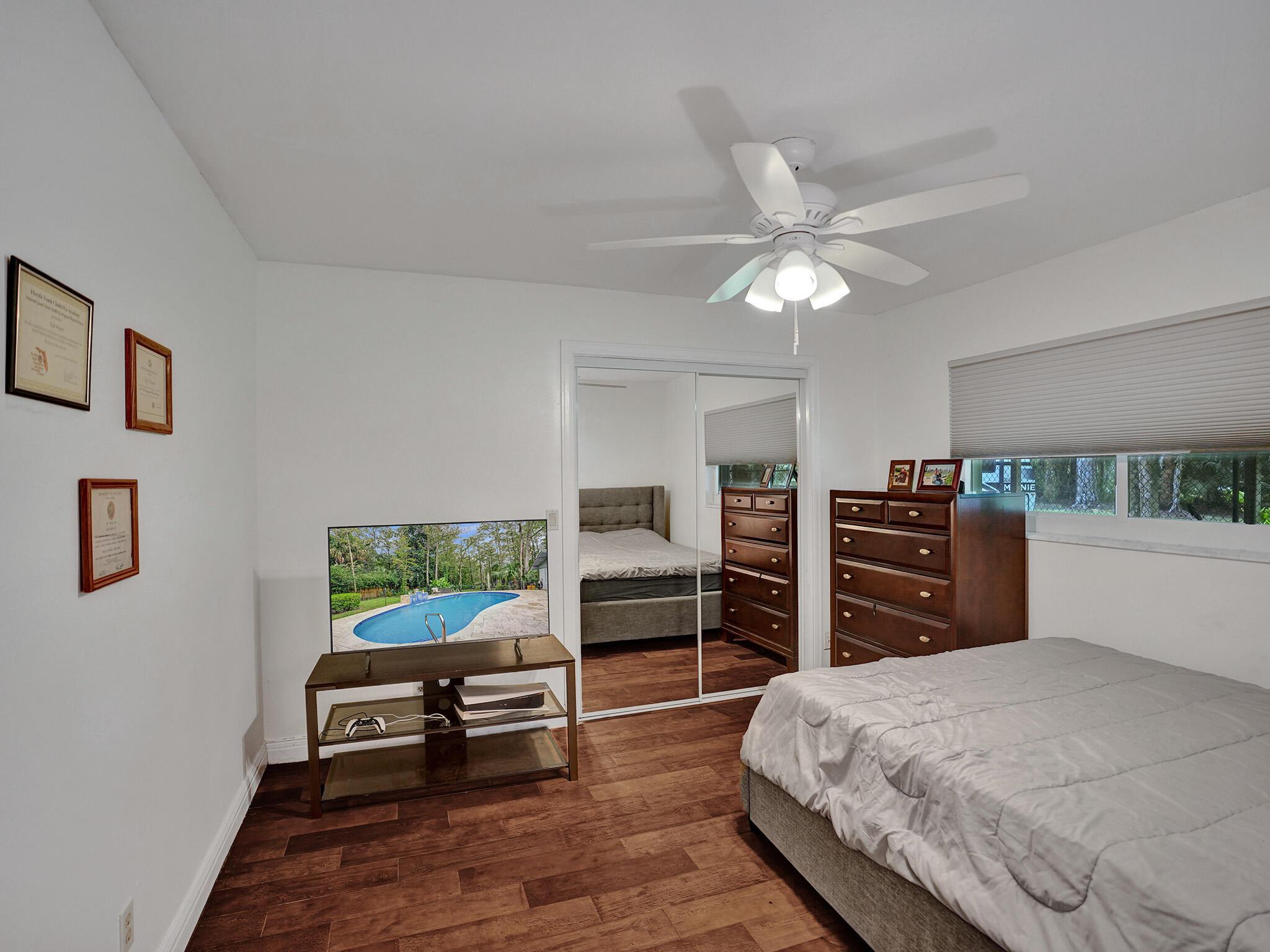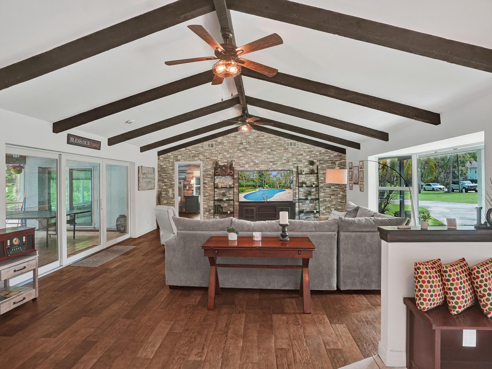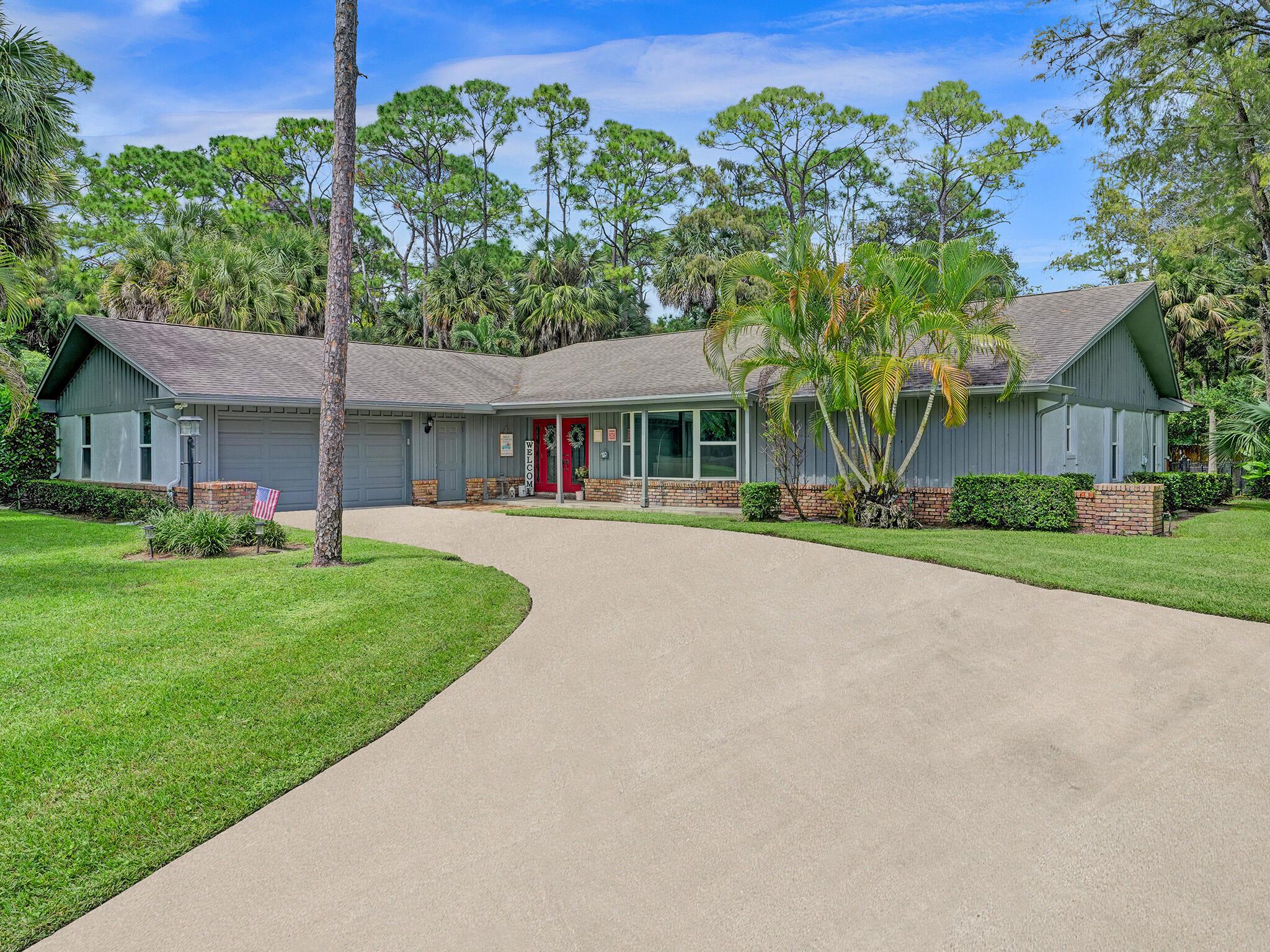 Come see this 4 bedroom, 2 bath, pool home on an acre in the charming Thousand Pines neighborhood! This gated community with 52 homes on 1+ acre lots is located 15 minutes from downtown W Palm and 5 minutes from the new downtown Royal Palm. The home features an updated kitchen with quartz counters, large island, and stainless steel appliances. The great room, with vaulted ceilings and decorative wood beams, leads to a split floor plan. A spacious master bedroom on one side of the home and 3 bedrooms on the other. This spectacular 1 acre lot is lushly landscaped and adjacent to a community lake so you can enjoy your covered patio and expansive pool area in private. Renovated bathrooms, new impact windows & doors, new 5 ton AC and duct work, resurfaced pool and deck, new paint, plus more!