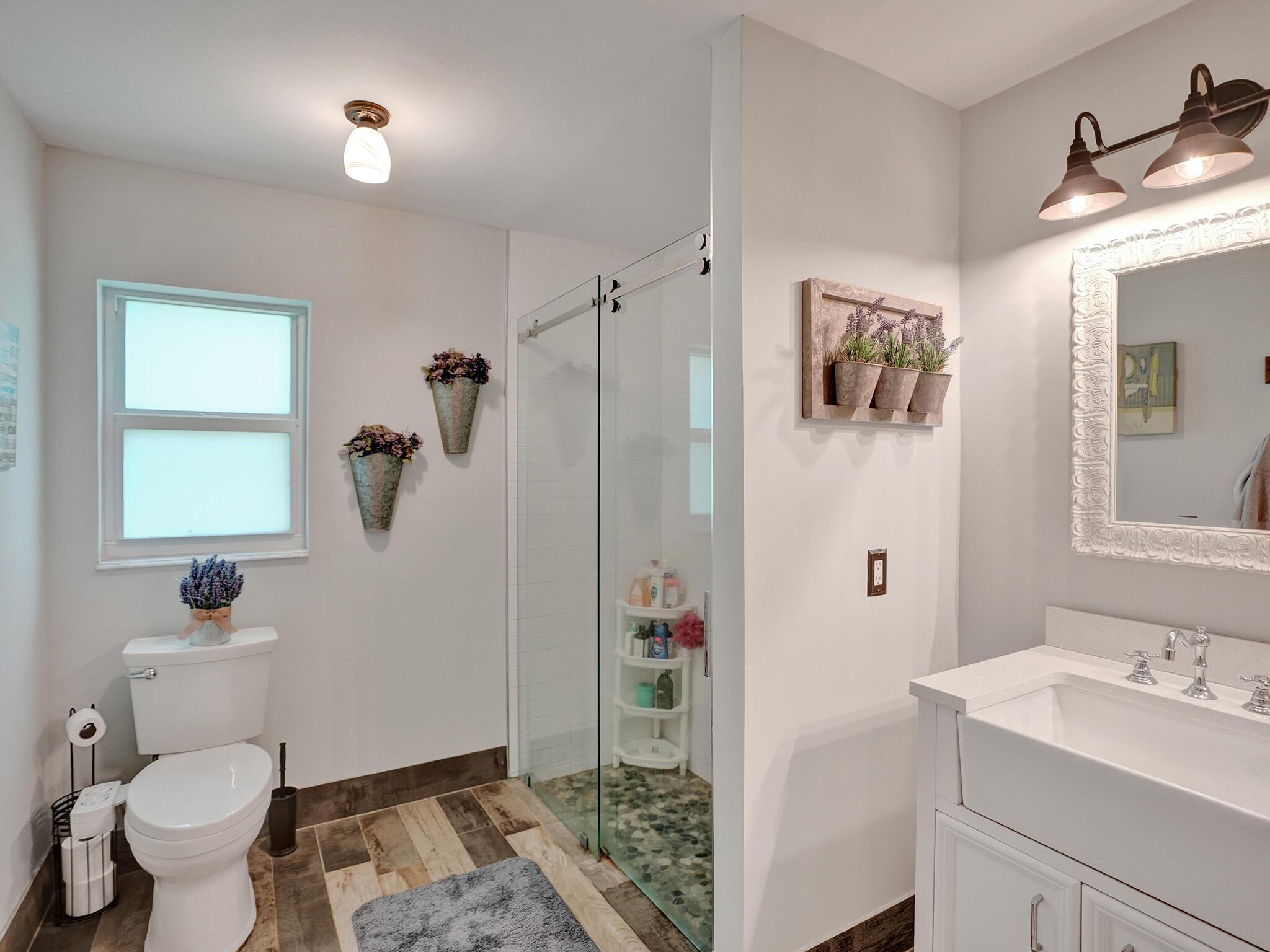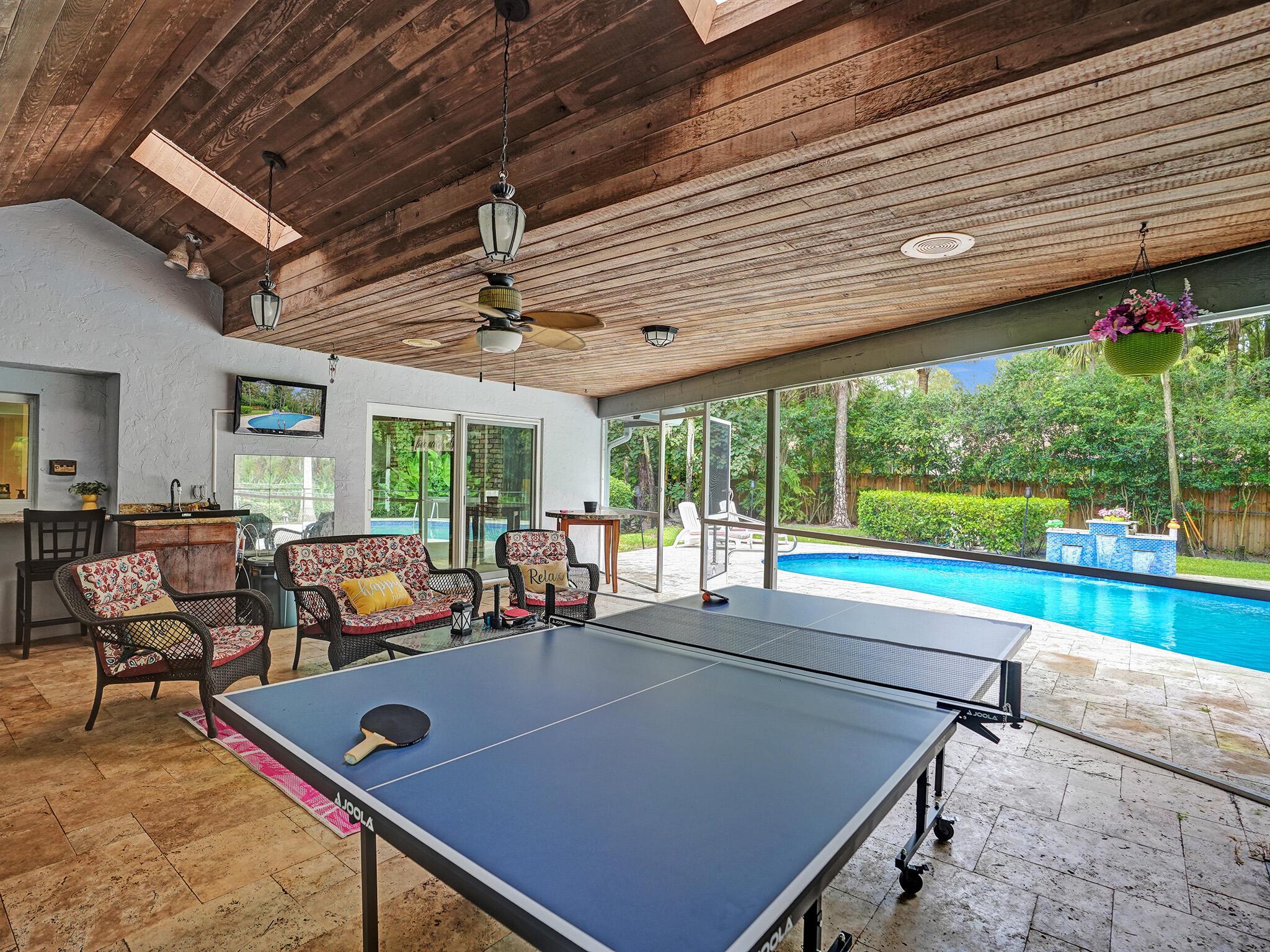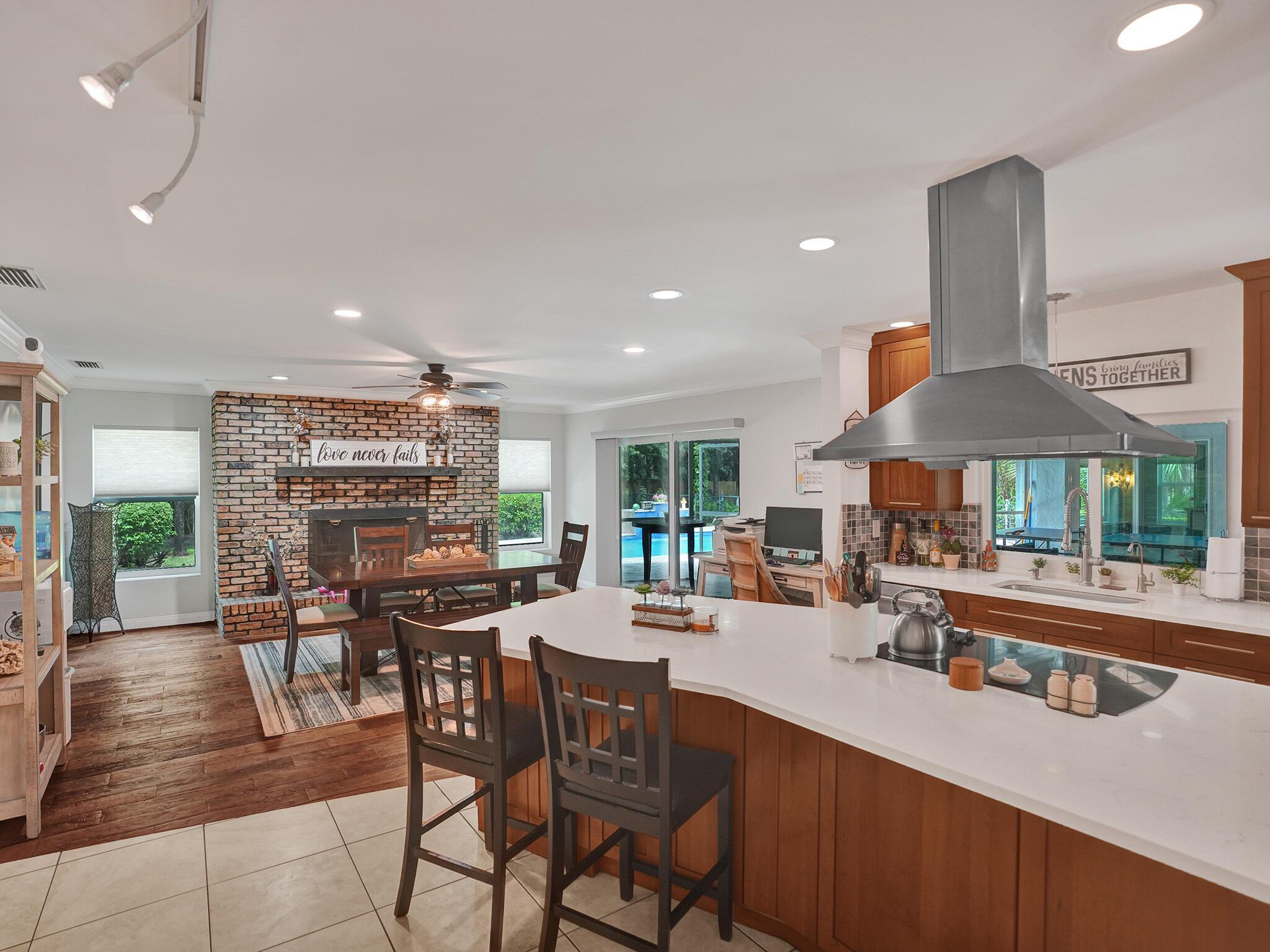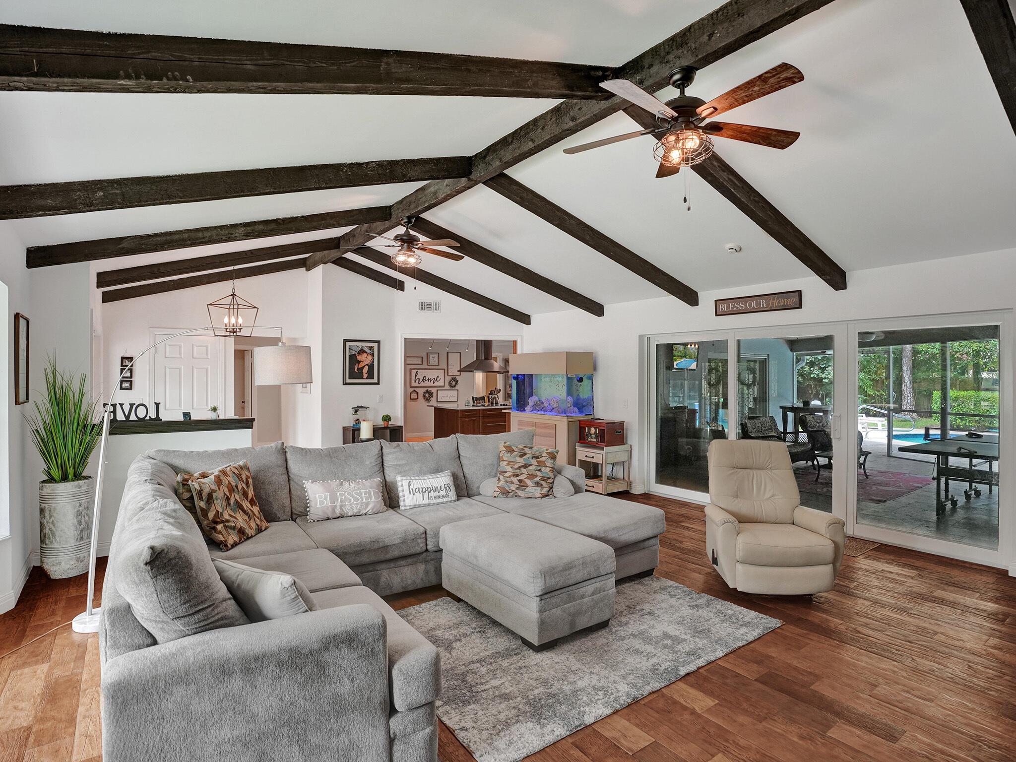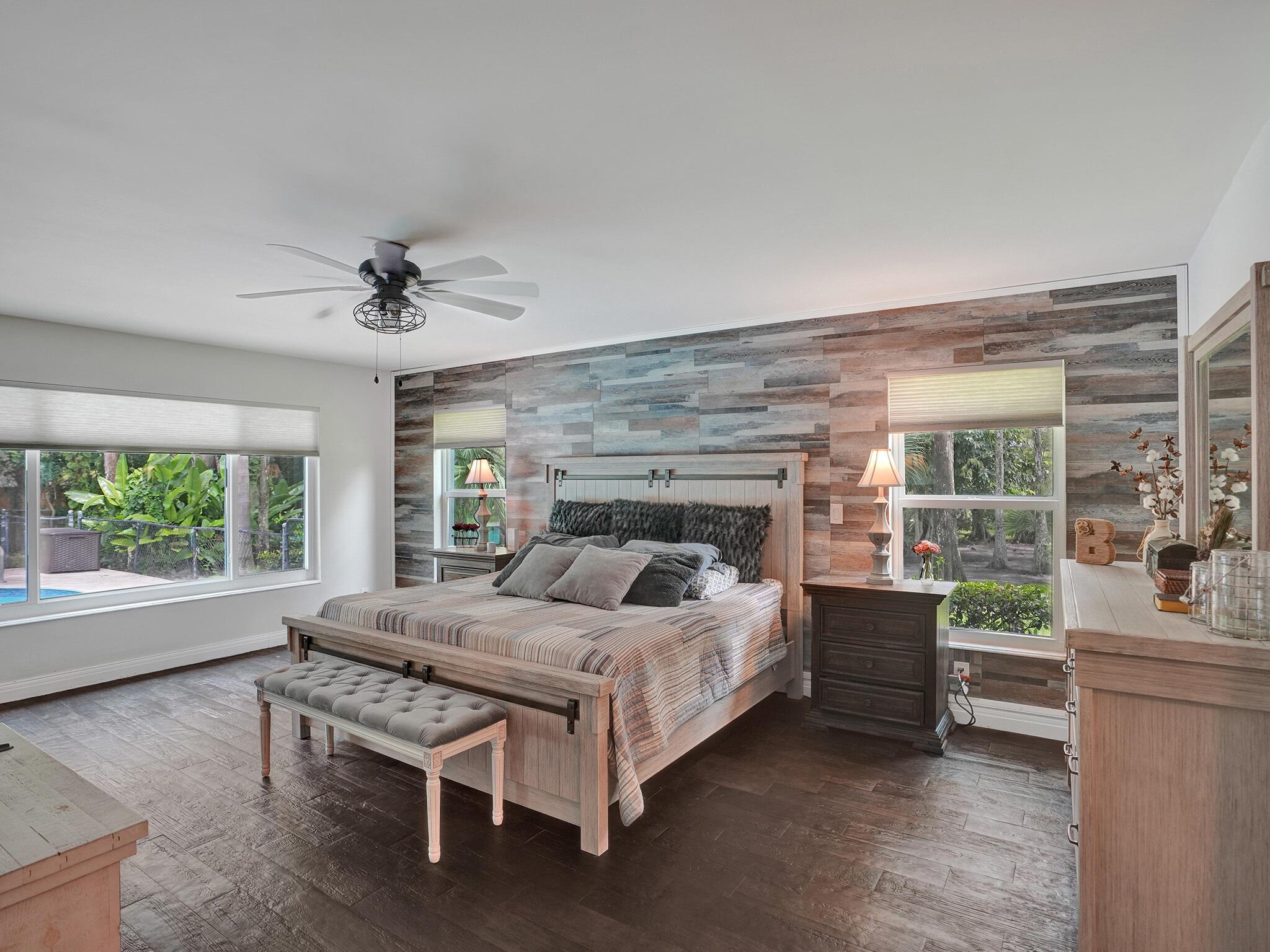 Come see this 4 bedroom, 2 bath, pool home on an acre in the charming Thousand Pines neighborhood! This gated community with 52 homes on 1+ acre lots is located 15 minutes from downtown W Palm and 5 minutes from the new downtown Royal Palm. The home features an updated kitchen with quartz counters, large island, and stainless steel appliances. The great room, with vaulted ceilings and decorative wood beams, leads to a split floor plan. A spacious master bedroom on one side of the home and 3 bedrooms on the other. This spectacular 1 acre lot is lushly landscaped and adjacent to a community lake so you can enjoy your covered patio and expansive pool area in private. Renovated bathrooms, new impact windows & doors, new 5 ton AC and duct work, resurfaced pool and deck, new paint, plus more!