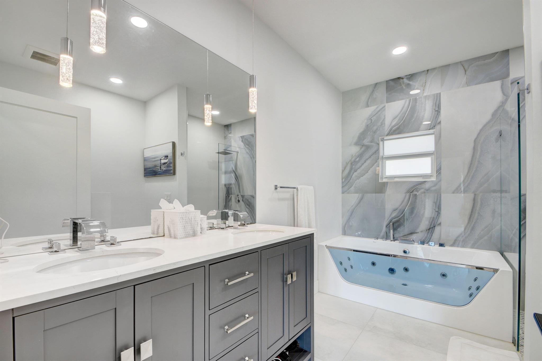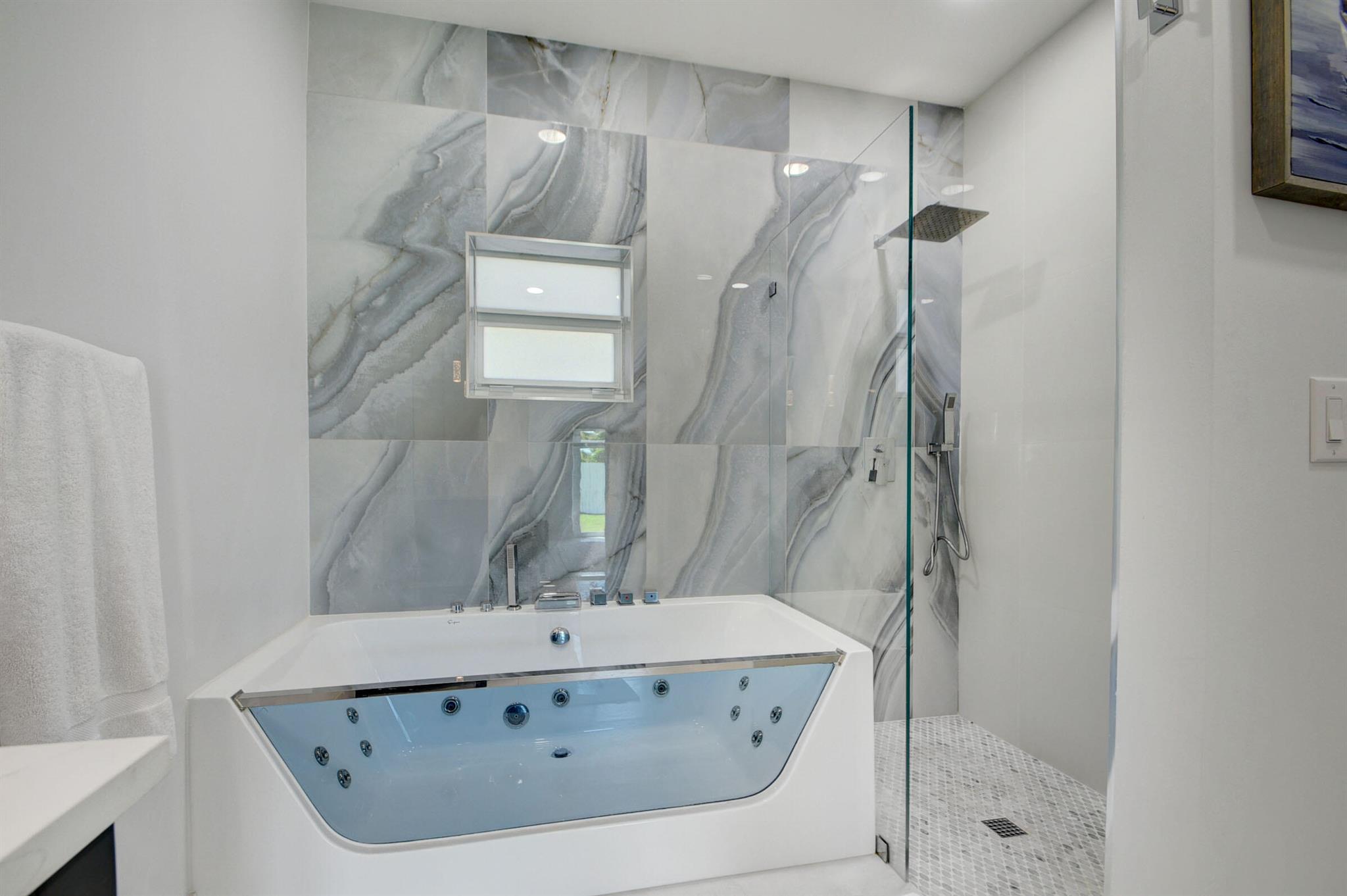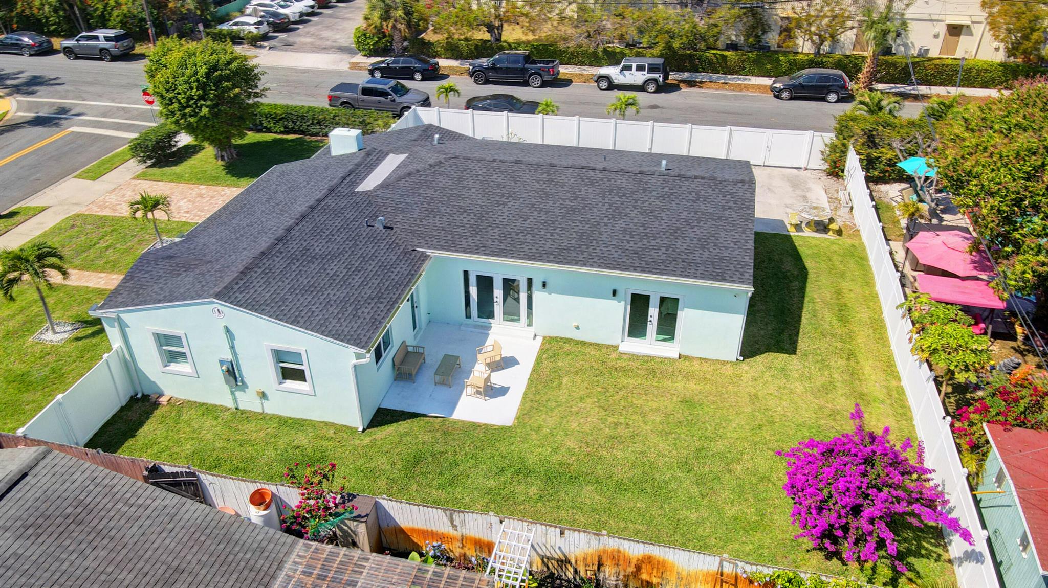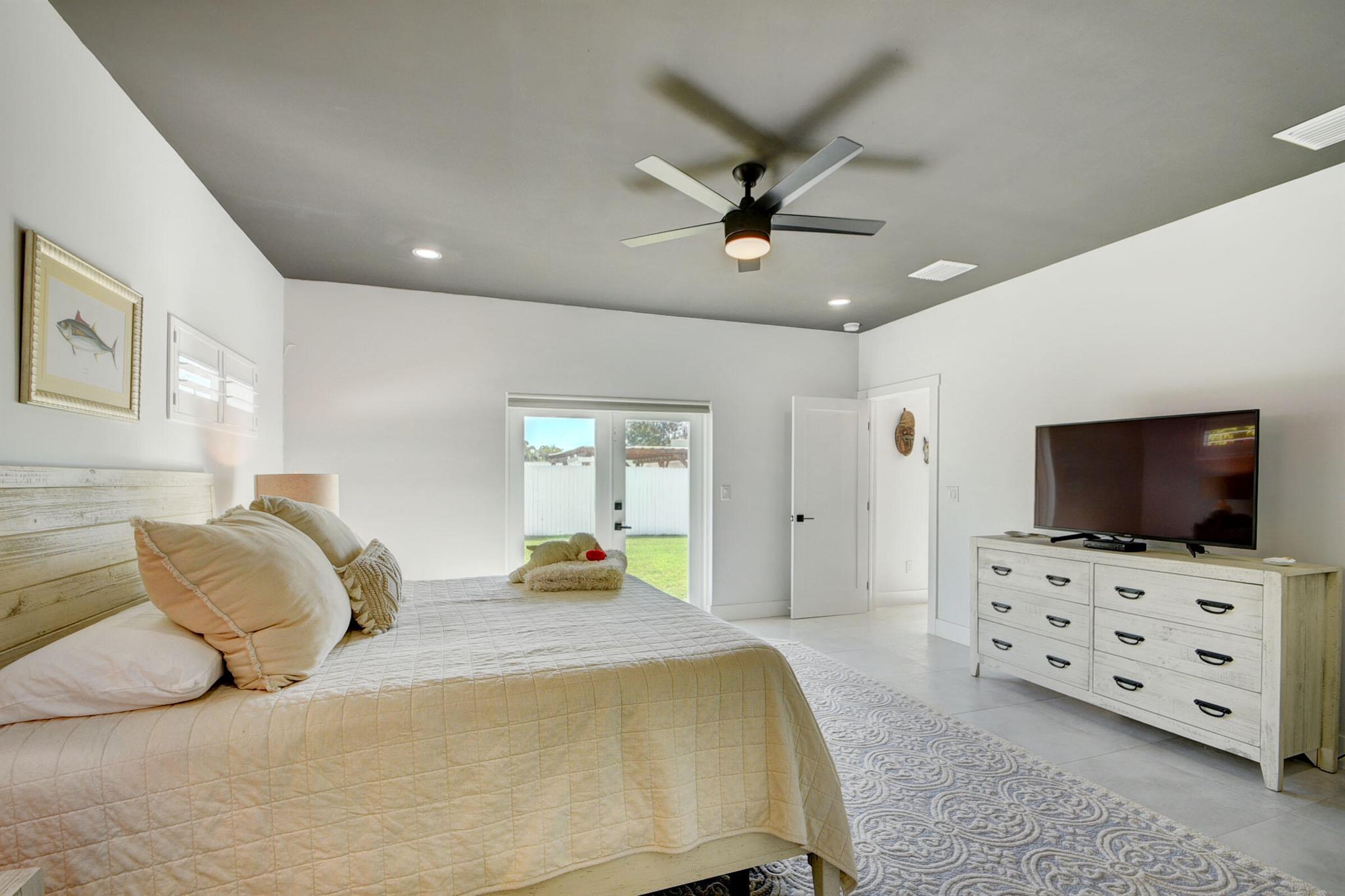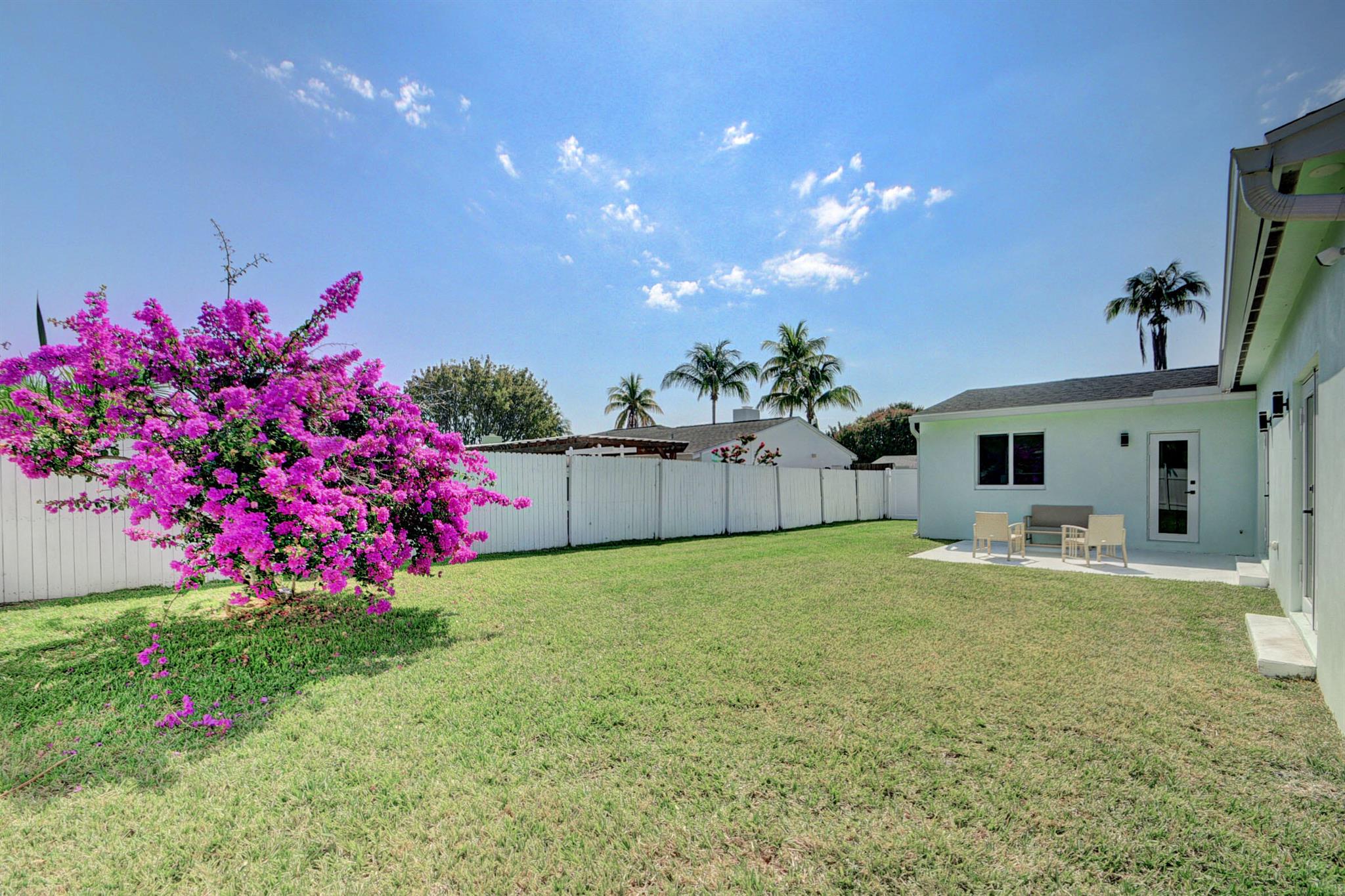 This large corner lot with totally upgraded split floor plan home in much sought after So So offer's 2094 Sq ft of tiled living space. This home has an open kitchen, living and dining area and is light and bright throughout! The kitchen has custom backsplash, countertops and newer appliances.The home also features an electric fireplace and plantation shutters. The extra large master suite includes a spacious walk in closet, master bathroom features a walk in shower, jet tub and French doors that open to a large back garden. Other two bedrooms are bright with extra windows and plenty of closet space. Second bathroom has tub/shower combo with door leading outside to patio and garden has ample room for a pool. Hurricane impact windows on all openings,Newer Roof,Stackable washer dryer and