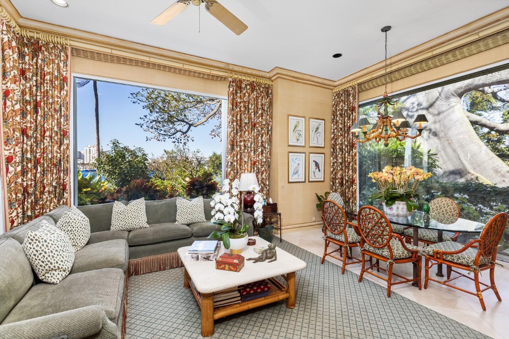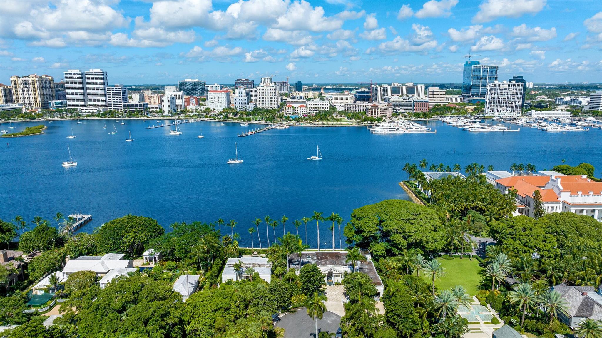 Fantastic Lakefront In-Town property with 200'+/- along the Intracoastal. Stunning water views throughout this one story estate. 8 bedrooms, 8 full baths, and 2 powder rooms split between main residence and guest house. The main estate features high ceilings, grand living room with fireplace, formal dining room, and family room with wet bar. Beautiful tropical landscaping surrounds terraces, swimming pool, and spa. Dramatic view of the kapok tree. Spectacular sunset, Intracoastal, and downtown views.
