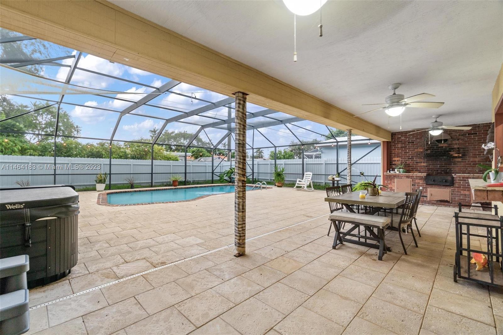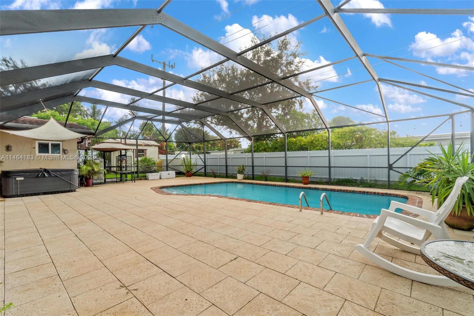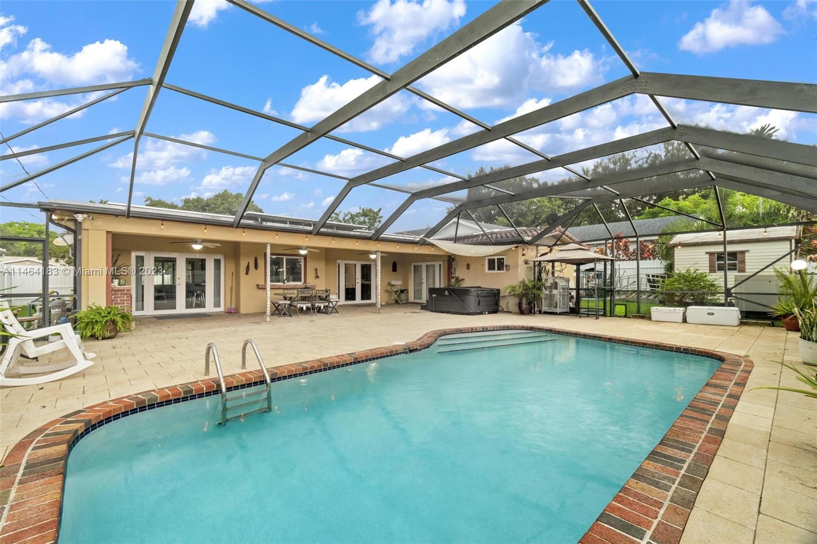 Seeking a paradise and entertainment hub? This elegantly remodeled house features a revamped kitchen with brand new appliances, impact-resistant doors and windows, and beautiful ceramic flooring throughout. Relax in the thermal pool, jacuzzi, or expansive barbecue area. There are 3 bedrooms and 2 bathrooms, plus a converted garage to a in law suite with independent entrance, ideal for guests or extra income (total of 4B/3B). The recently redone roof and new A/C system add to the comfort, while a backup generator ensures uninterrupted power. Don't miss out on this all-encompassing home!