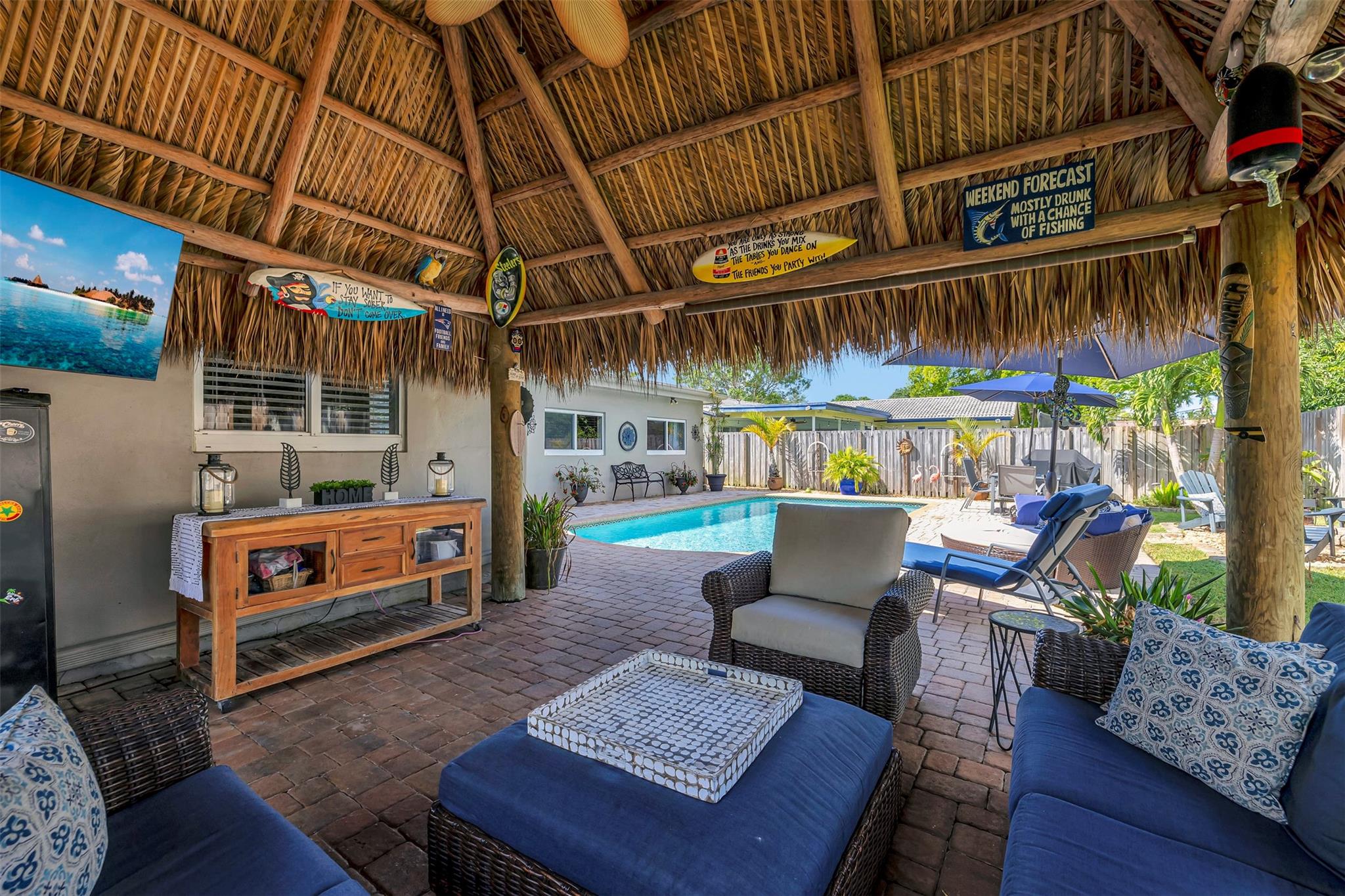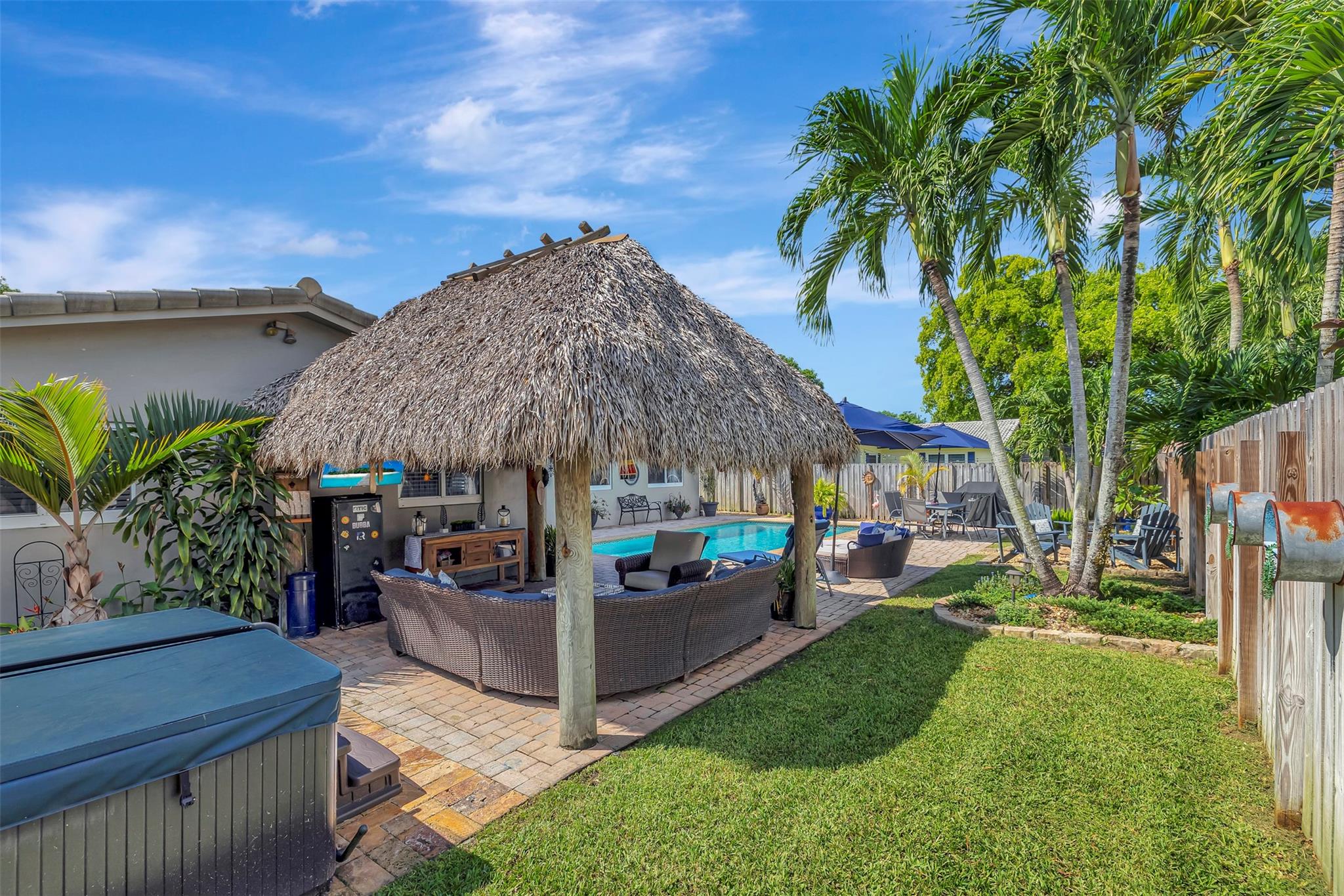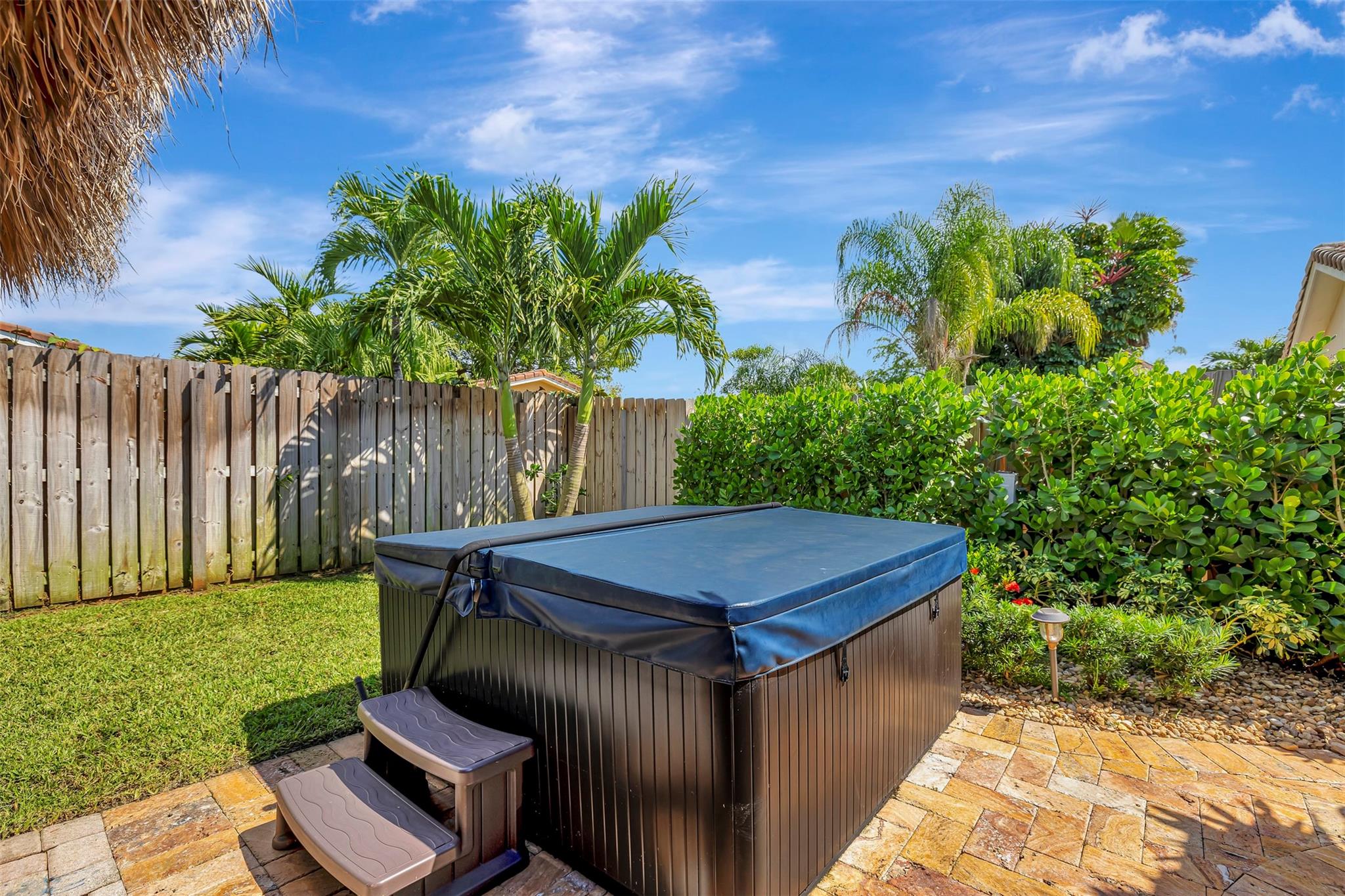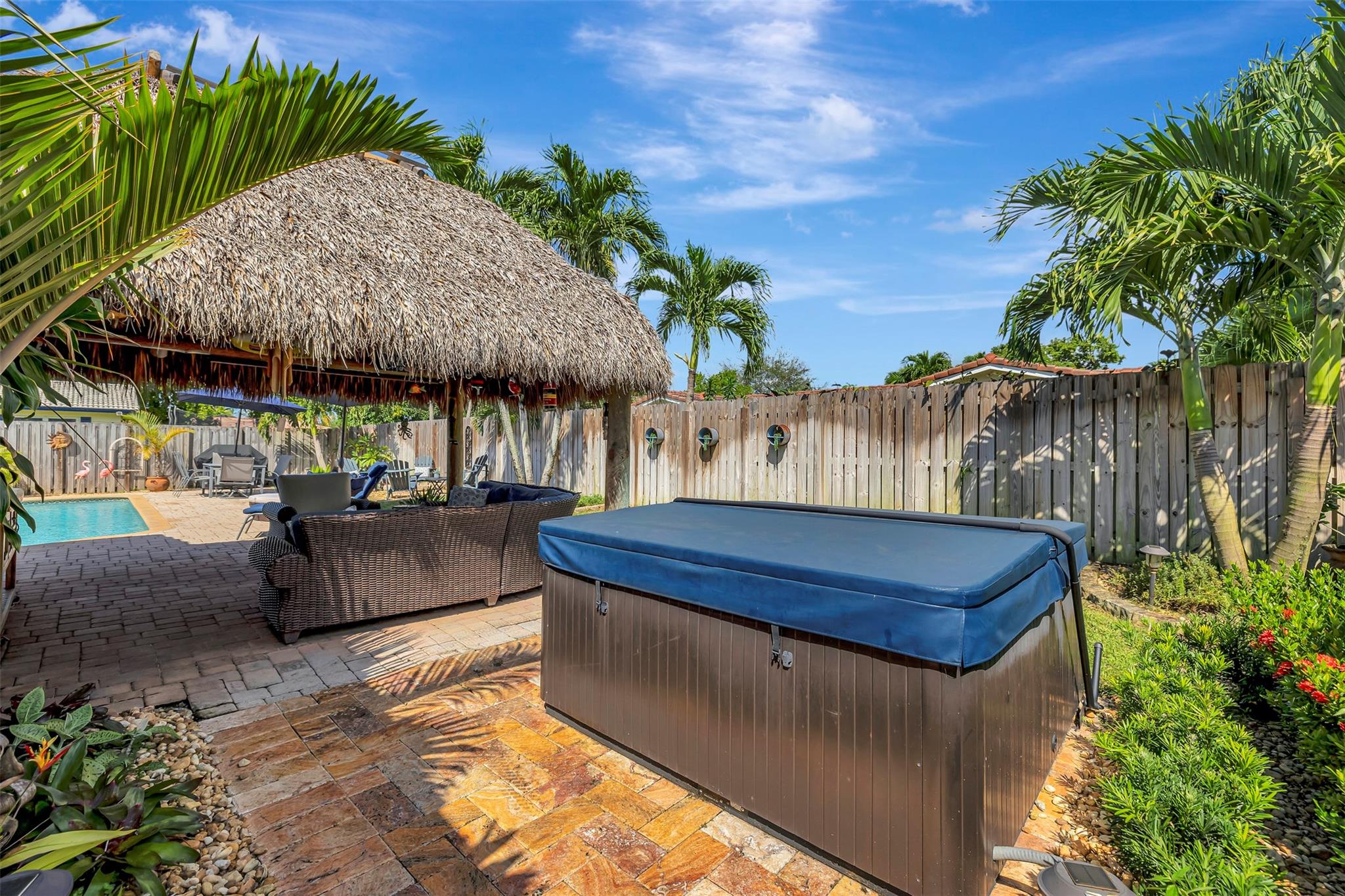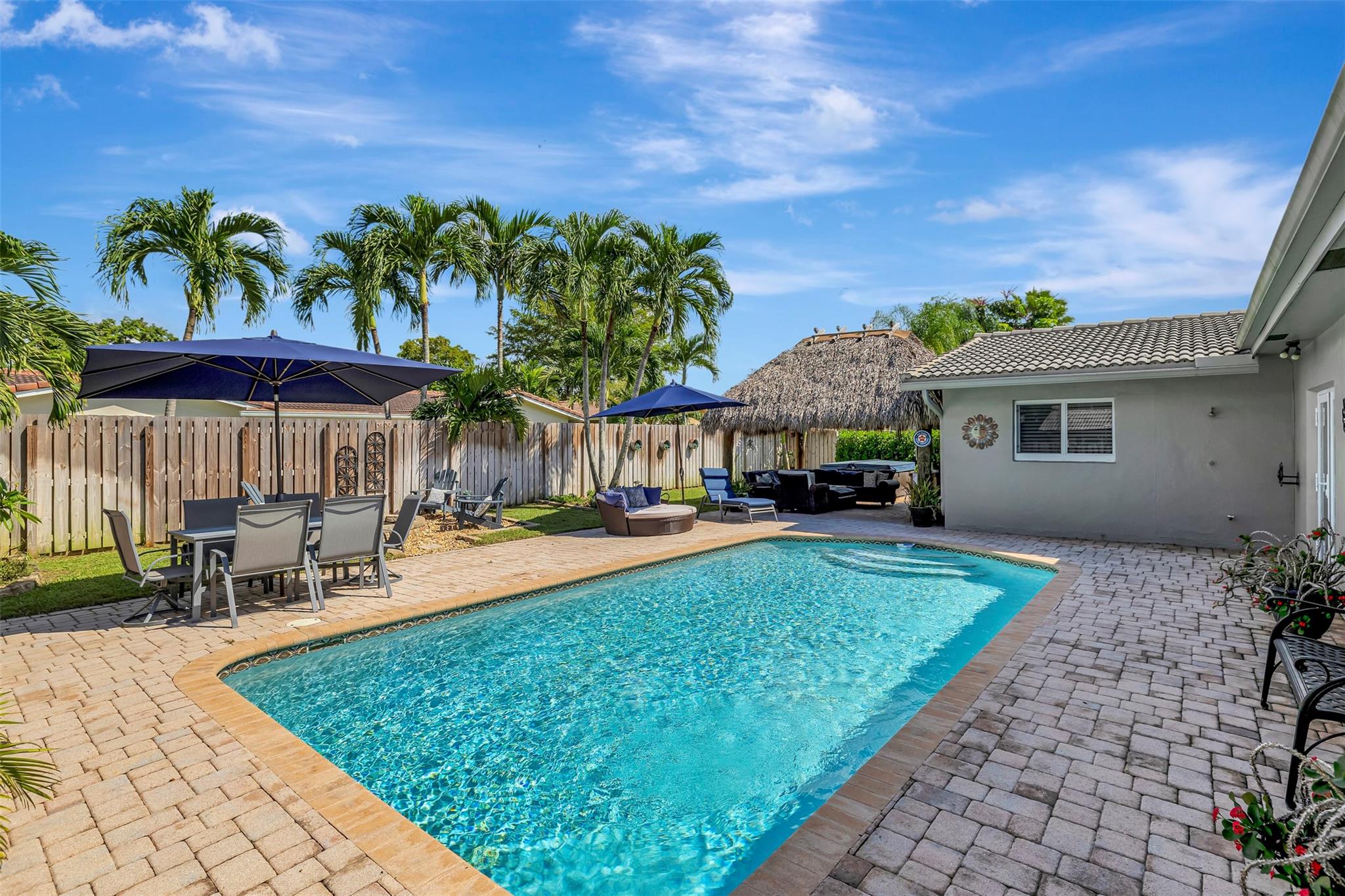 MUST SEE!! Welcome to YOUR beautiful 4/2/2 home! BEST LOCATION!!EXCELLENT SCHOOLS, SHOPPING AND RESTAURANTS! Dog park, Aquatic center, Ice Den, Tennis center AND pickleball down the street! This home features a private resort style back yard with pool, hot tub(2021), firepit and Tiki Hut. Inside you have a split floor plan with an oversized primary bedroom with a large ensuite bathroom! Newer stove, dishwasher and refrigerator (2021) and newer AC(2021)!! Beautiful luxury vinyl floors in bedrooms. Impact windows and doors! Laundry room inside! Gorgeous Landscaping with PAVED driveway and patio! Home is in great condition and ready for you to move in!