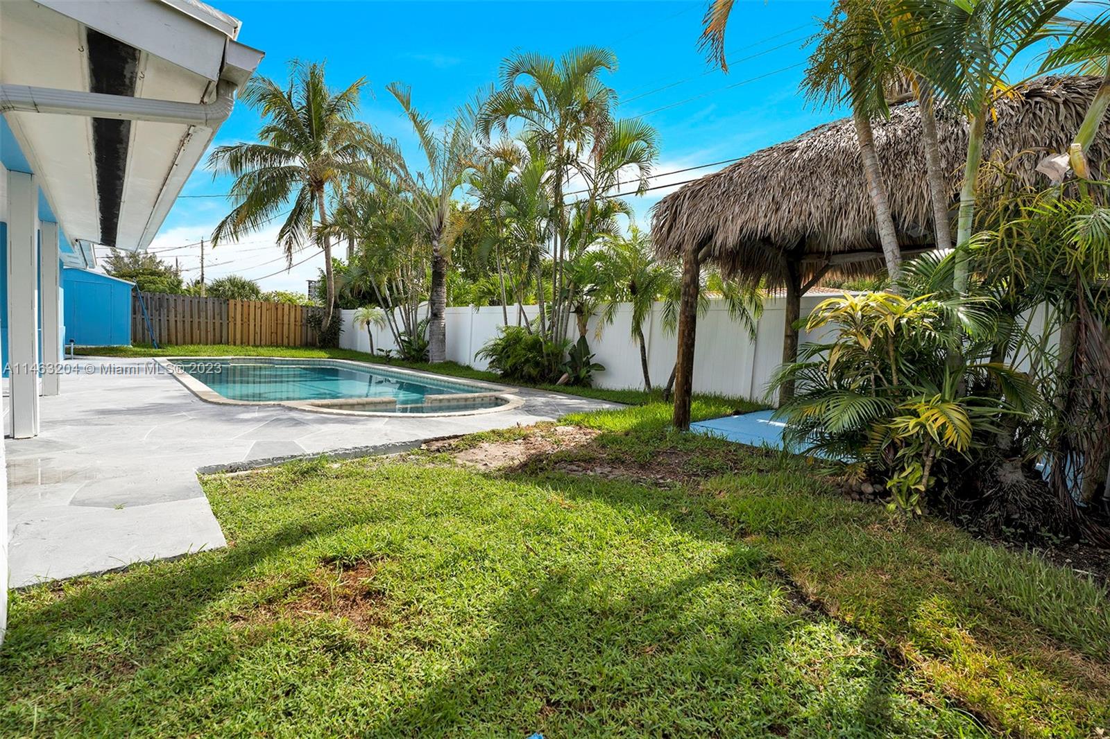 Beautiful home nestled on a quiet cul-de-sac street at the desirable Pompano Beach neighborhood. Open concept living, two bedrooms and one and half bathrooms with a great backyard and oversize salt water pool with attached hot tub and a tiki hut that makes a perfect combination for entertainment or family gatherings. This home features impact windows and doors, new and updated bathrooms and kitchen, new appliances, tankless water heater and, NEW ROOF! Conveniently located 5 minute drive to the beach and close to shopping, restaurants, entertainment and easy access to major roadways. Come see it and fall in love!
