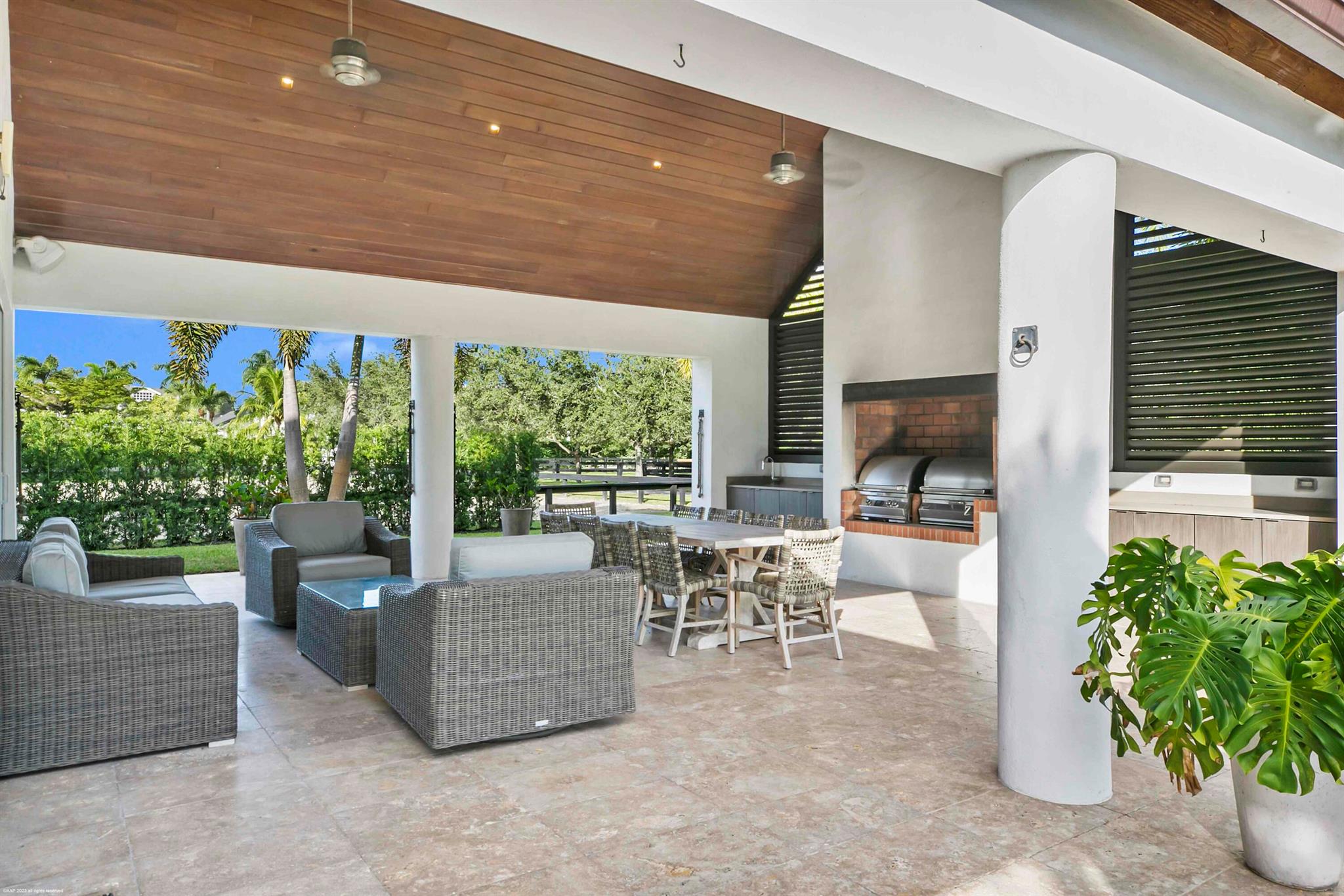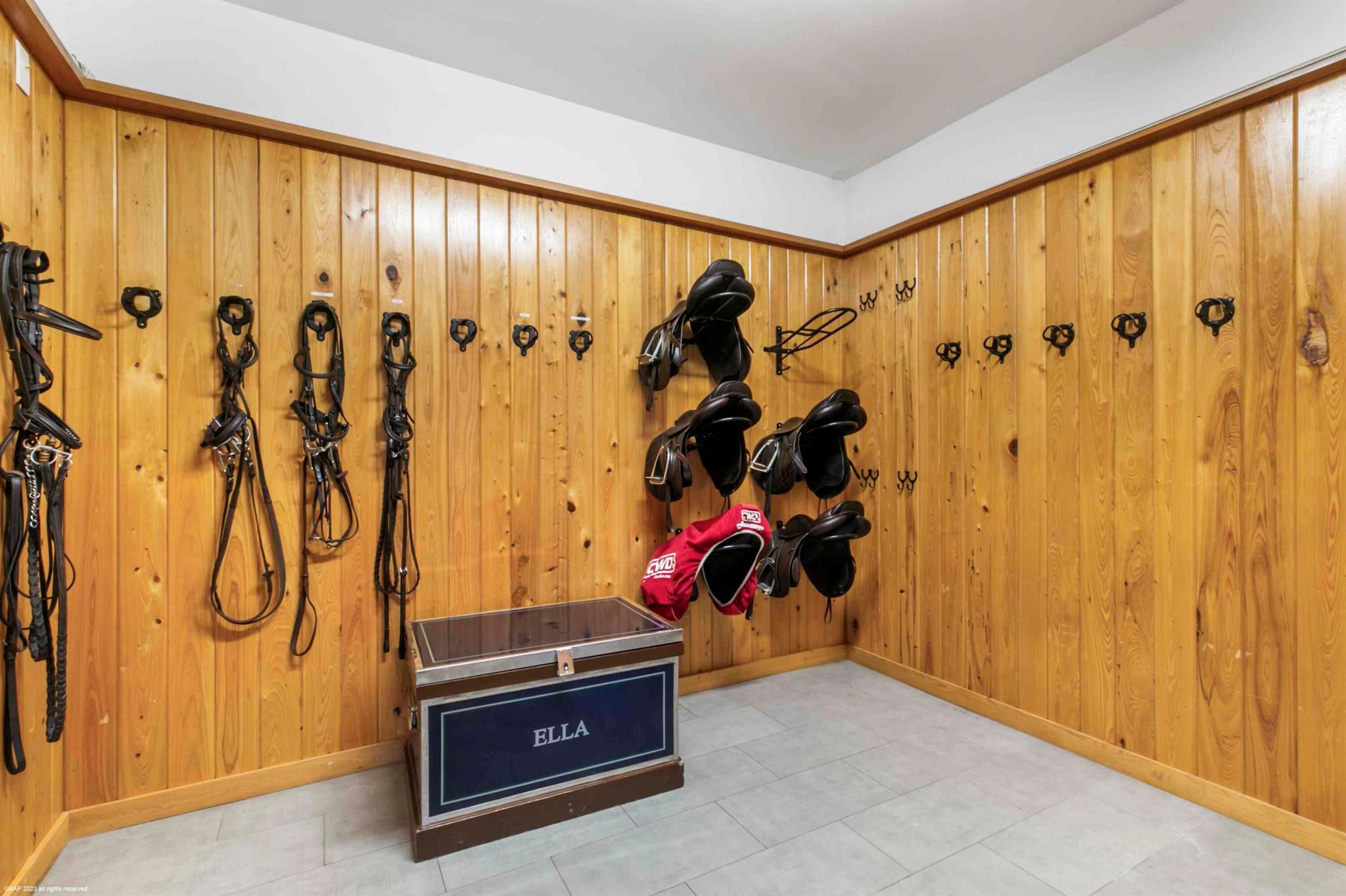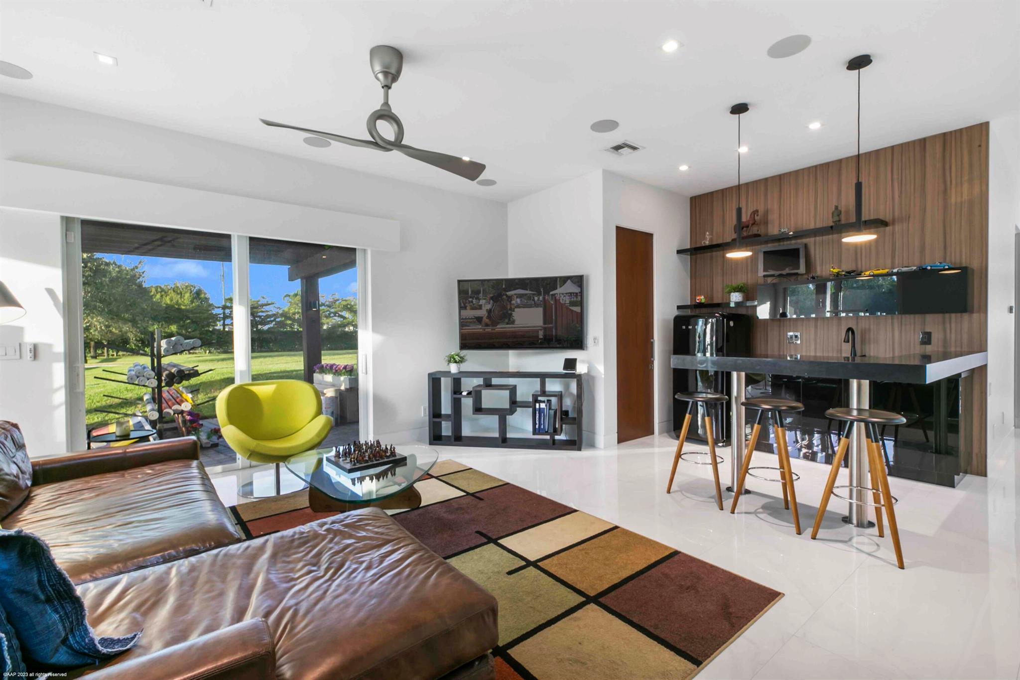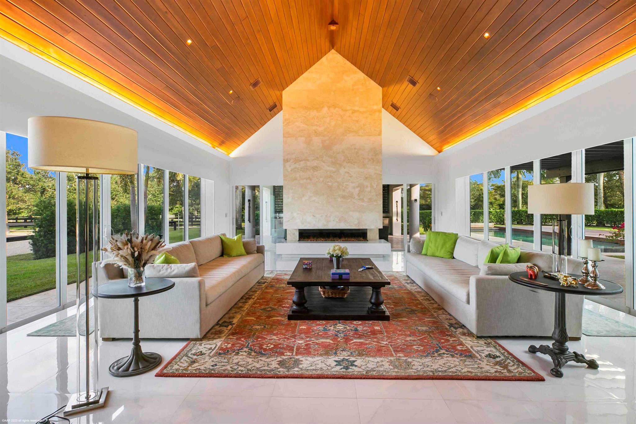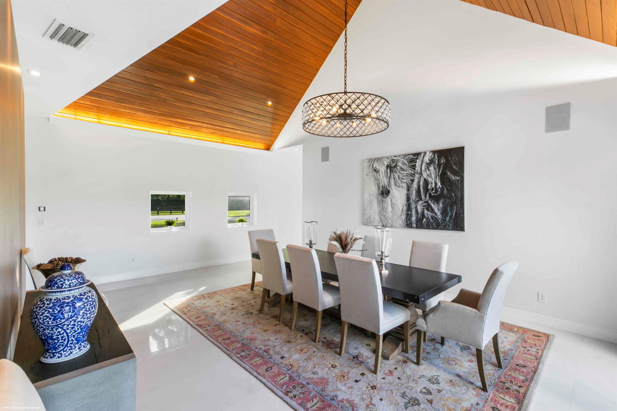 This first-class gated equestrian estate located in Saddle Trail of Wellington, within hacking distance to the show! Enjoy just about a one mile hack to Wellington International all on maintained bridle paths. This all-inclusive property boasts a beautiful and thoughtfully designed 16-stall barn, full equestrian amenities, and a luxurious, designer home, all nestled on over 4 acres in the heart of Wellington's horse country. The stately barn features wide rubber-matted center aisle-ways with 12x12' matted stalls, 2 tack and 2 feed rooms, fly spray system and outdoor grooming areas. There is also a rider's lounge, office and 2 full bathrooms. There are 2 all-weather riding arenas, a round pen and 8 grass paddocks. Property has city water. Seller financing possibly available